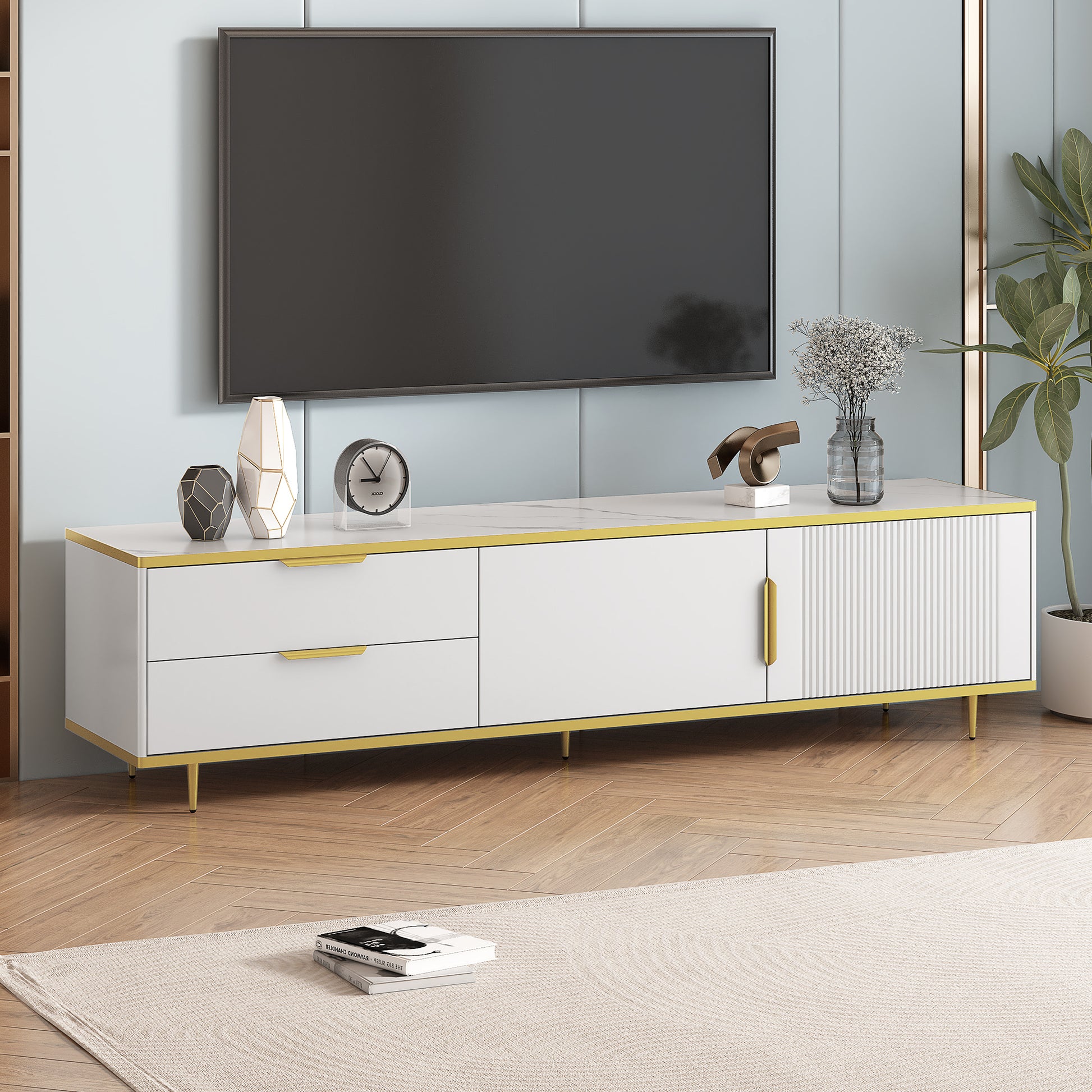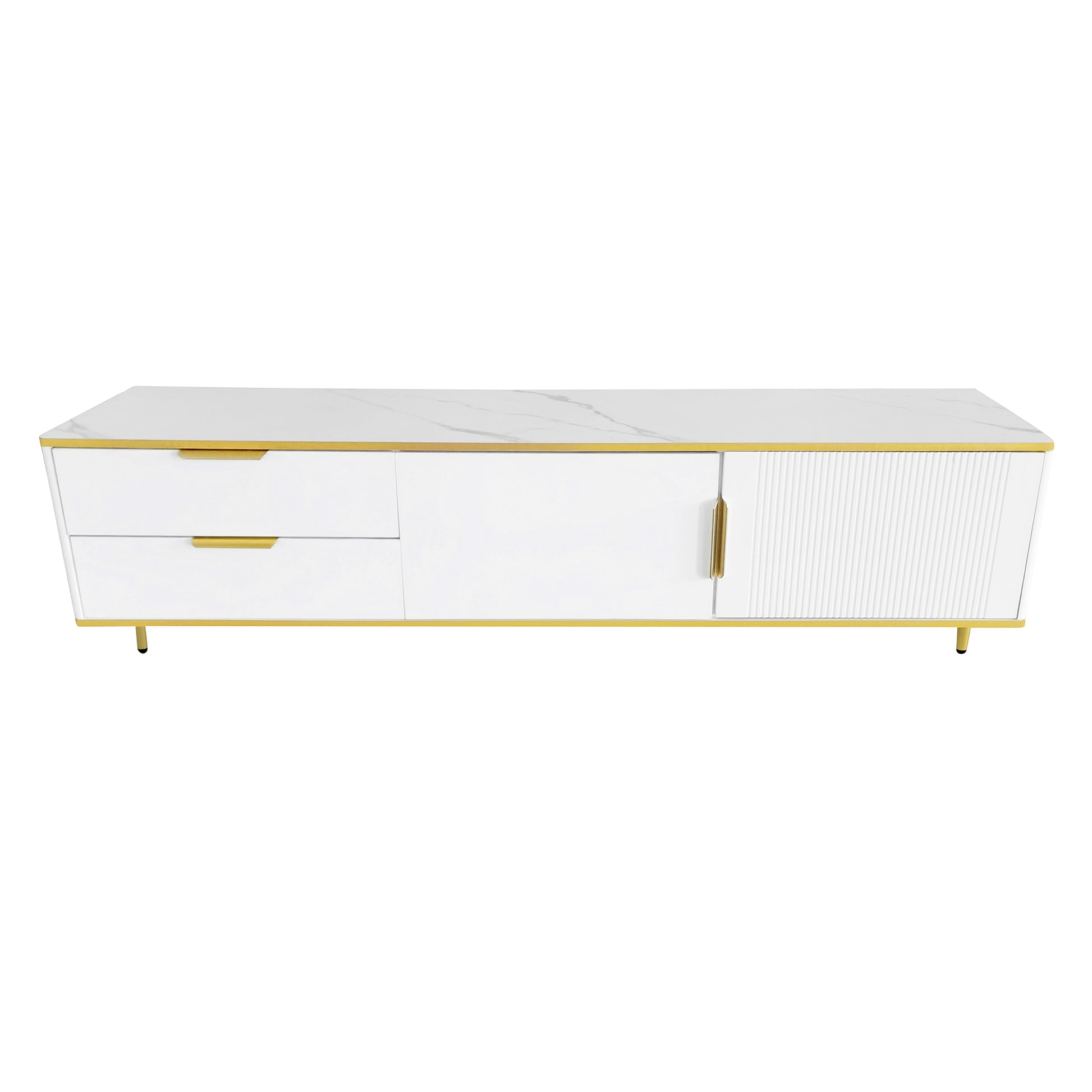 Modern Tv Stand For 65 Inch Tv, Entertainment Center Tv Media Console Table,With 2 Drawers And 2 Cabinets, Tv Console Cabinet Furniture For Living Room White 70 79 Inches Particle Board