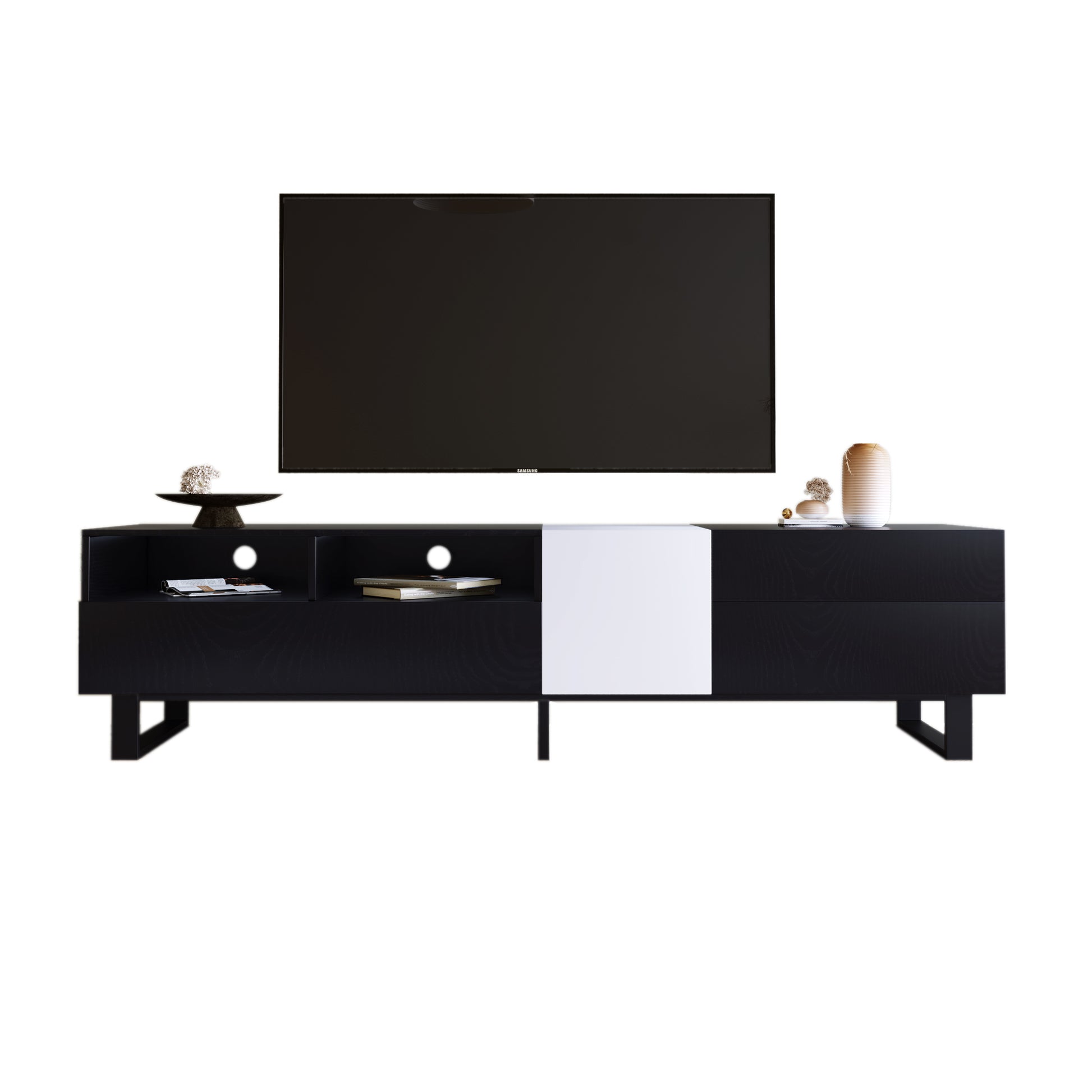 Modern Tv Stand For 80'' Tv With Double Storage Space, Media Console Table, Entertainment Center With Drop Down Door For Living Room, Bedroom, Home Theatre Black 70 79 Inches Mdf