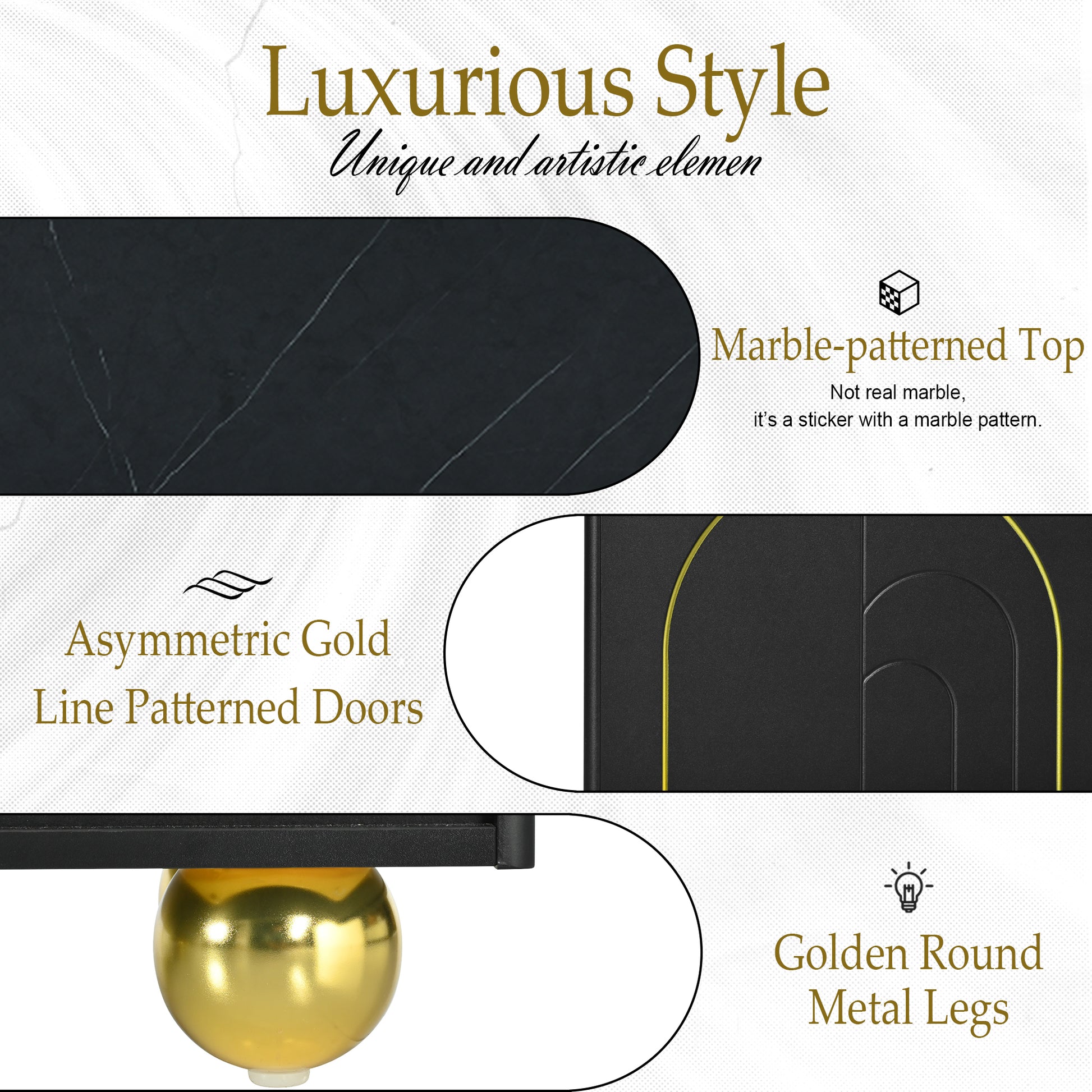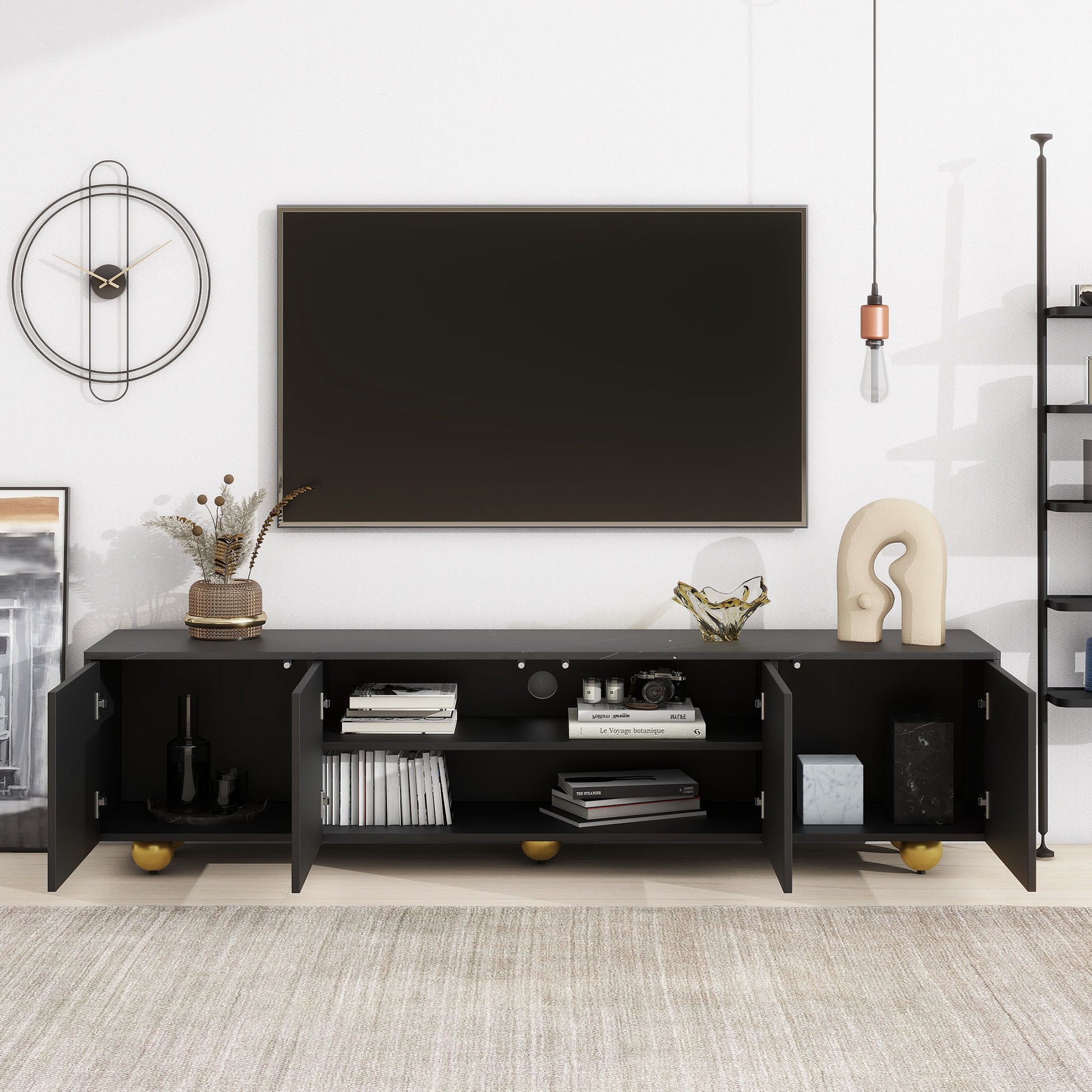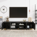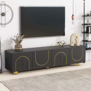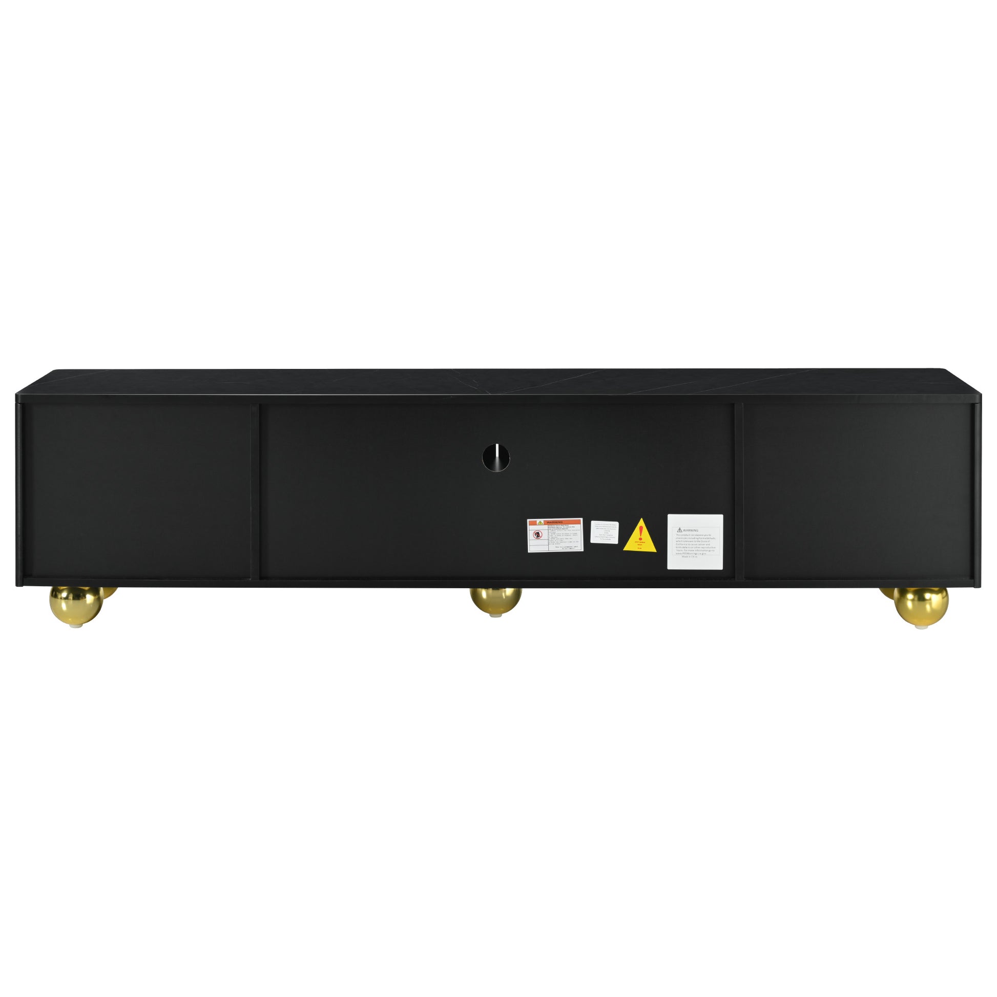 Modern Tv Stand For Tvs Up To 75 Inches, Entertainment Center With Storage Cabinets And 1 Adjustable Shelf, Media Console With Marble Patterned Top And Golden Round Metal Legs For Living Room Black 70 79 Inches Mdf