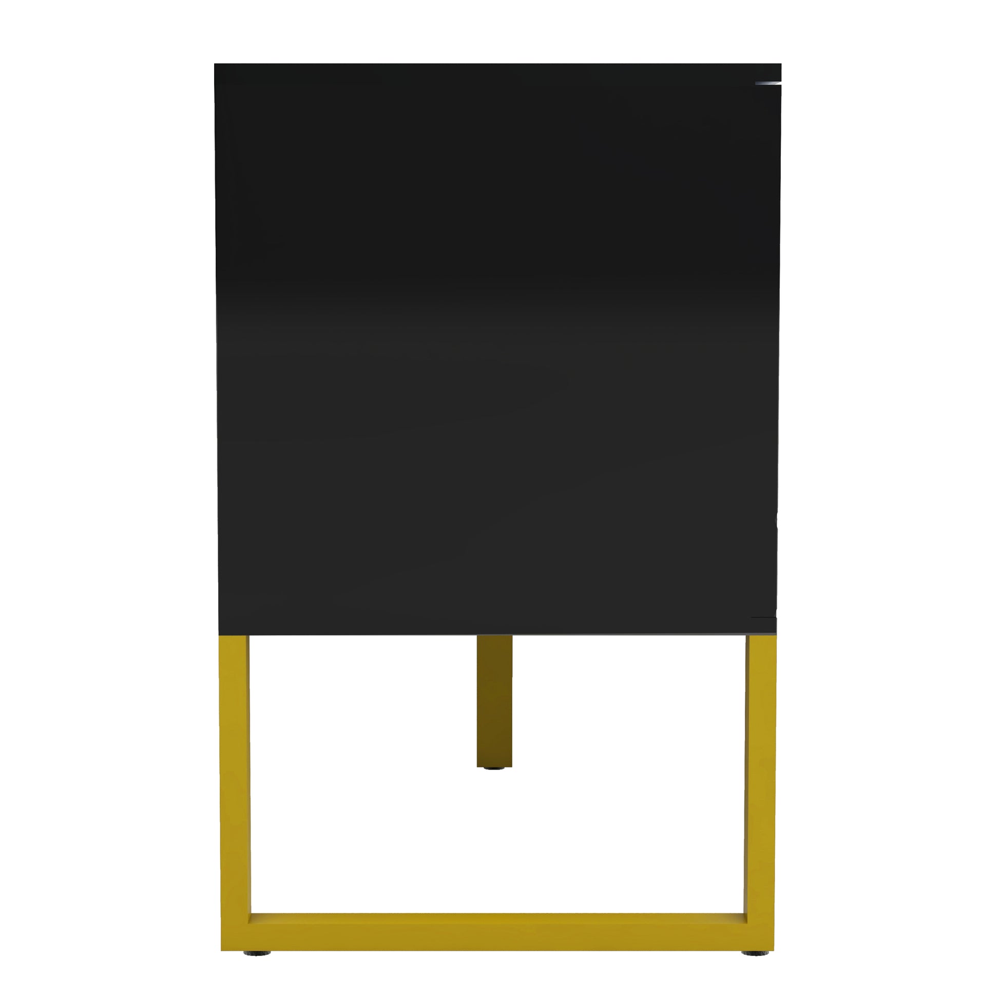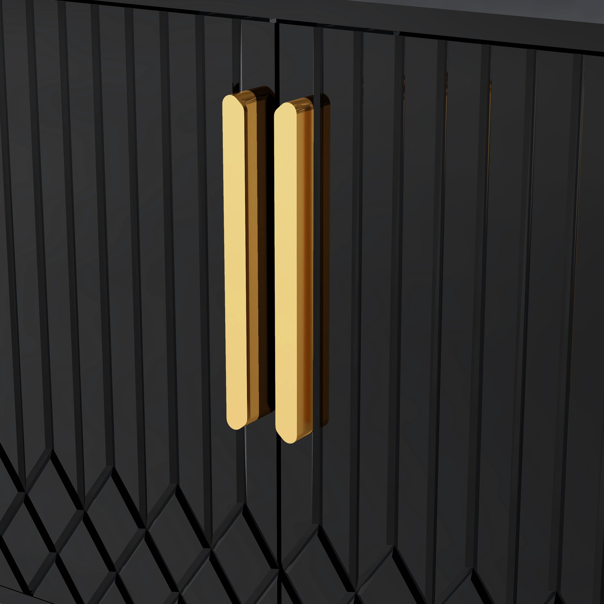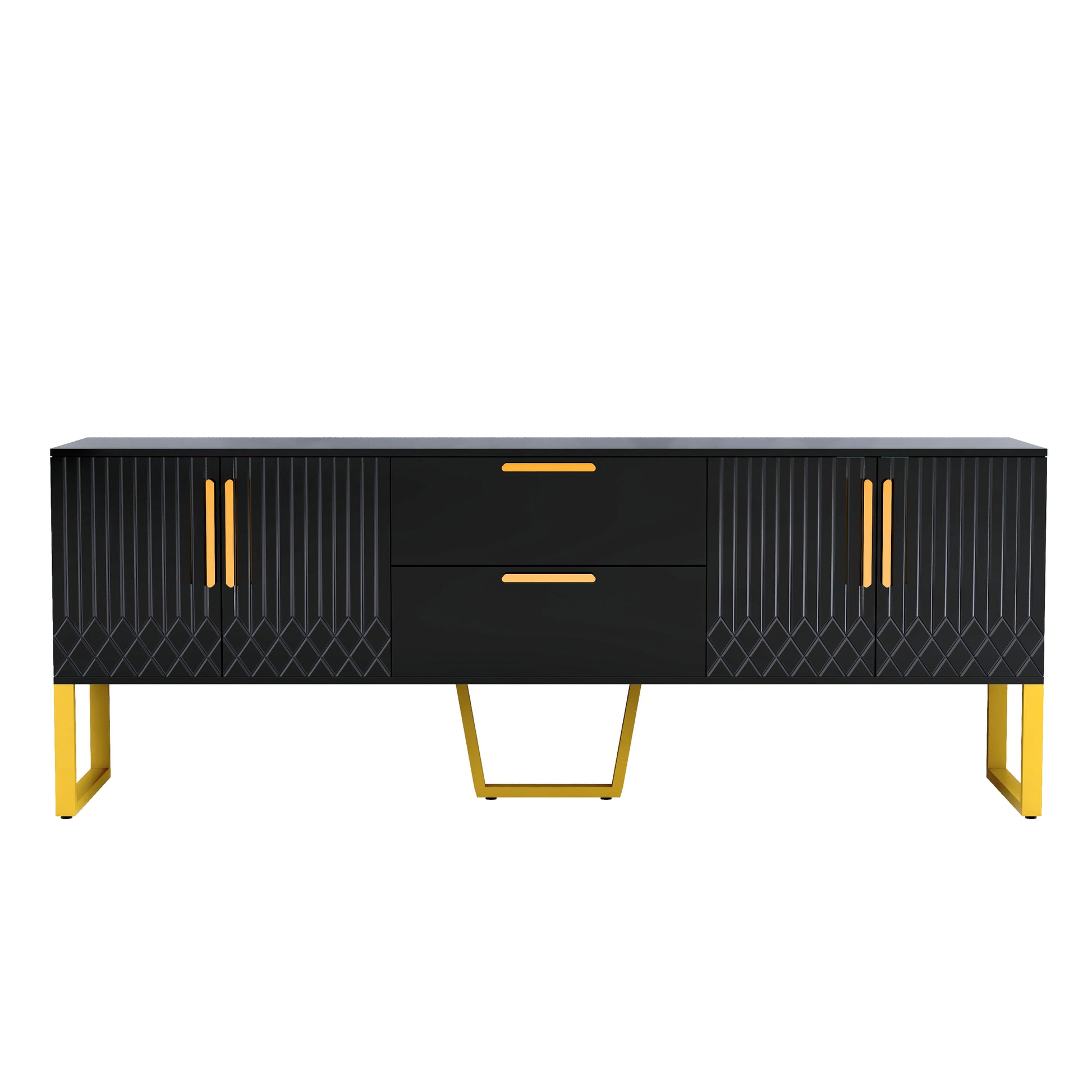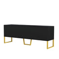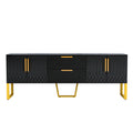 Modern Tv Stand For Tvs Up To 75 Inches, Storage Cabinet With Drawers And Cabinets, Wood Tv Console Table With Metal Legs And Handles For Living Room, Black Black Mdf