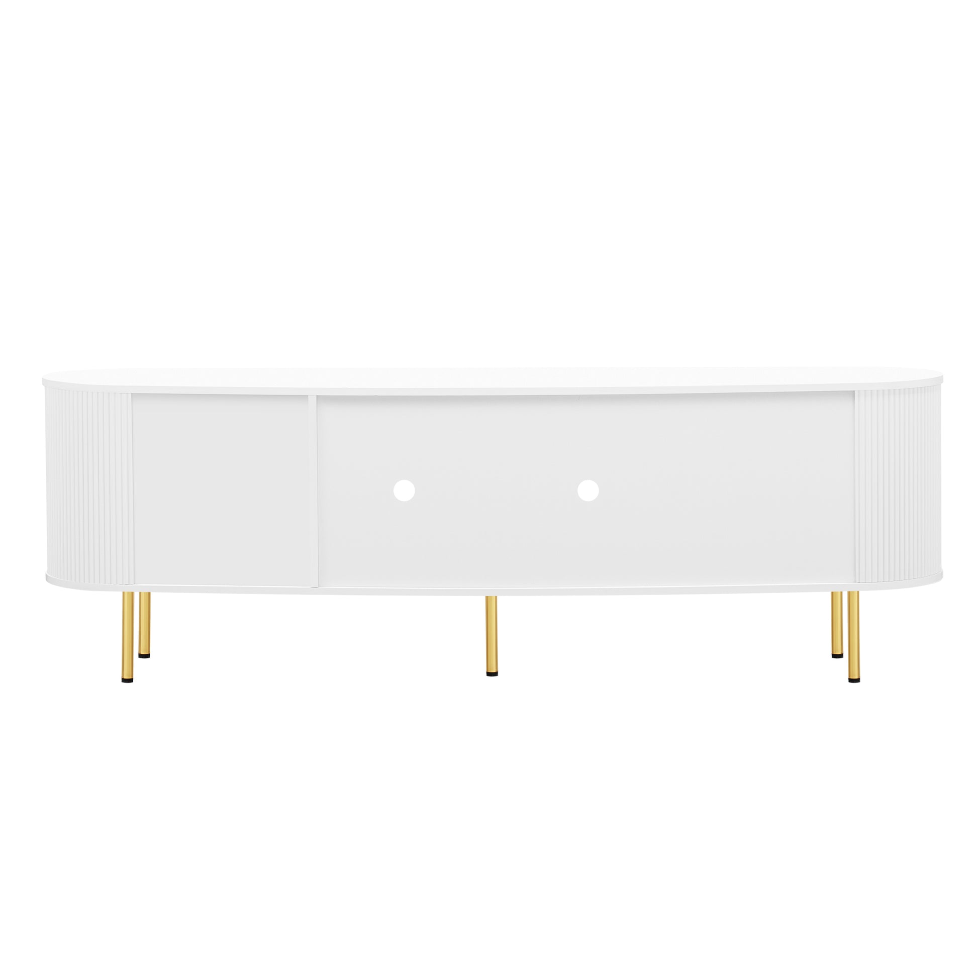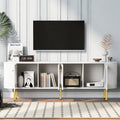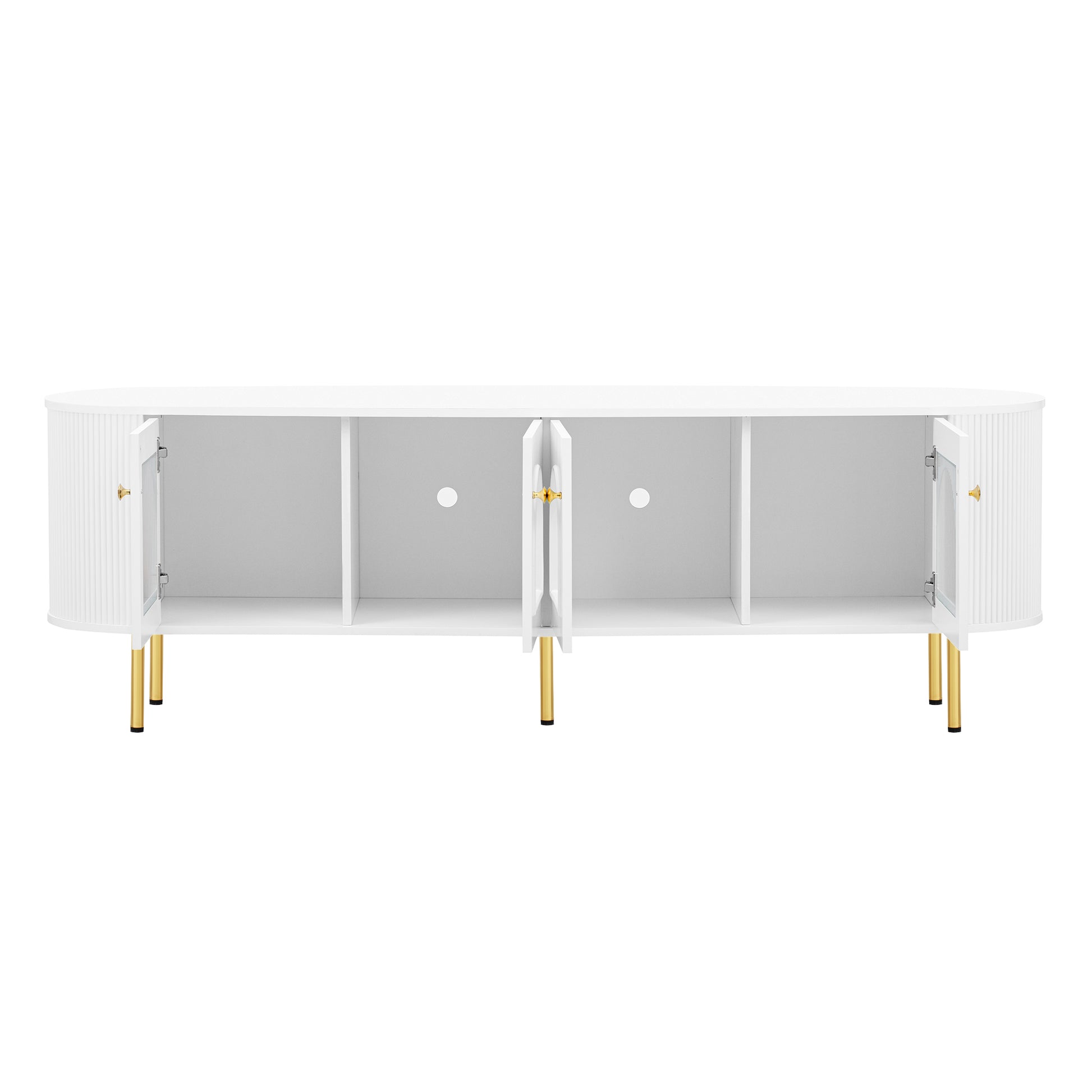 Modern Tv Stand For Tvs Up To 80 Inches, Entertainment Center With 4 Cabinets, Wood Media Console With Metal Legs And Handles For Living Room, White White 70 79 Inches Mdf
