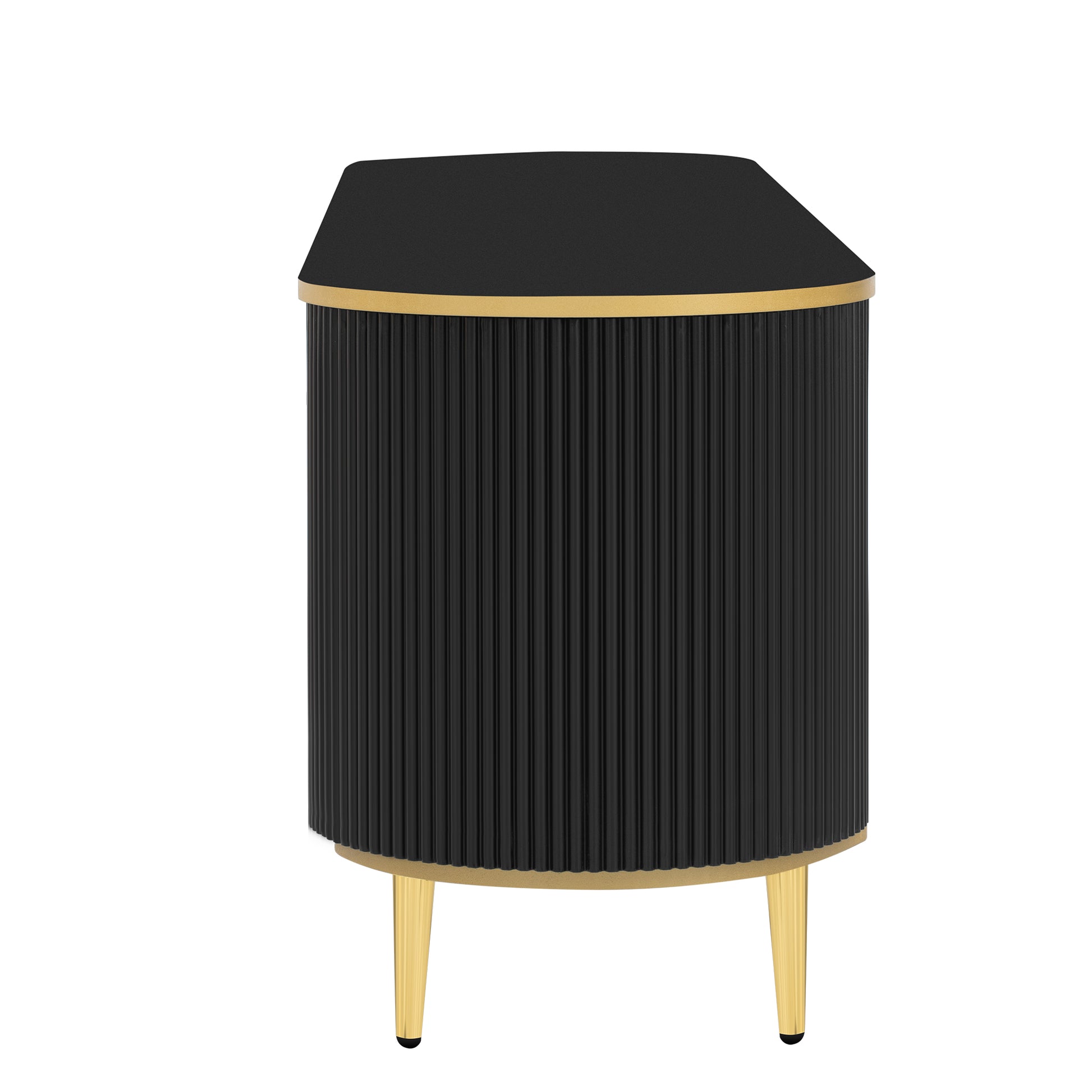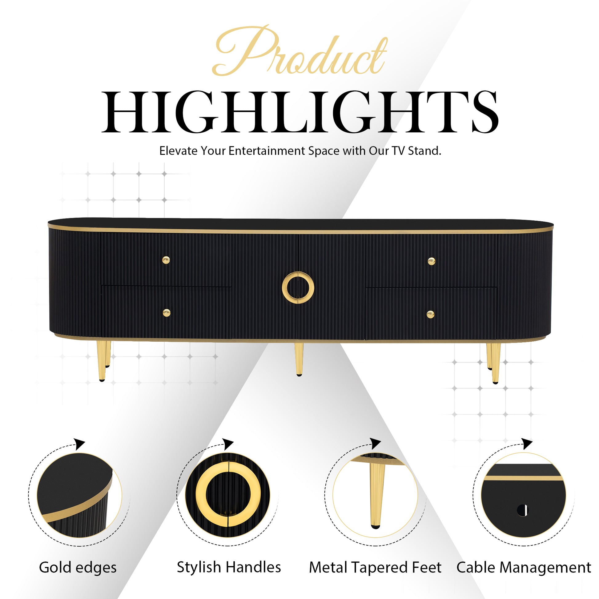 Modern Tv Stand For Tvs Up To 80 Inches, Entertainment Center With 4 Drawers And 1 Cabinet, Wood Tv Console Table With Metal Legs And Handles For Living Room Black 70 79 Inches Mdf