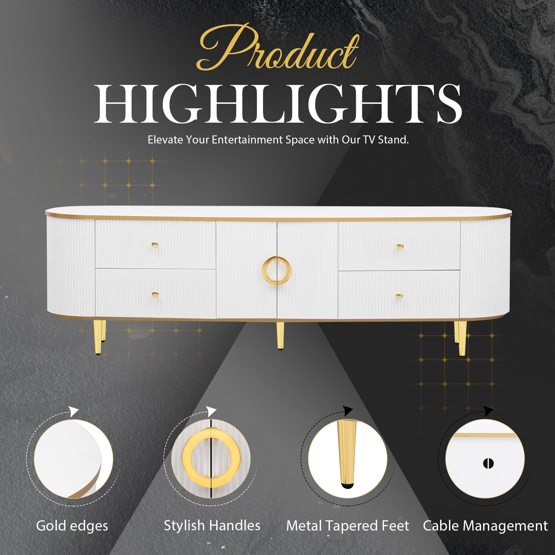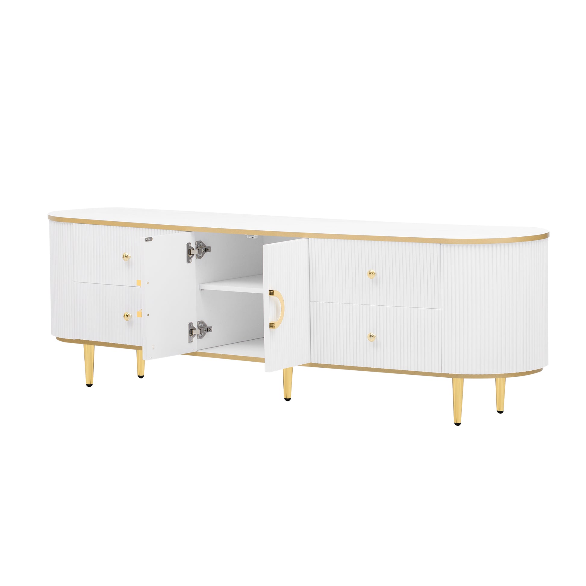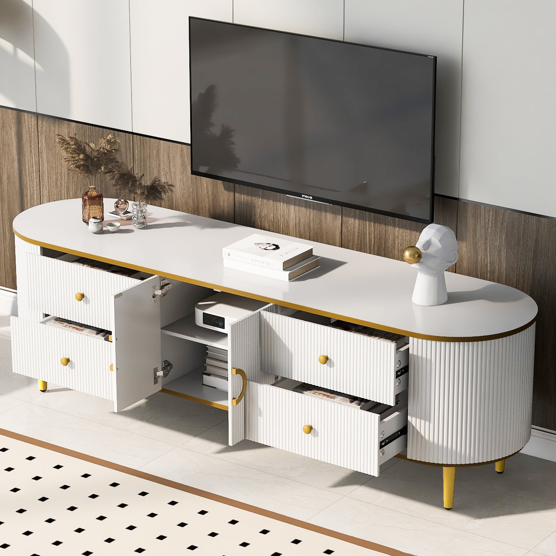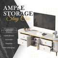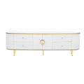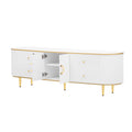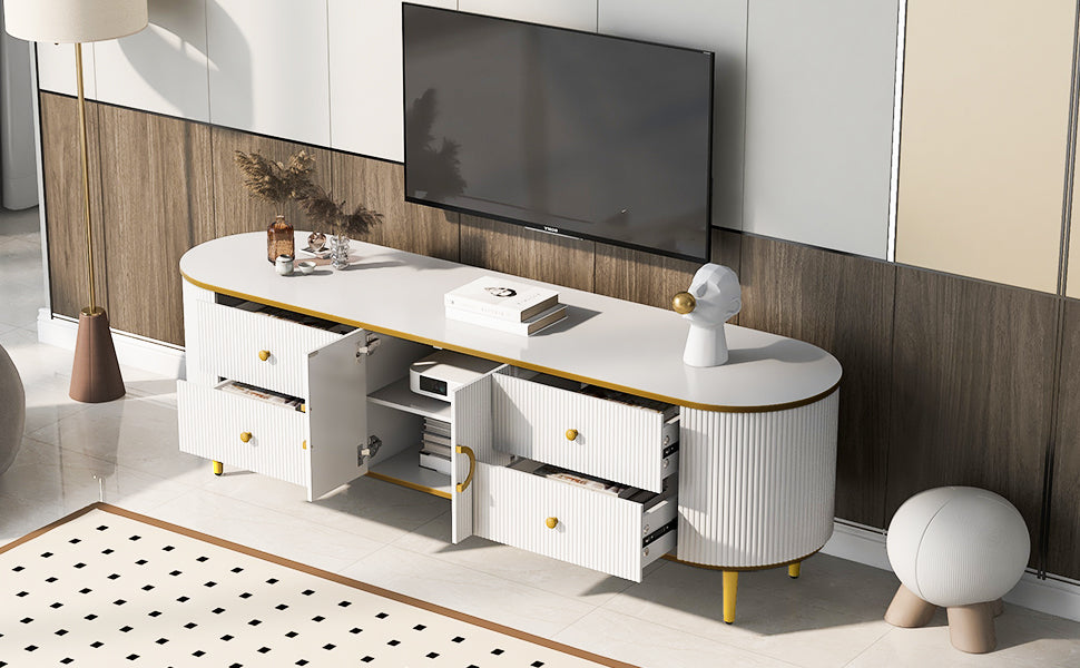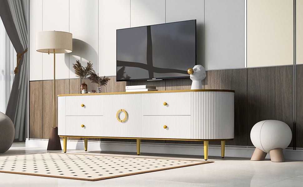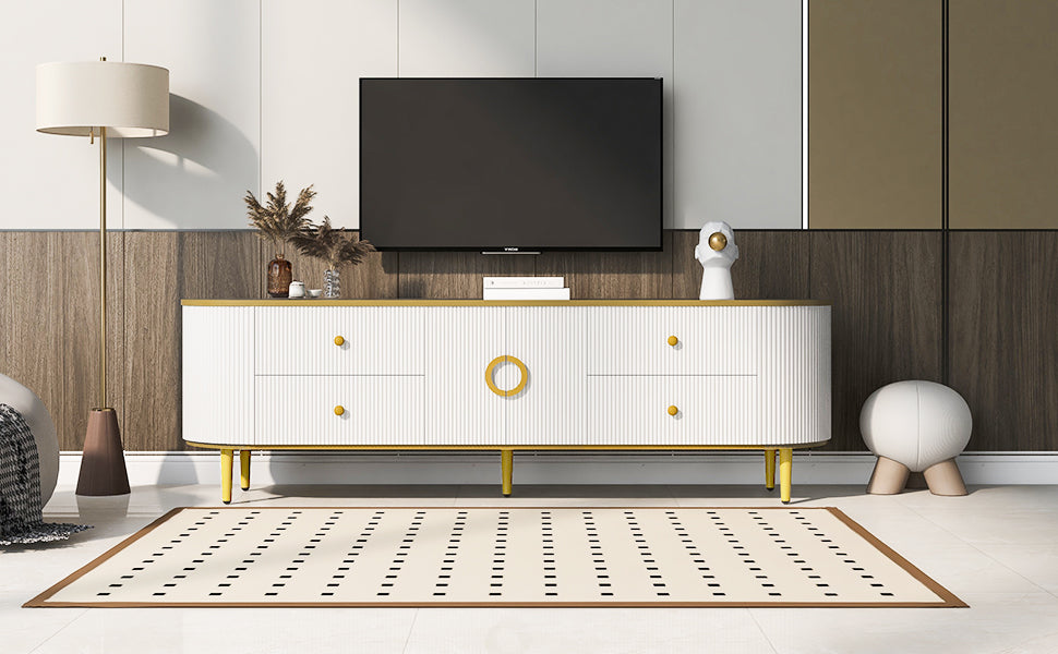 Modern Tv Stand For Tvs Up To 80 Inches, Entertainment Center With 4 Drawers And 1 Cabinet, Wood Tv Console Table With Metal Legs And Handles For Living Room White 70 79 Inches Mdf