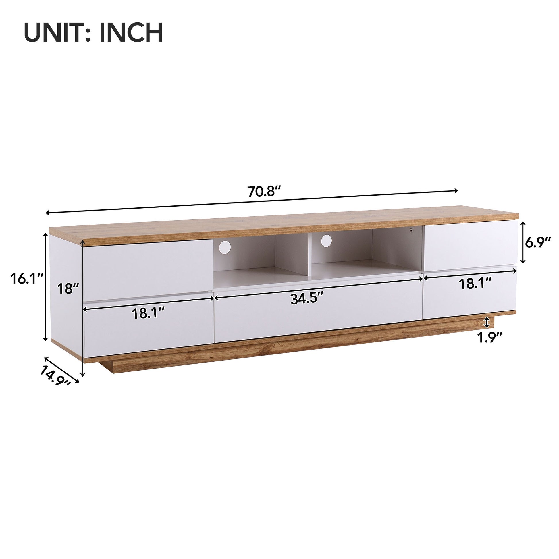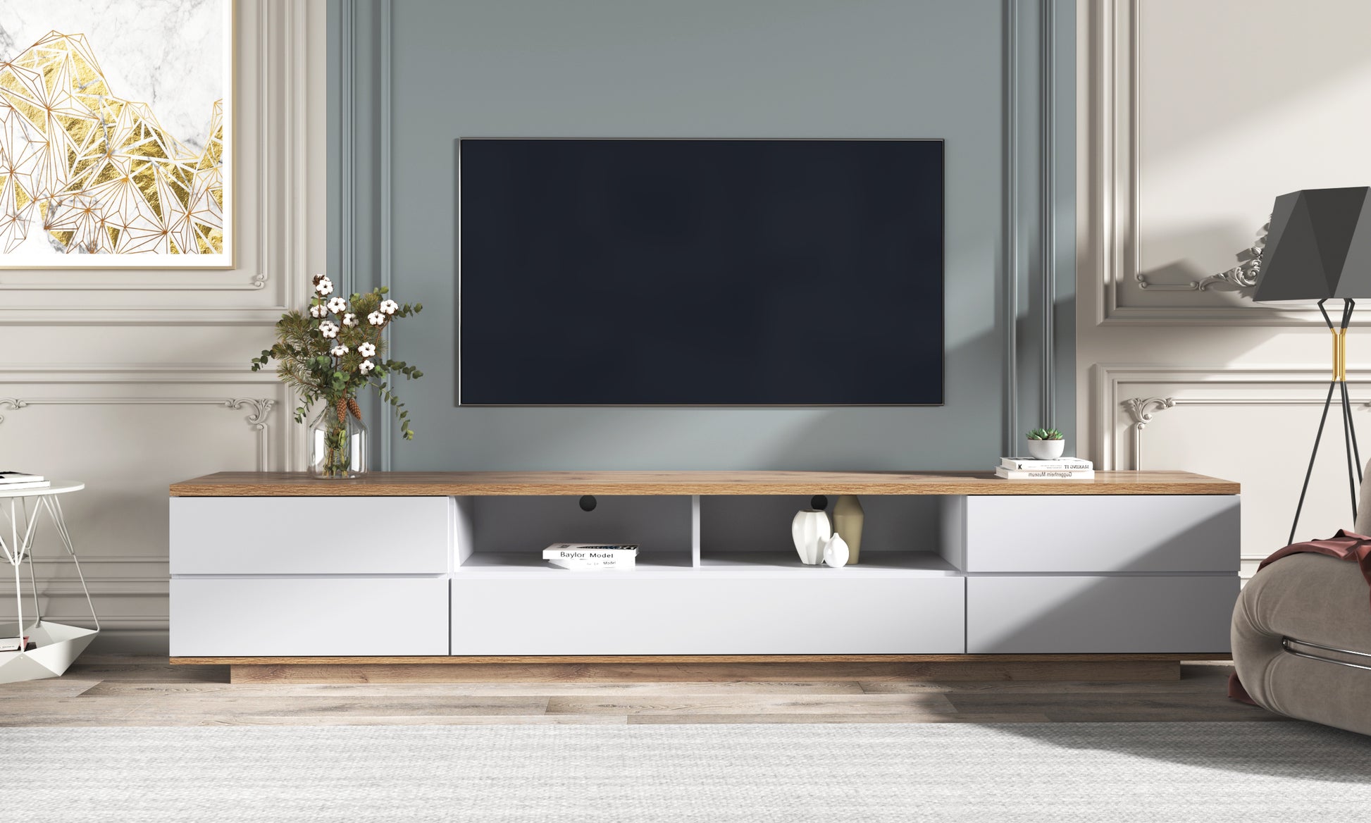 Modern Tv Stand For Tvs Up To 80''Media Console With Multi Functional Storage, Entertainment Center With Door Rebound Device, Tv Cabinet For Living Room,Bedroom White Natural Primary Living Space 70 79 Inches 70 79 Inches 75 Inches Mdf