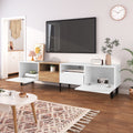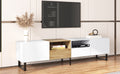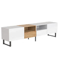 Modern Tv Stand With 2 Cabinets& Open Storage Compartment, Color Matching Media Console Table For Tvs Up To 85'', Entertainment Center With Drop Down Door For Living Room, Bedroom, Home Theatre Wood Brown Primary Living Space 70 79 Inches 90 Inches Or