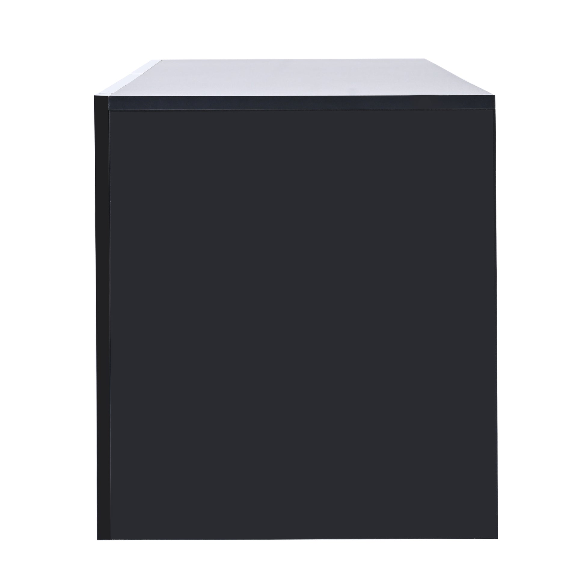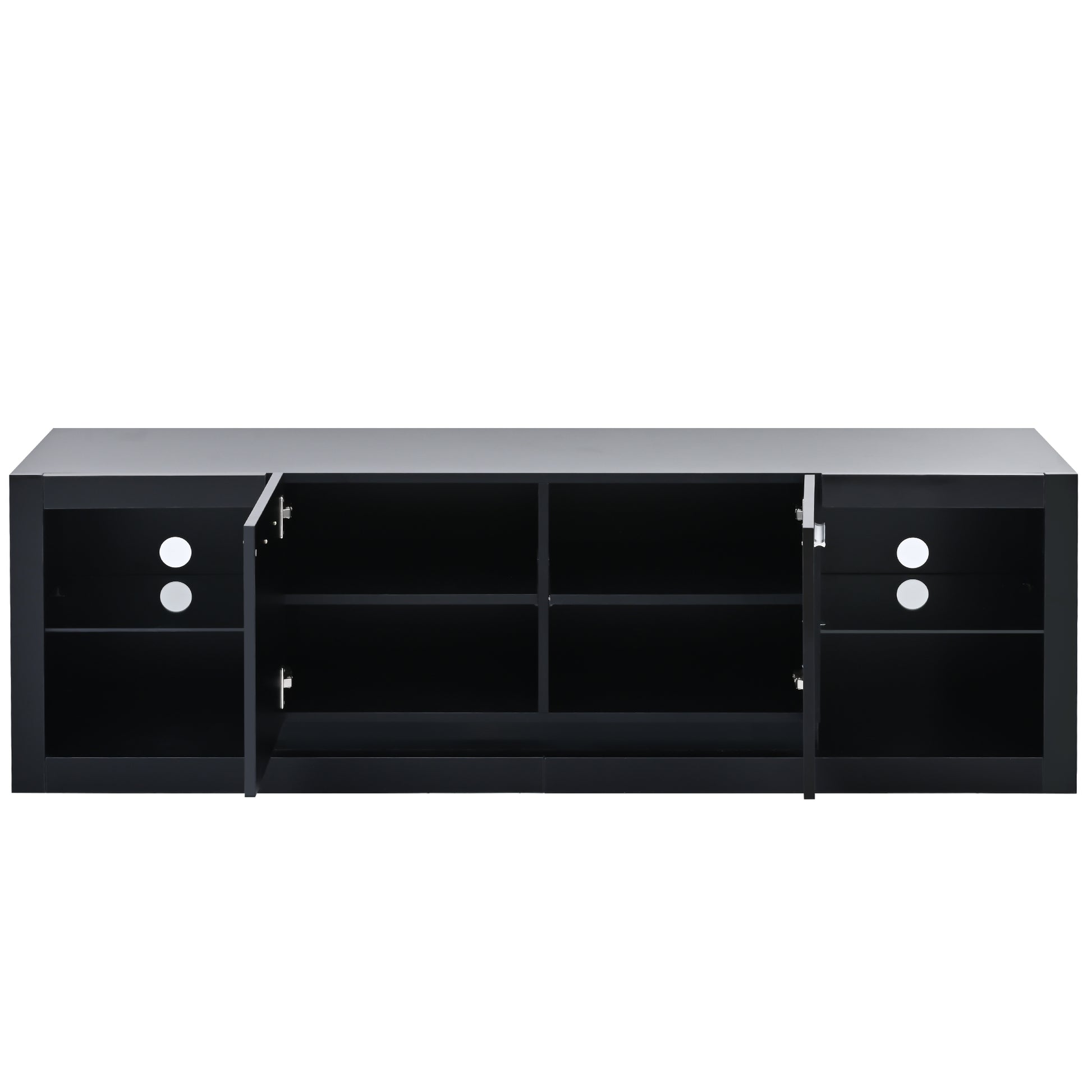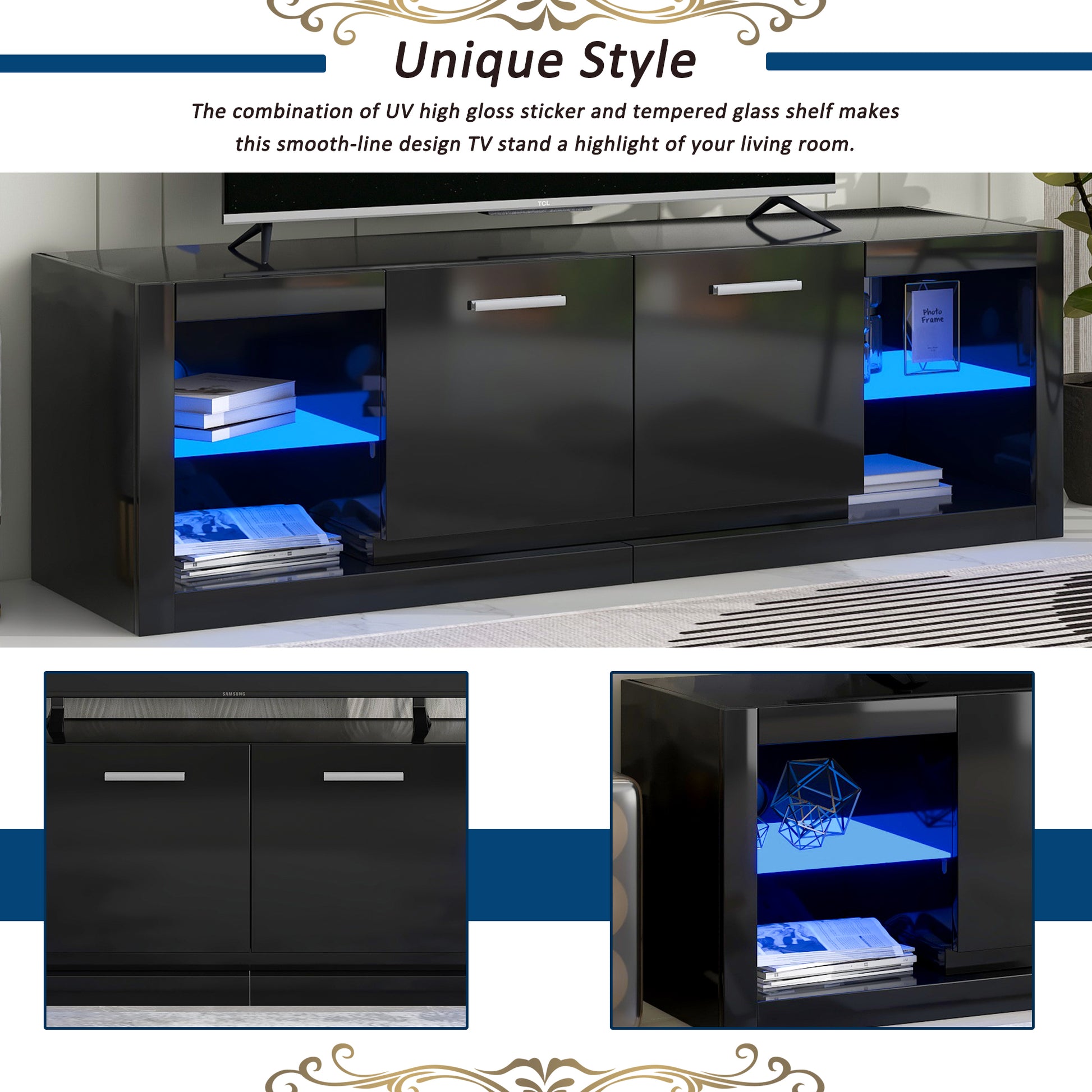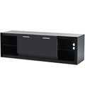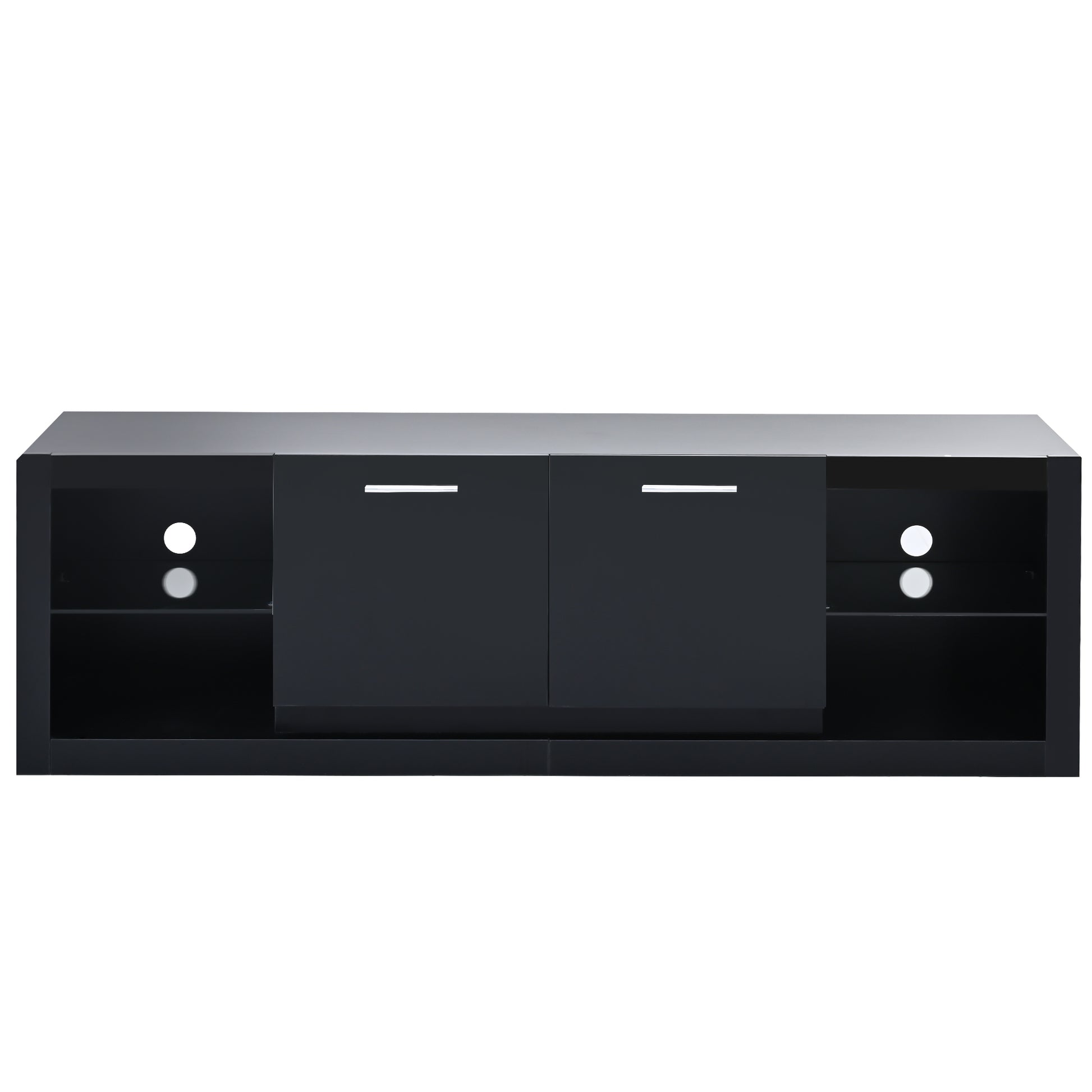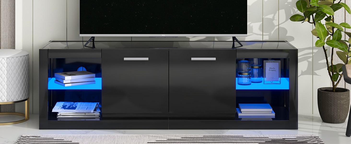 Modern Tv Stand With 2 Tempered Glass Shelves, High Gloss Entertainment Center For Tvs Up To 70'', Elegant Tv Cabinet With Led Color Changing Lights For Living Room, Black Black Particle Board