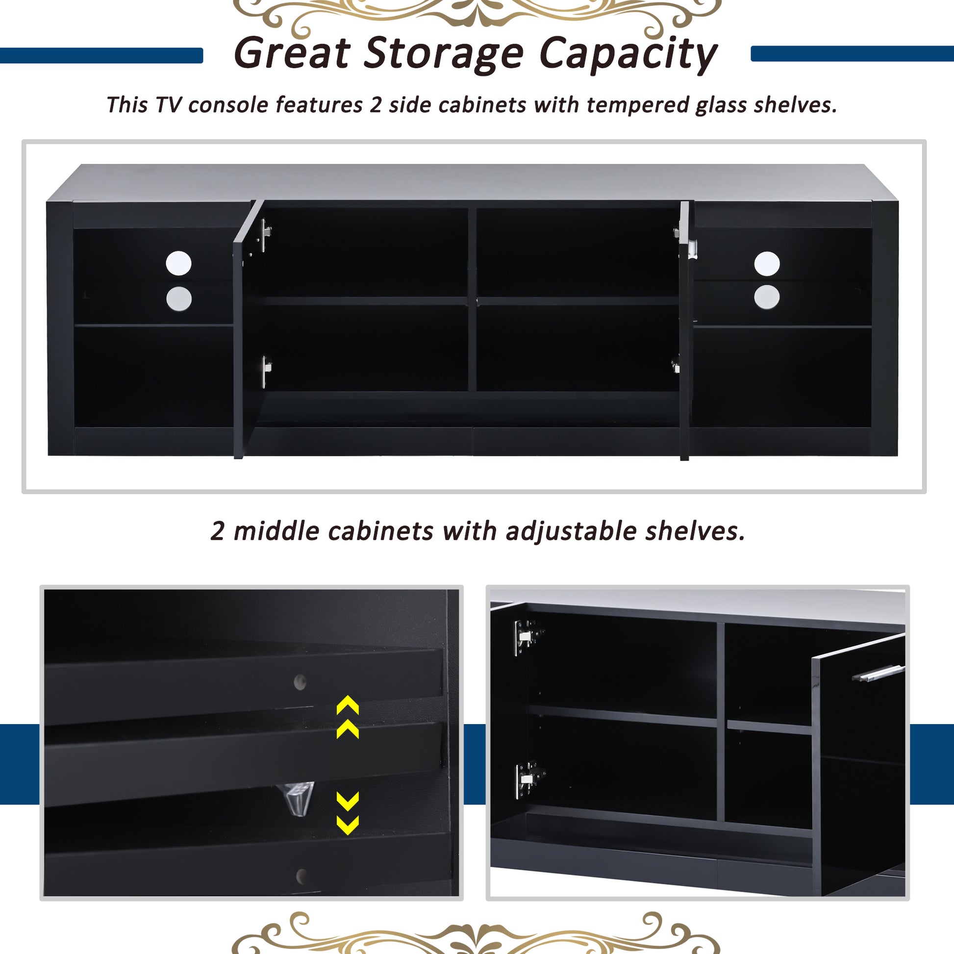 | Weight Capacity | Table top: 110lbs / Adjustable Shelf: 44lbs / Glass Shelf: 22LBS |