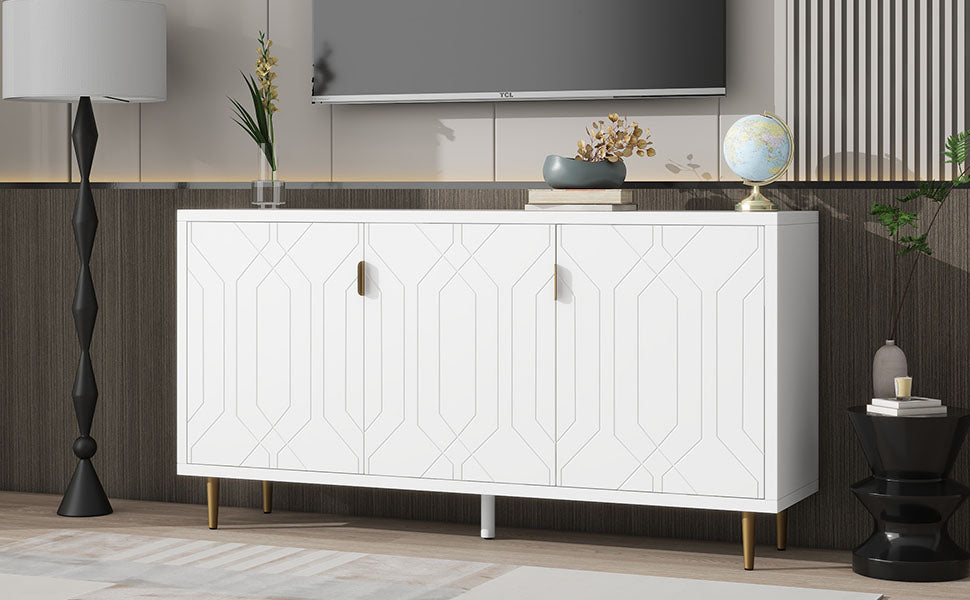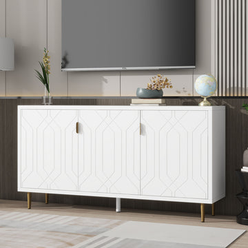 Modern Tv Stand With 3 Doors And Adjustable Shelves For Living Room, Fits Tvs Up To 70 Inches, White White 70 79 Inches Particle Board