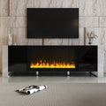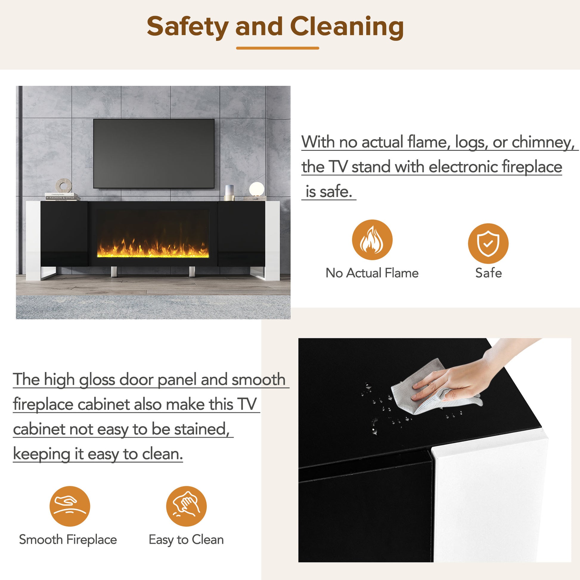Modern Tv Stand With 34.2" Non Heating Electric Fireplace, High Gloss Entertainment Center With 2 Cabinets, Media Console For Tvs Up To 78", Black Black Primary Living Space 70 79 Inches 70 79 Inches Modern Mdf