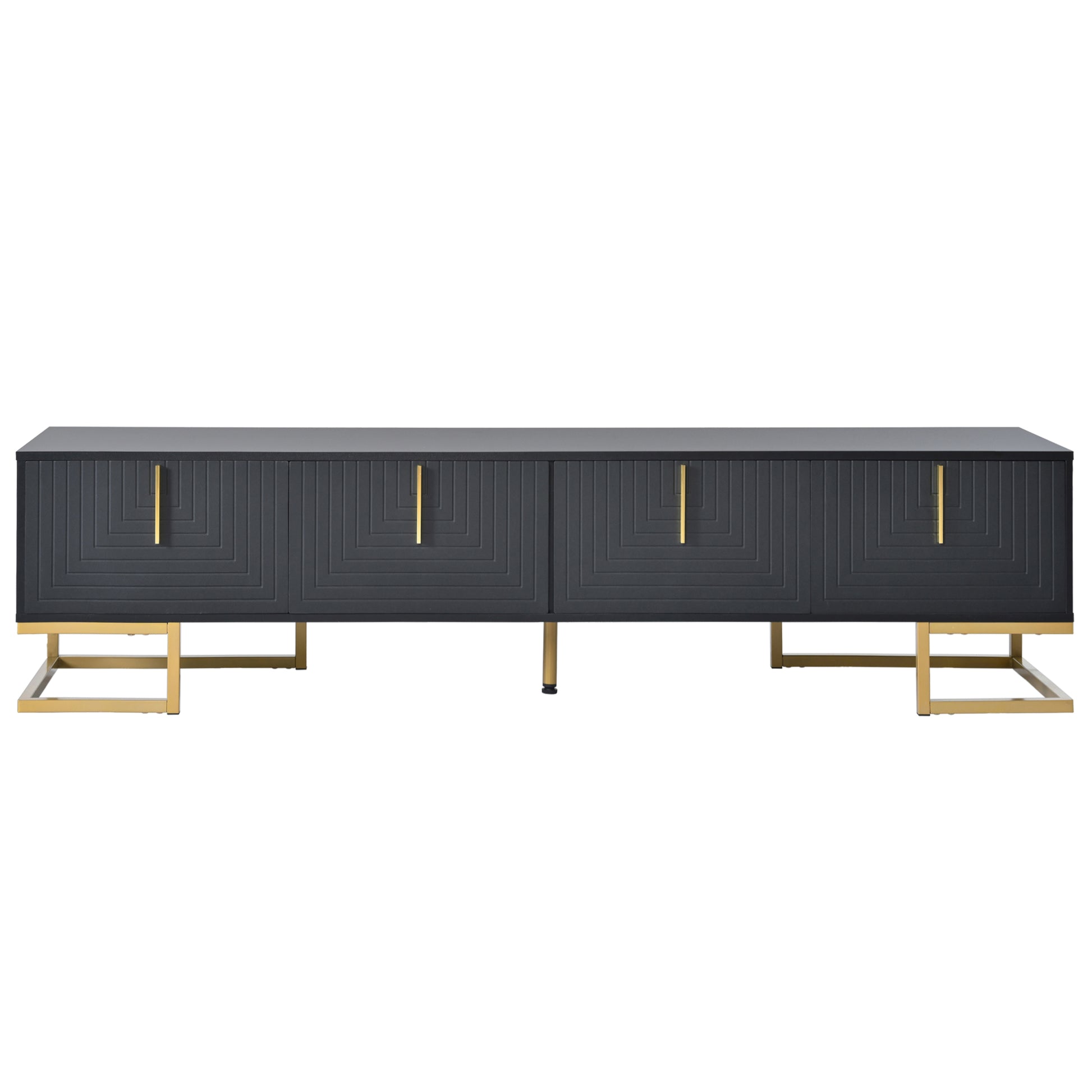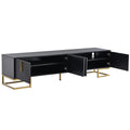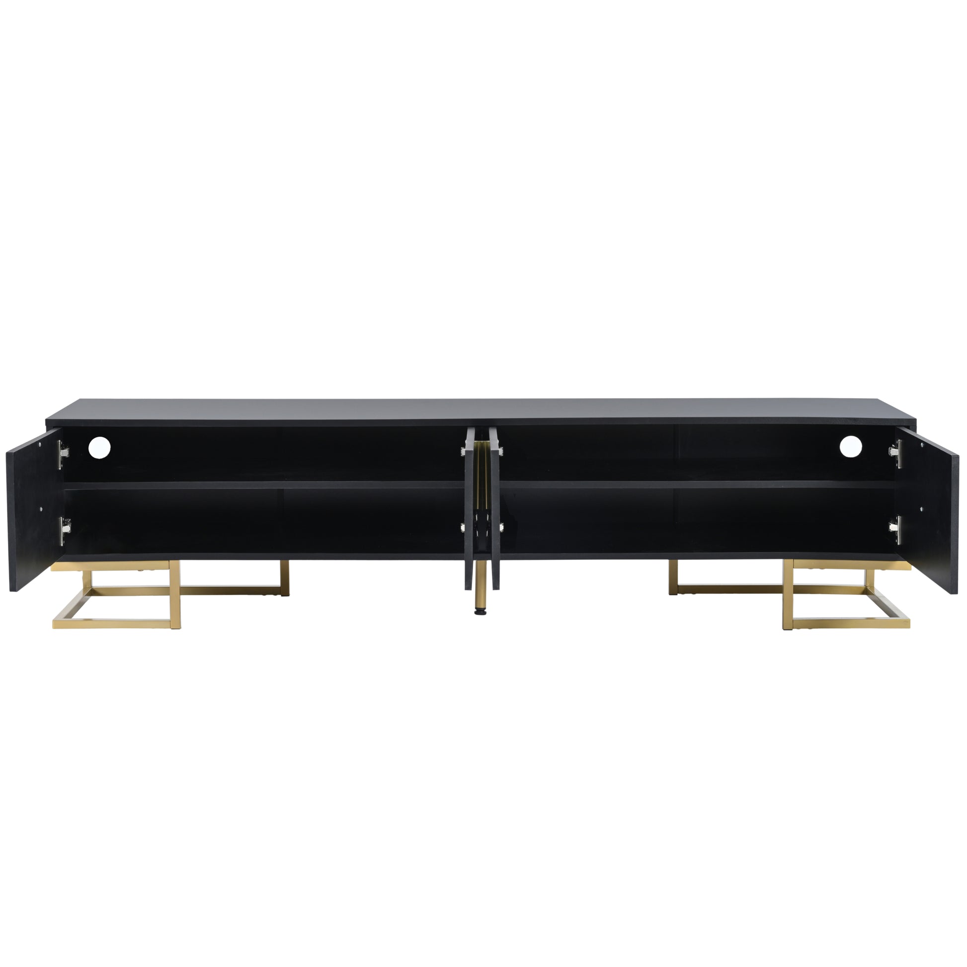 Modern Tv Stand With Metal Legs And Gold Handles For Tvs Up To 80'', Media Console Table With Cabinets And Adjustable Shelves, Luxury Tv Cabinet With Geometric Lines For Living Room, Black Black Gold Primary Living Space 80 89 Inches 80 89 Inches 80