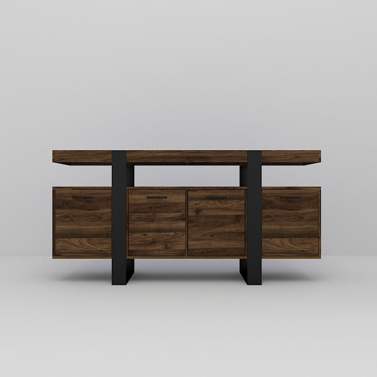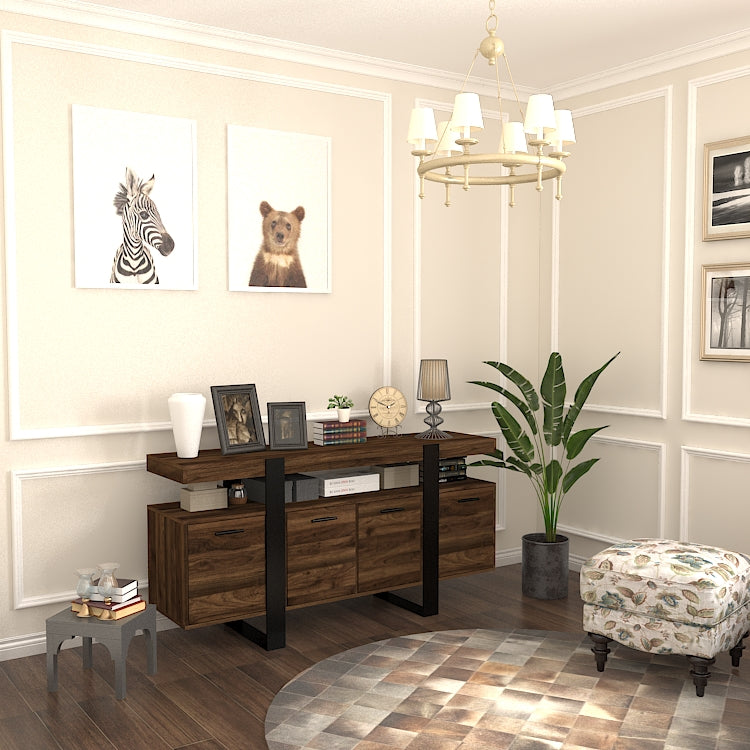 Modern Tv Stand With Storage Cabinets For 75 Inch Tv, Wood Tv Entertainment Center Tv Media Console Table With Metal Leg For Living Room, Brown Deep Rustic Brown Primary Living Space 60 69 Inches