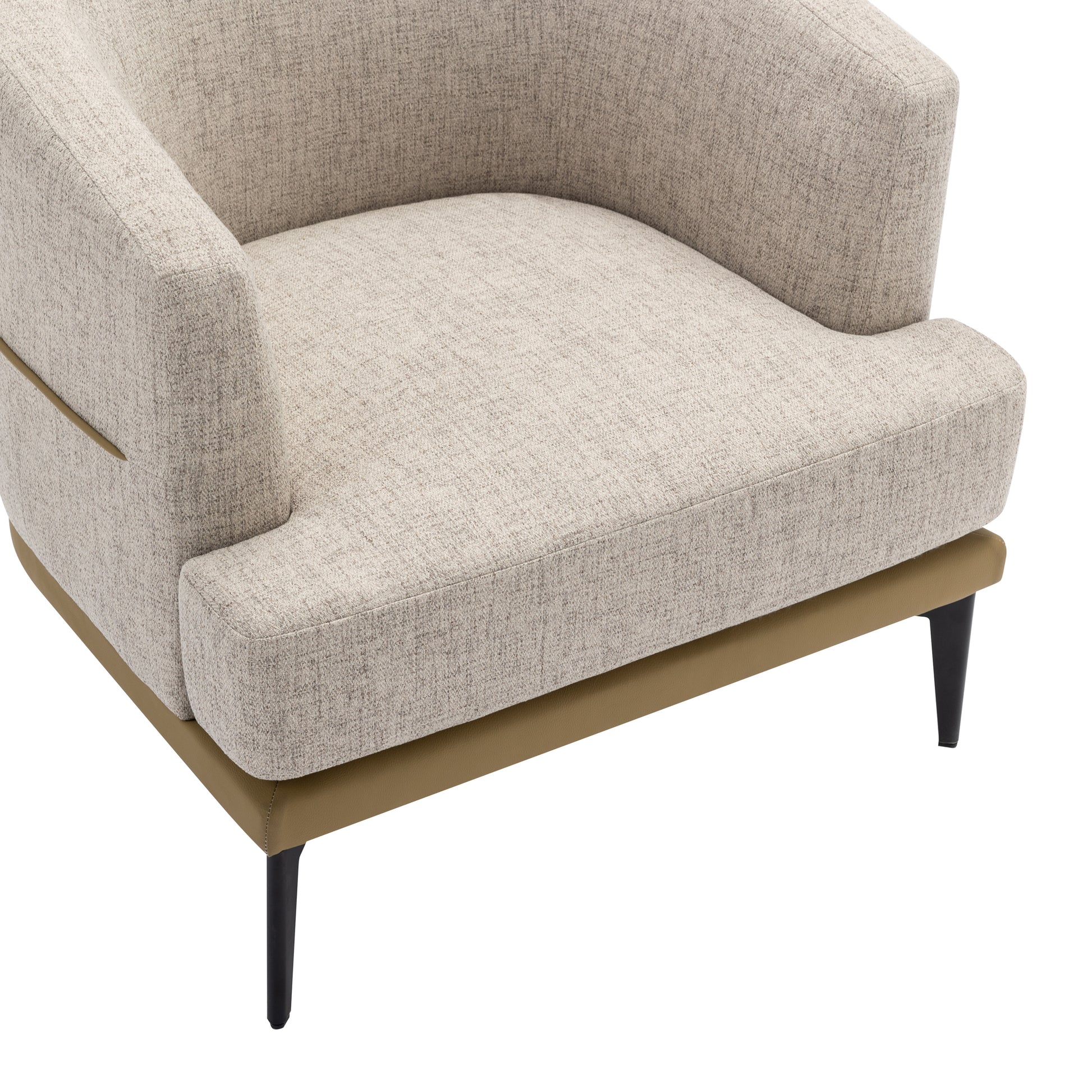 Modern Two Tone Barrel Fabric Chair, Upholstered Round Armchair For Living Room Bedroom Reading Room, Mustard Green Mustard Linen