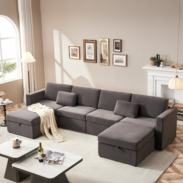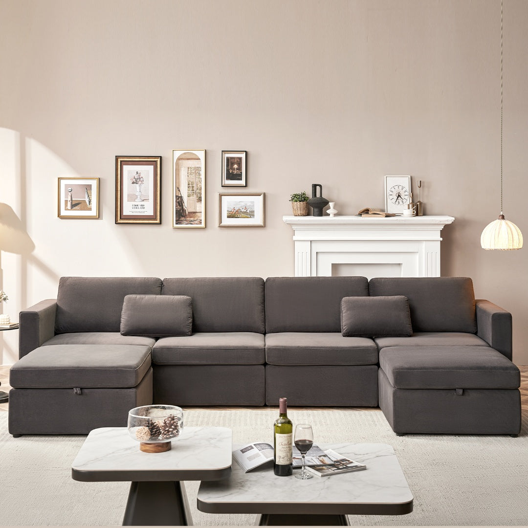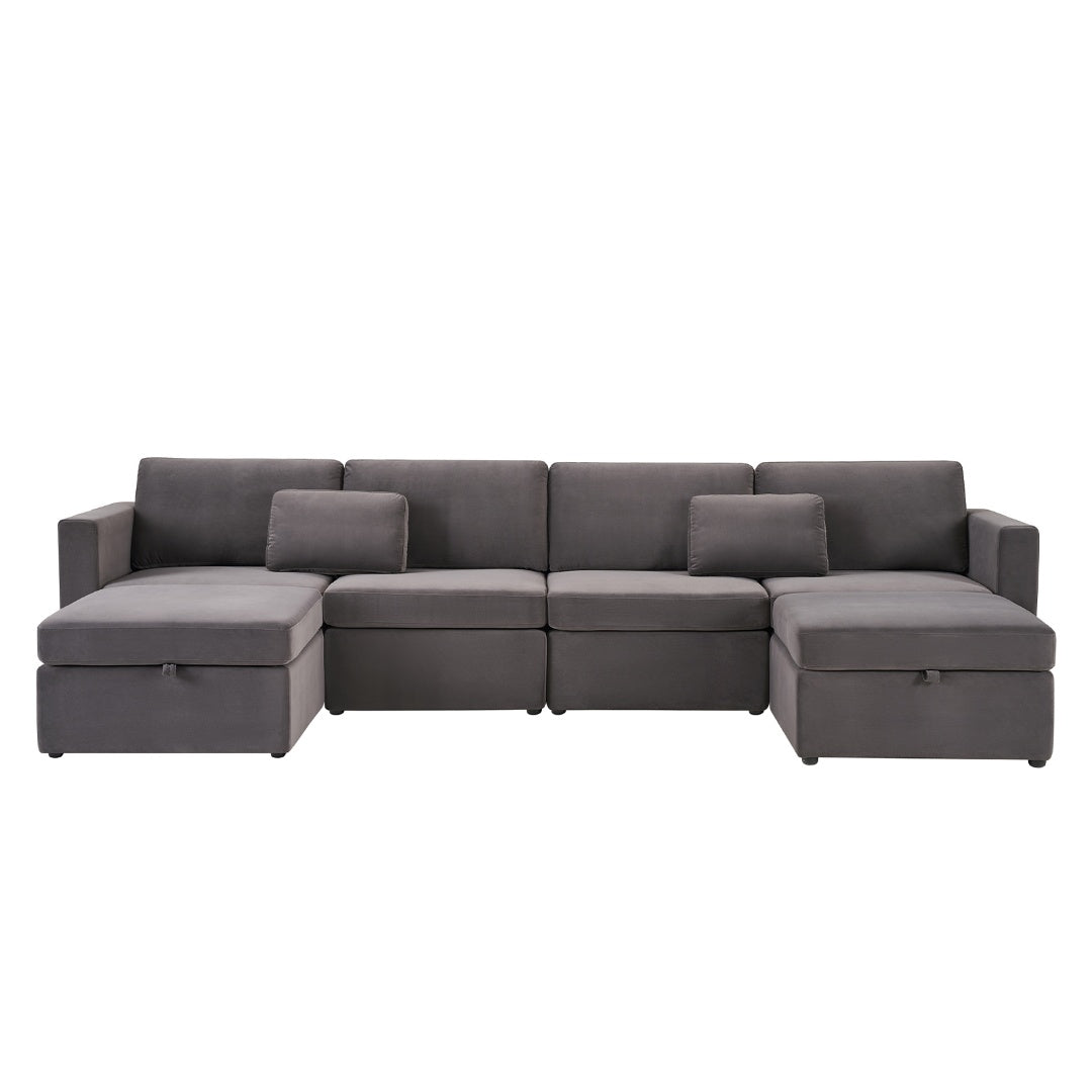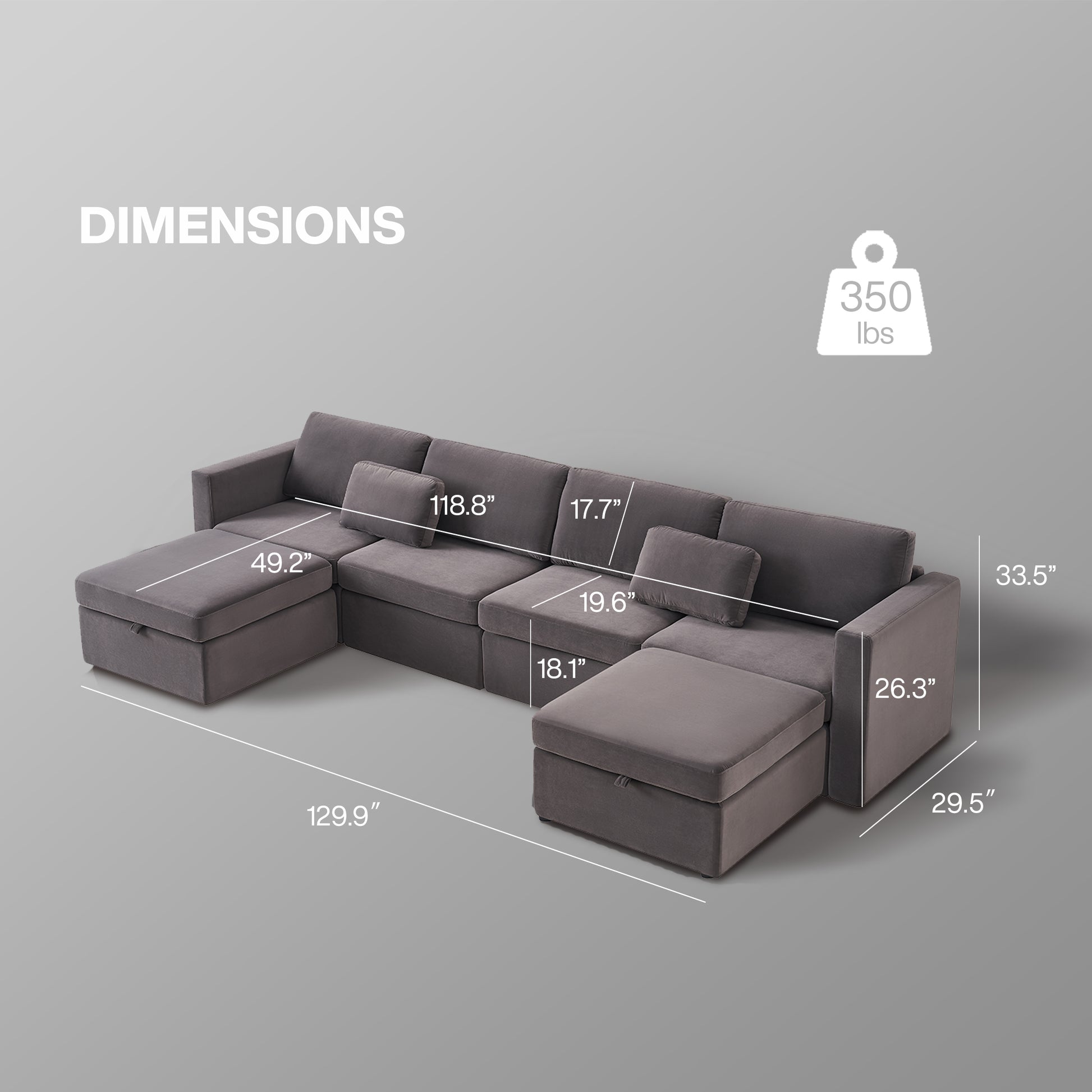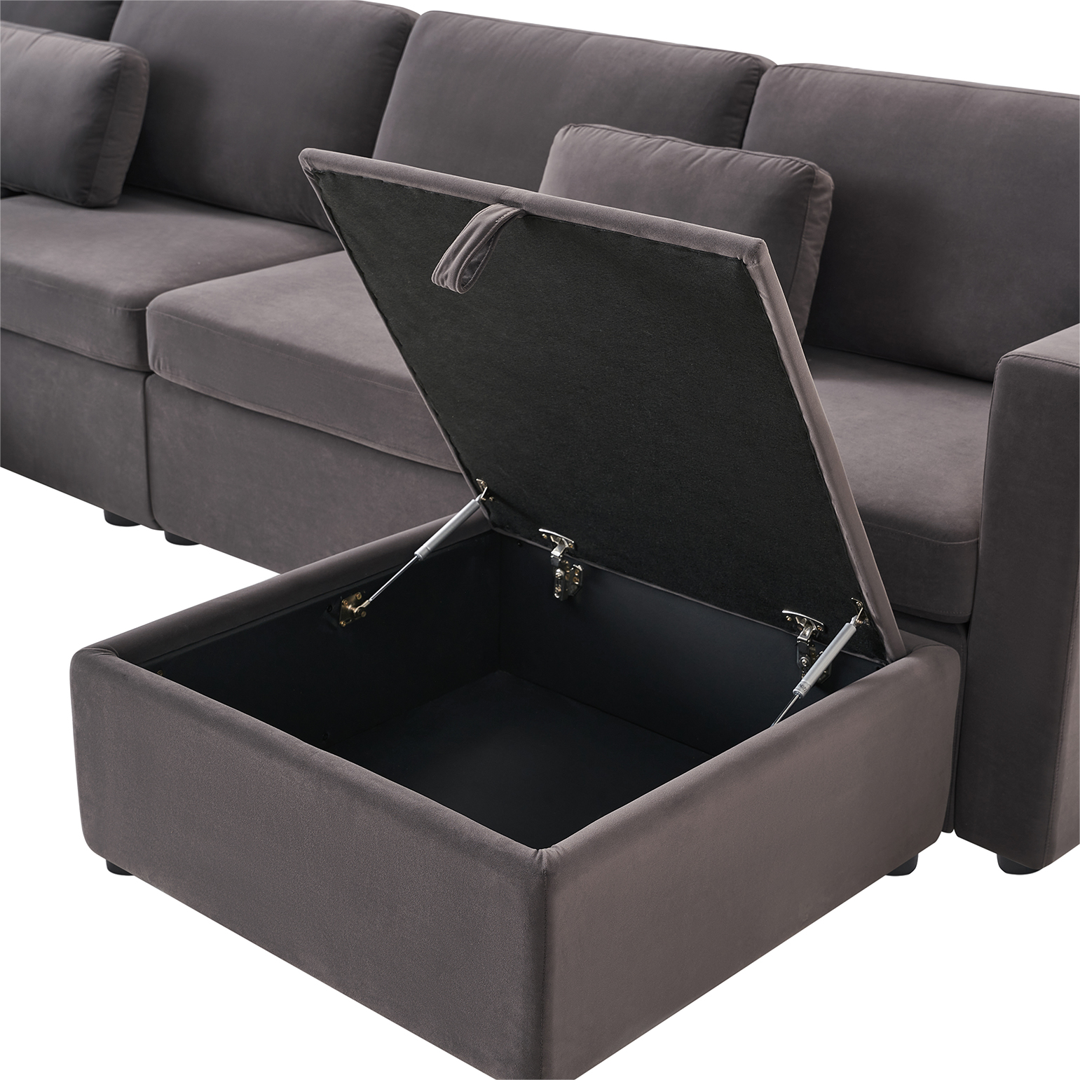 Modern Velvet Modular Sectional Sofa, U Shape Convertible Sofa Set With Pillows, Oversized Sectional Couches With Storage Ottomans For Living Room, Loft, Apartment, Office Dark Gray 6 Seats Gray Wood Primary Living Space Medium Duty Pine 6 Seat Dark Gray