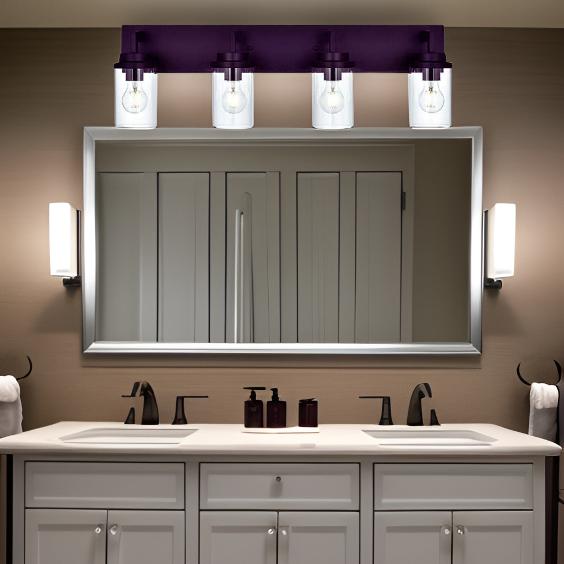 Modern Wall Bathroom Vanity Light Fixture 4 Light Oil Rubbed Bronze Metal With Clear Glass Shade,Industrial Vintage Farmhouse Wall Mount Lighting Sconce Oil Rubbed Bronze Metal