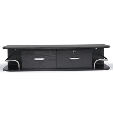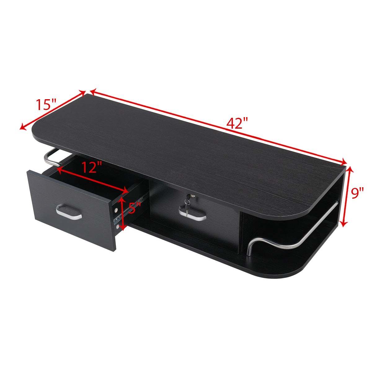 Modern Wall Mounted Styling Station, Hair Salon Locking Cabinet With Storage Drawers, Equipment For Barber Beauty Spa Salon Shops, Black Black Particle Board
