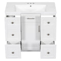 Modern White 36 Inch Freestanding Bathroom Vanity Cabinet With Resin Integrated Basin With 4 Drawers 1 Soft Close Door, Multi Functional Storage White Mdf