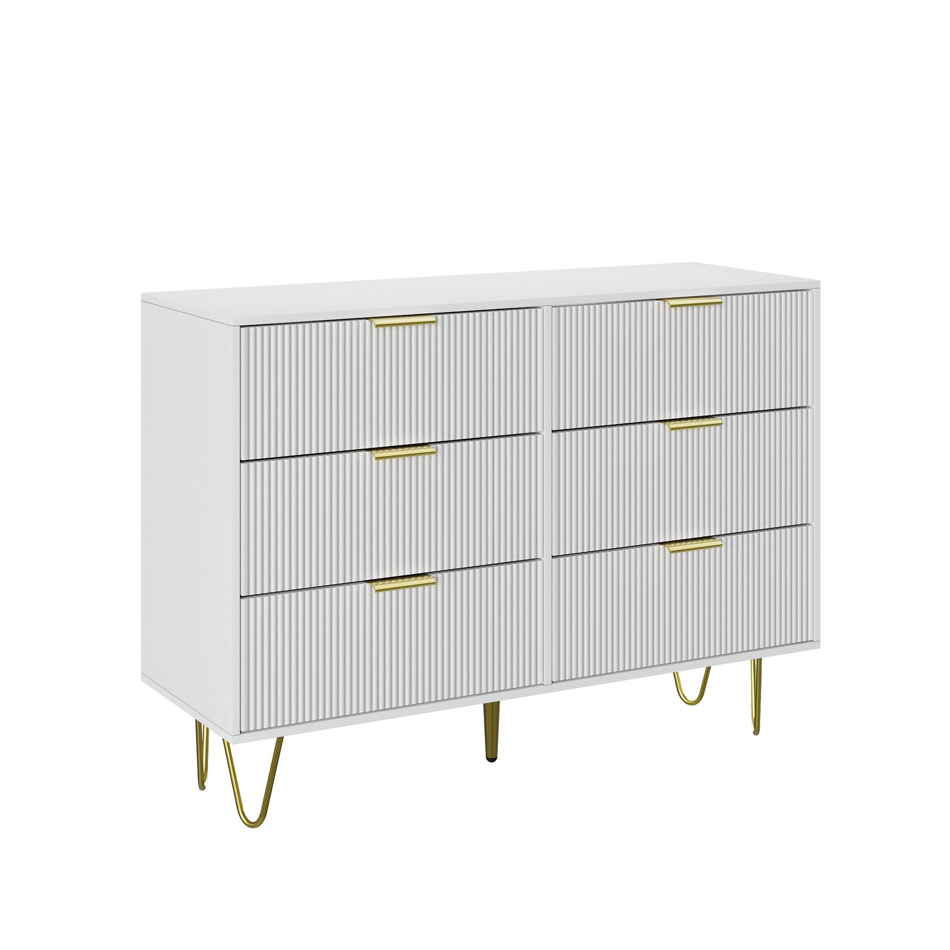 Modern White 6 Drawers For Bedroom,Small Size Wooden Drawers With Gold Handles, Chest Dresser With Deep Drawers For Living Room White Bedroom Mdf