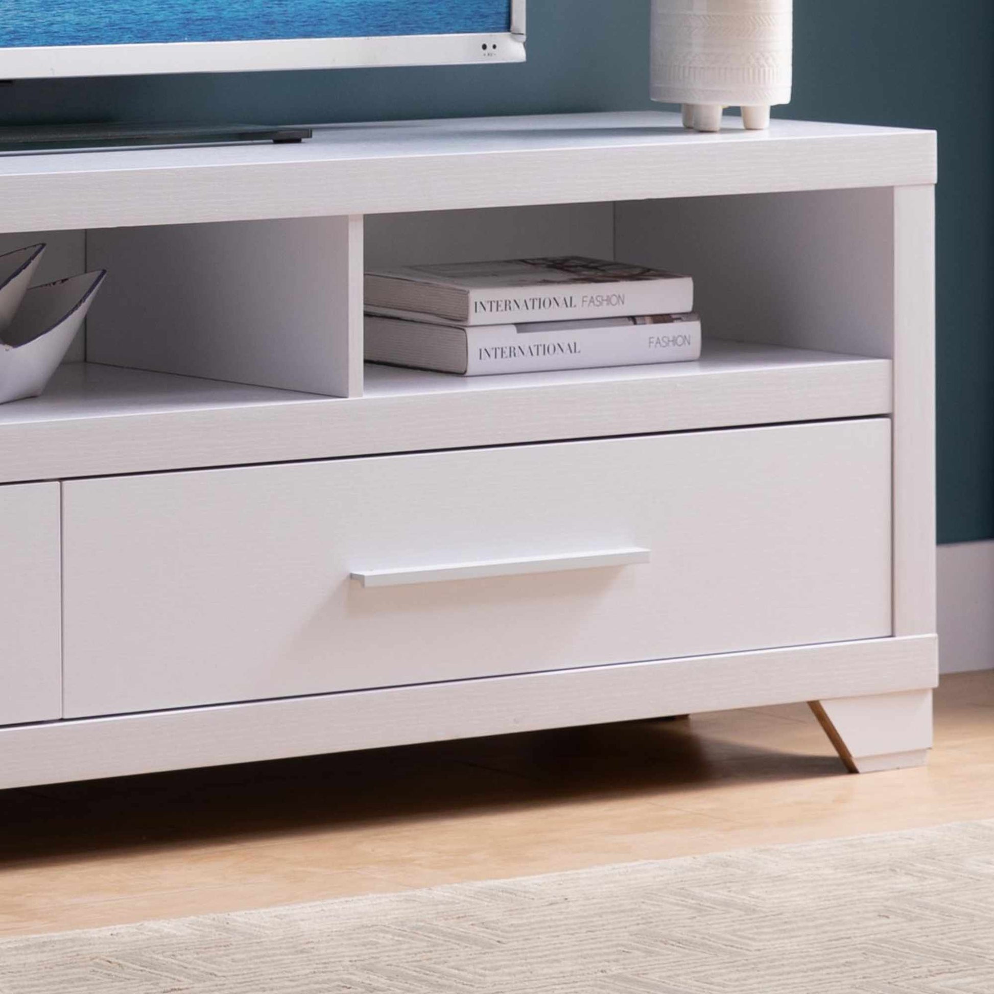 Modern White Tv Stand With Three Open Shelves And Two Drawers With Stylish Media Storage White 70 79 Inches Mdf