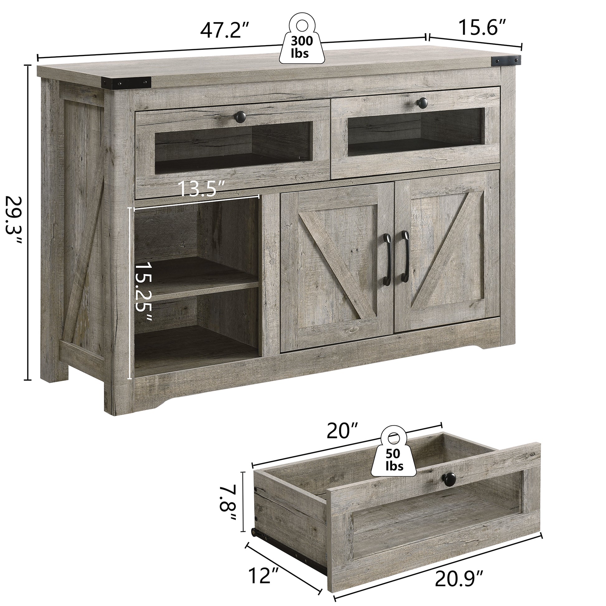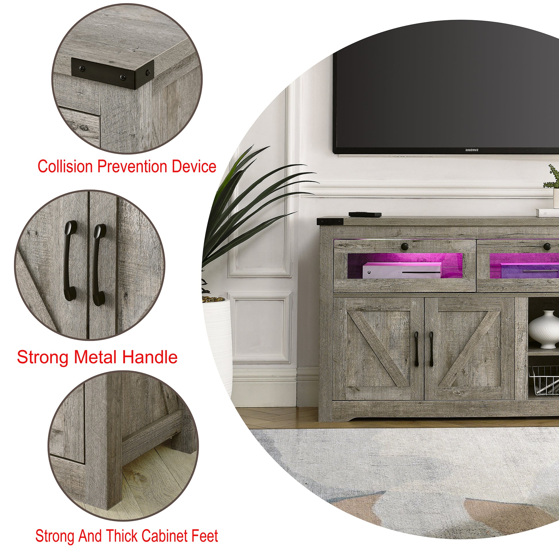 Modern Wooden Sideboard, Kitchen Buffet, Built In With Adjustable Laminate And Led Lights, 2 Drawers And A Barn Door, Suitable For Kitchen, Dining Room, Living Room. Cement Grey 60 Inches Contemporary,European,Pastoral,Rustic,Vintage Particle Board