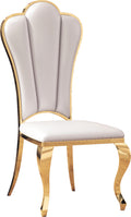 Moderndining Chairs Set Of 2, Unique Backrest Design With Stripe Armless Chair White Pu Leather