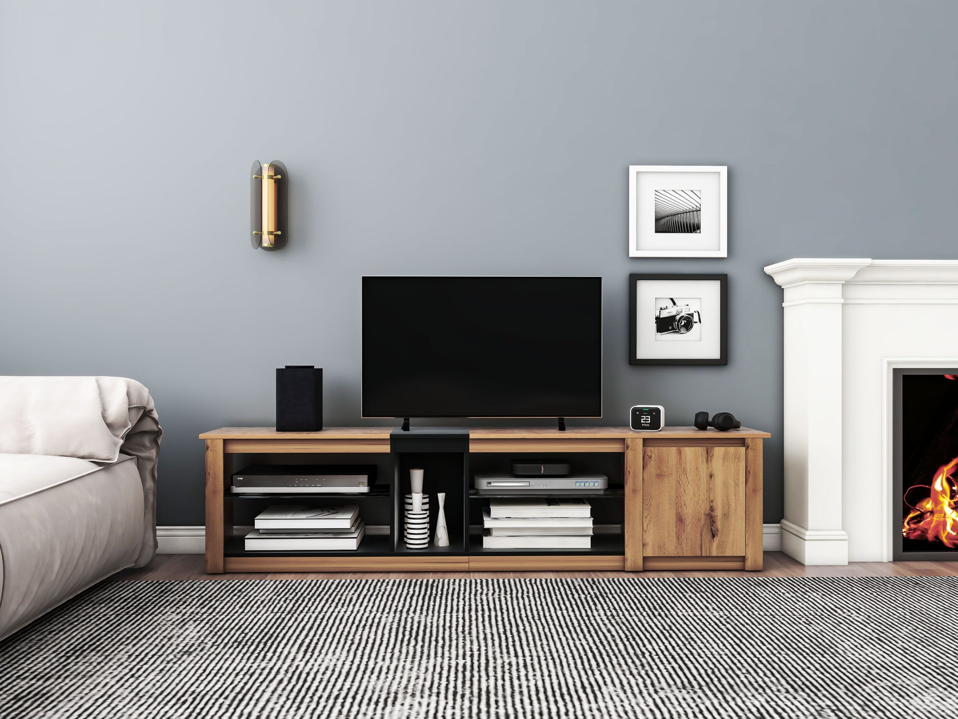 Moderntv Stand For Tvs Up To 80''Media Console With Multi Functional Storage, Entertainment Center With Led Light, Tv Cabinet For Living Room,Bedroom Black Natural 70 79 Inches 70 79 Inches 70 Inches Particle Board