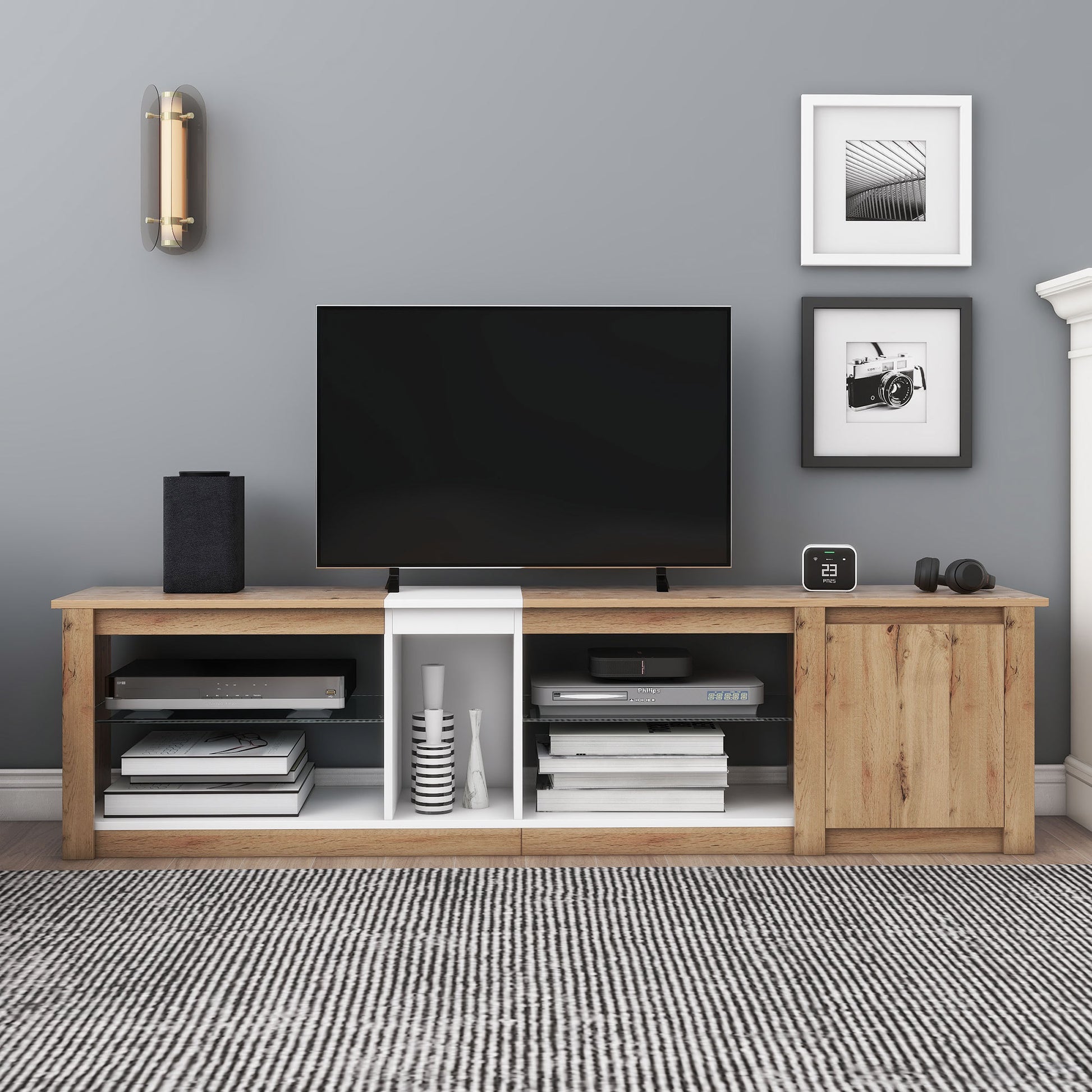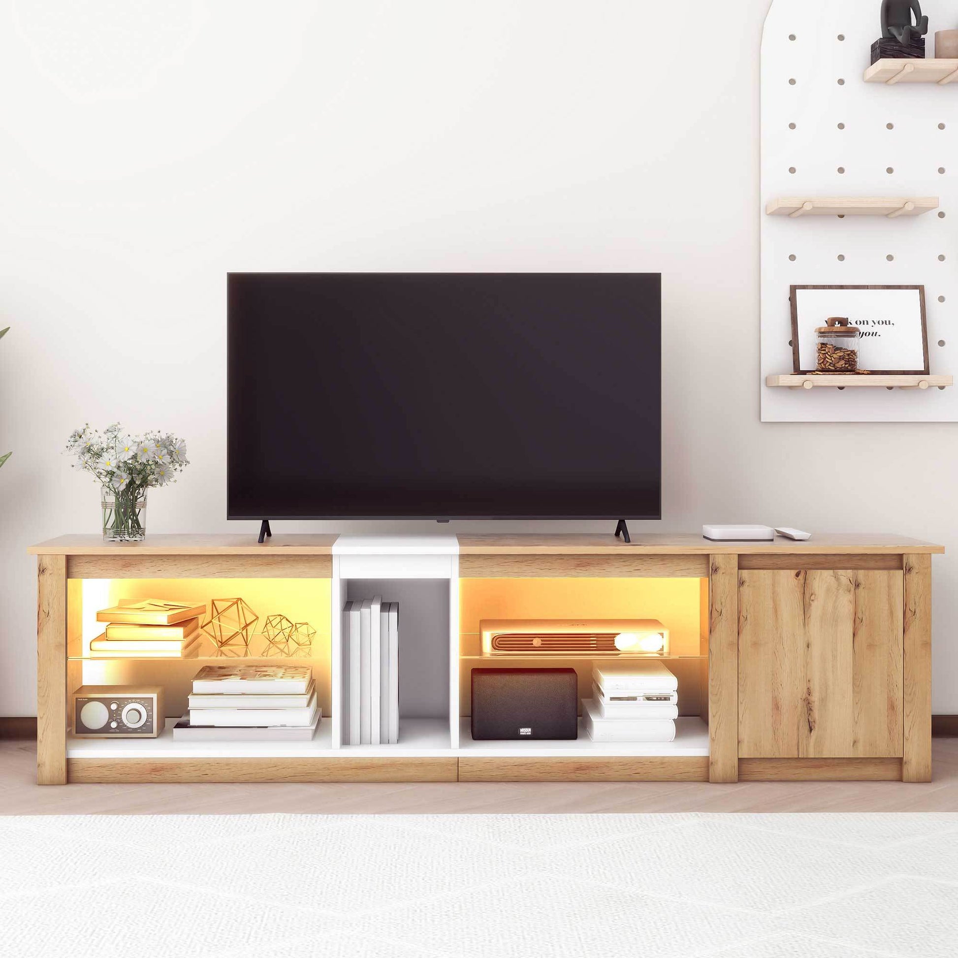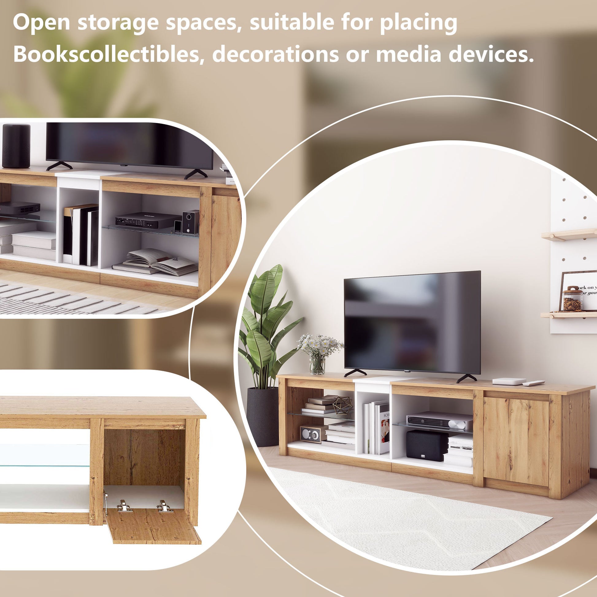 Moderntv Stand For Tvs Up To 80''Media Console With Multi Functional Storage, Entertainment Center With Led Light, Tv Cabinet For Living Room,Bedroom White Natural 70 79 Inches 70 79 Inches 70 Inches Particle Board