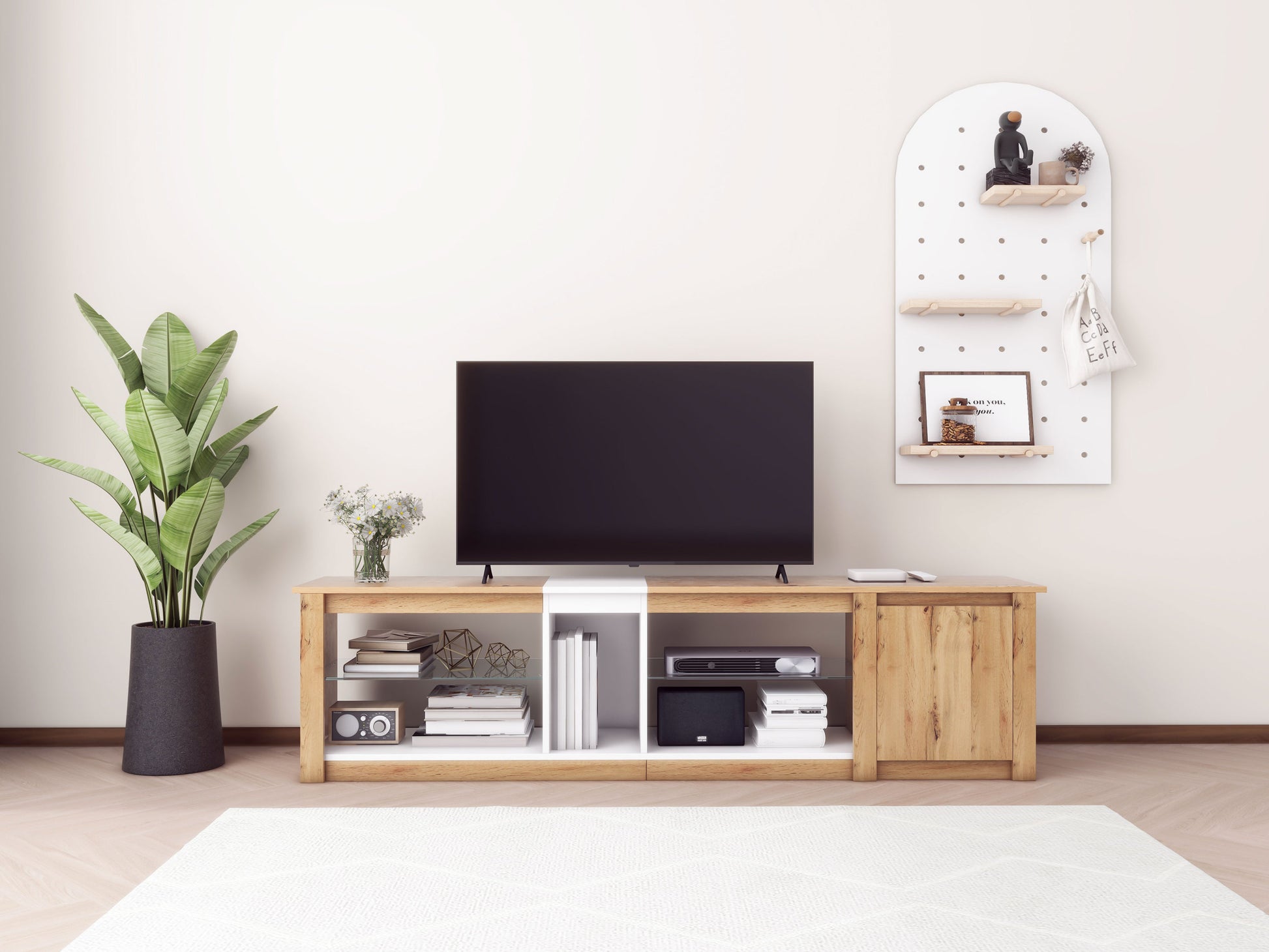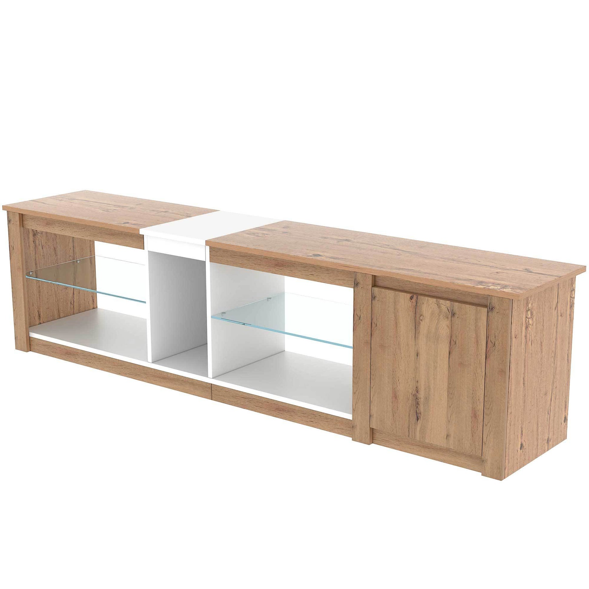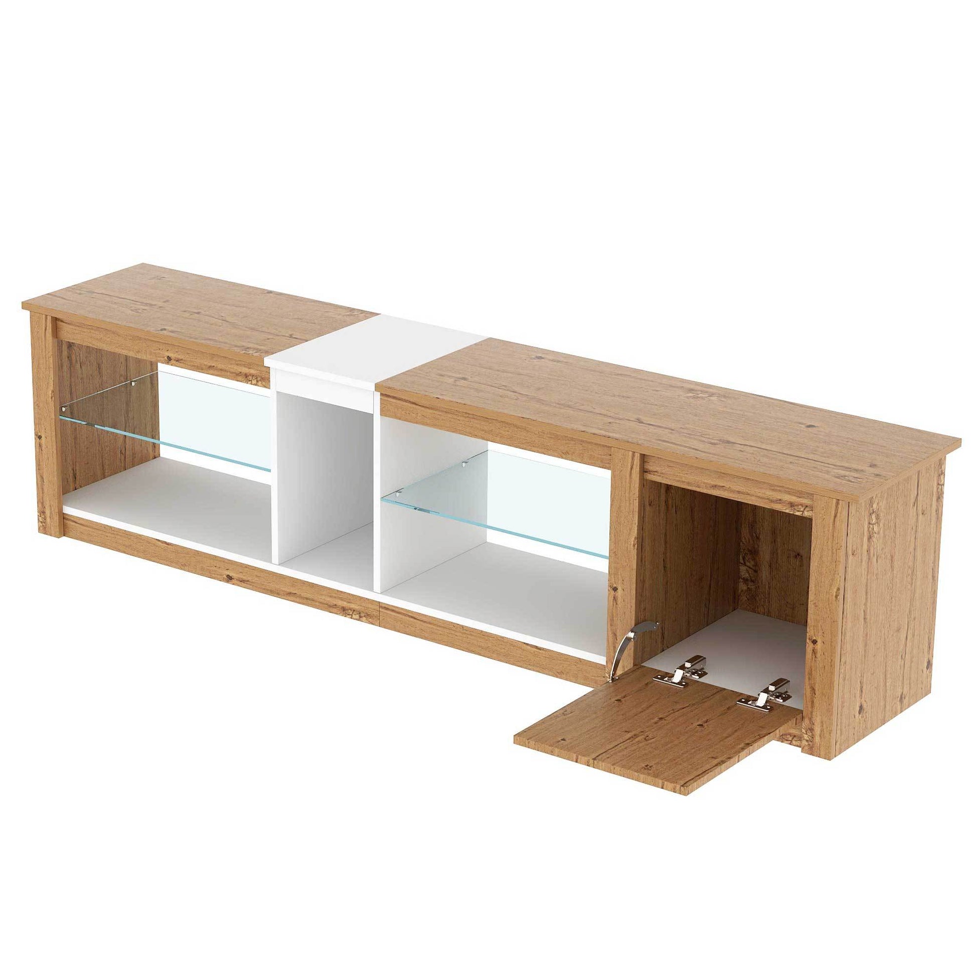 Moderntv Stand For Tvs Up To 80''Media Console With Multi Functional Storage, Entertainment Center With Led Light, Tv Cabinet For Living Room,Bedroom White Natural 70 79 Inches 70 79 Inches 70 Inches Particle Board