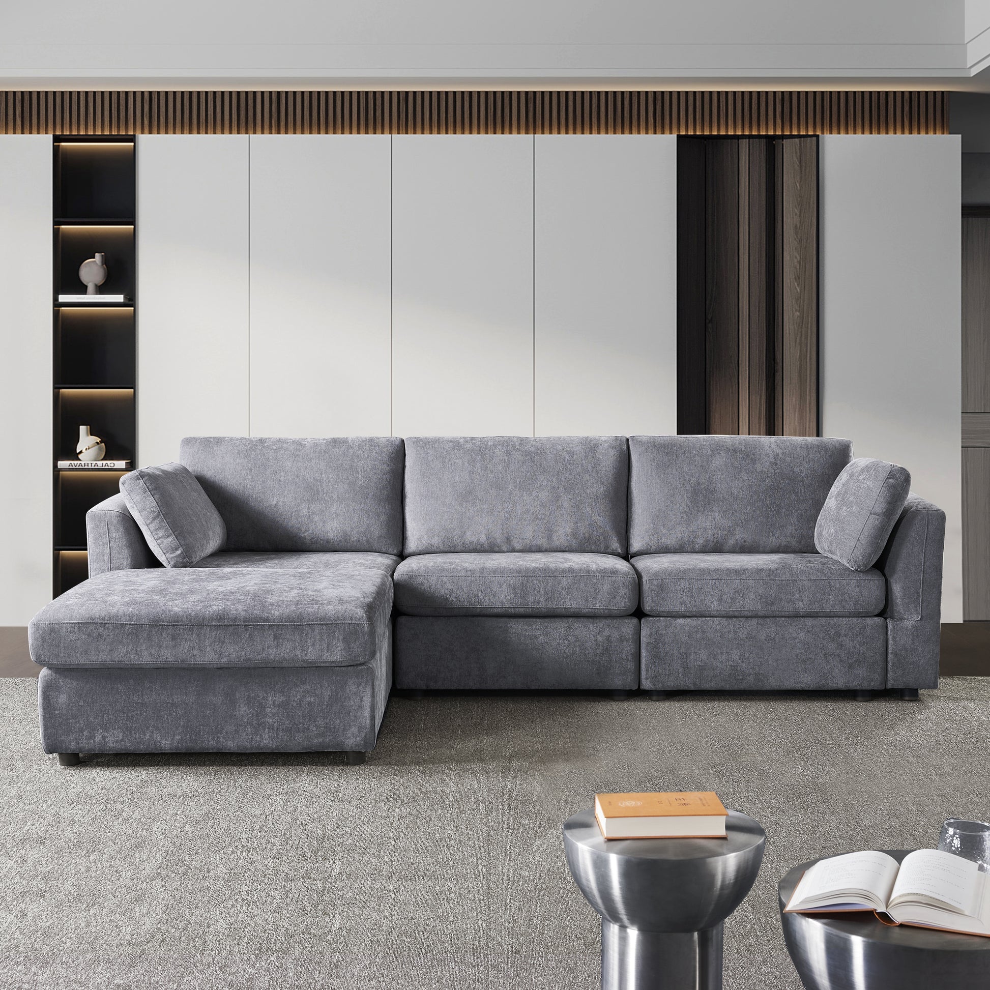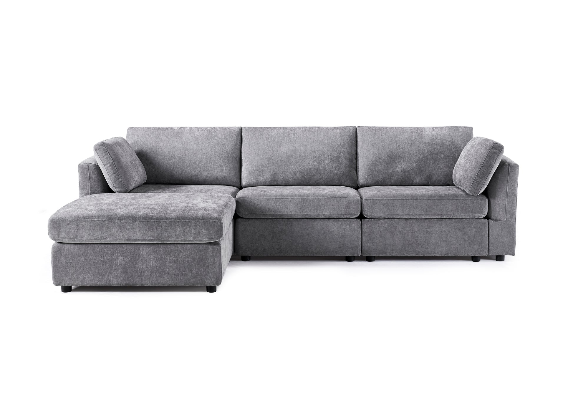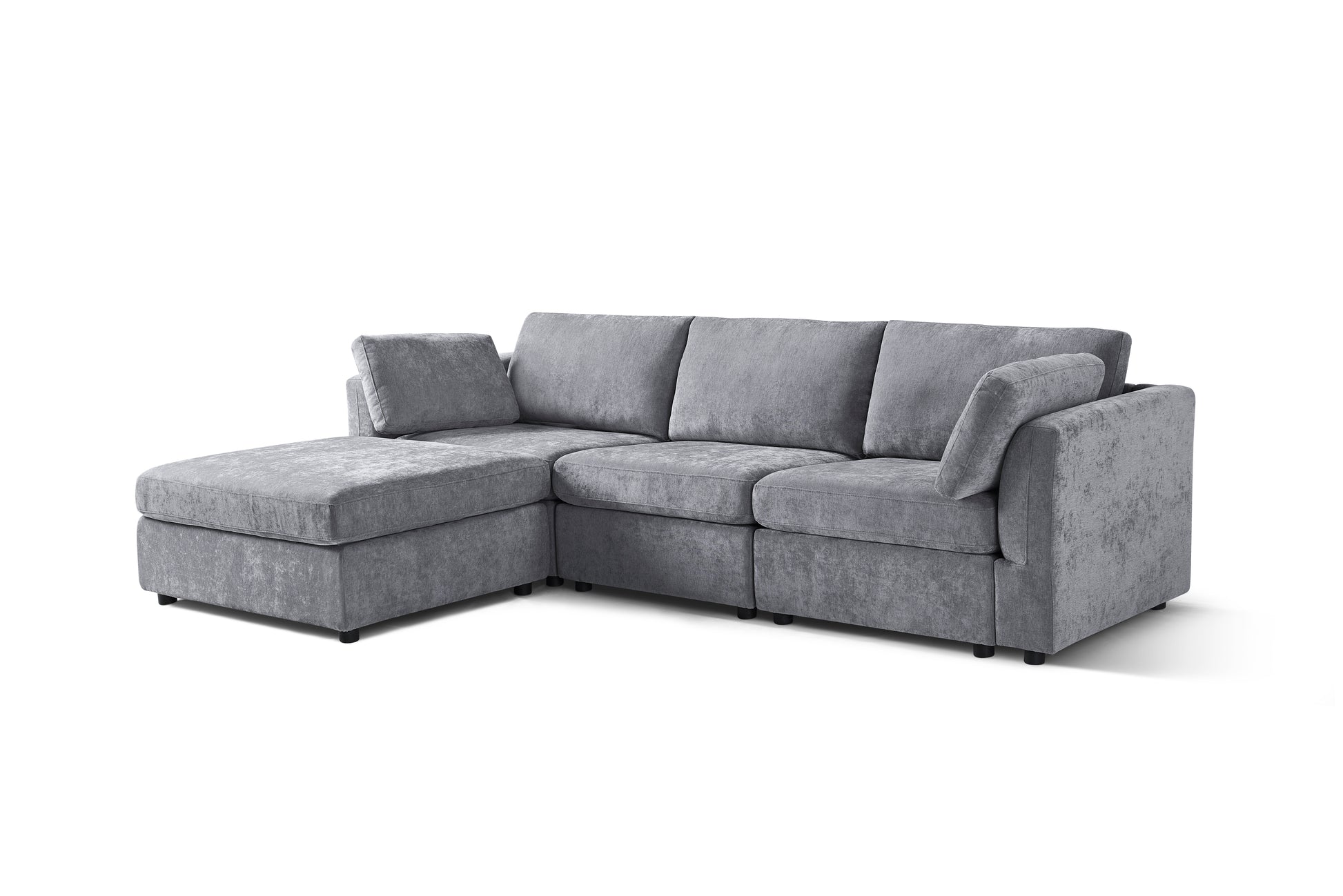 Modular Grey Sofa Fabric, Simple And Grand, The Seat And Back Is Very Soft. This Is Also A Knock Down Sofa Grey Brown Chenille Wood Primary Living Space Medium Firm Light Duty Victorian Rectangle Acacia Rolled Arms Chenille 4 Seat