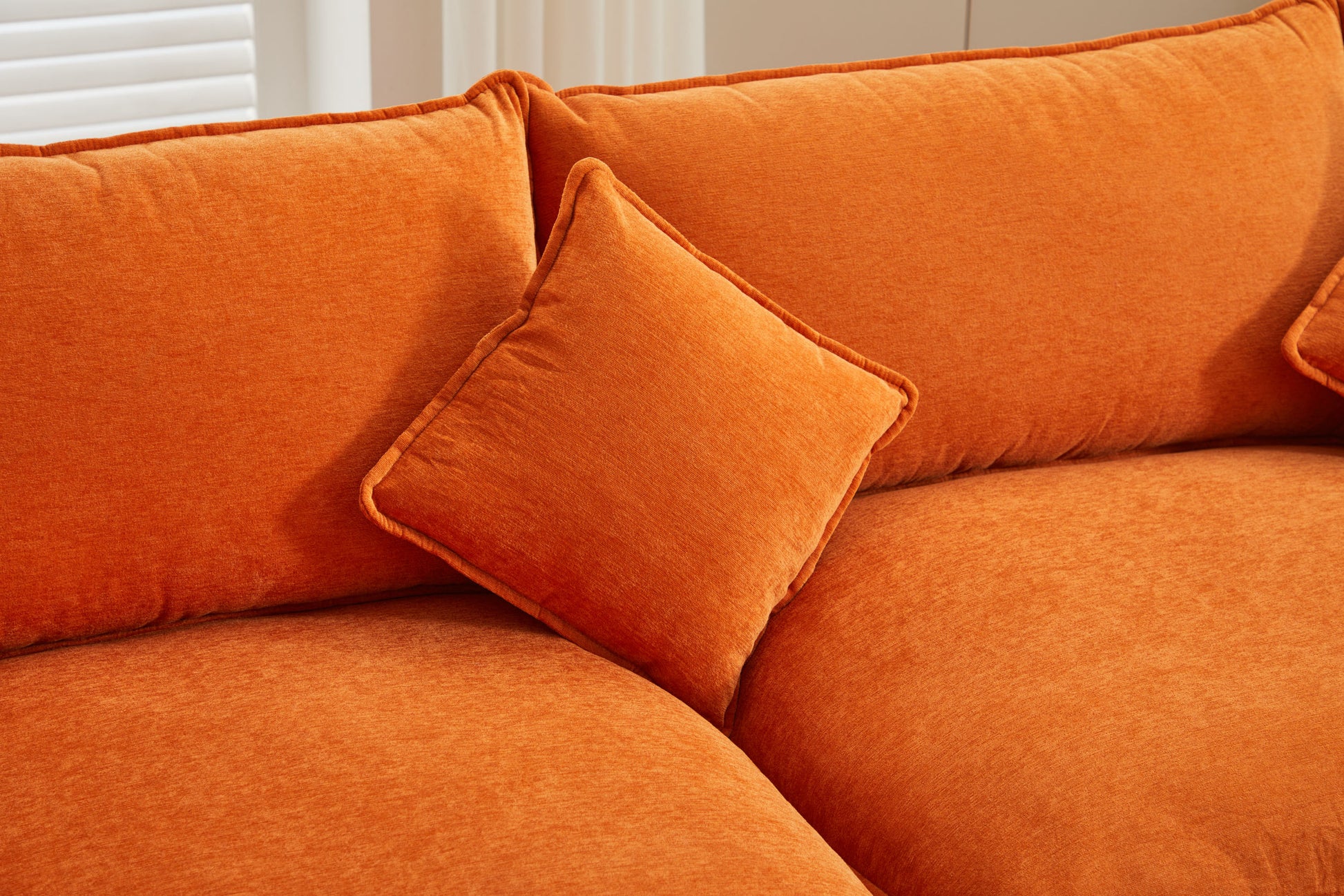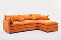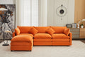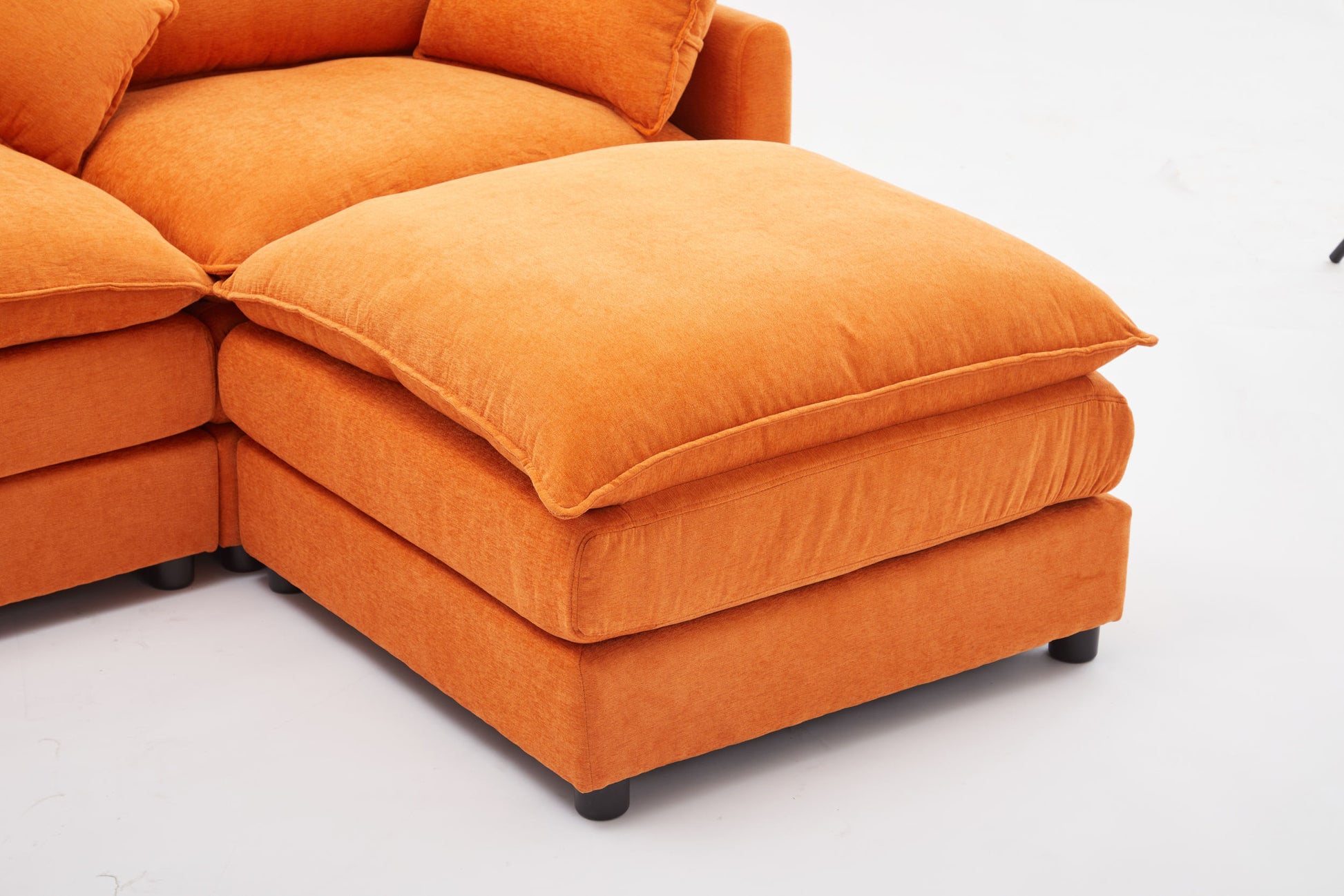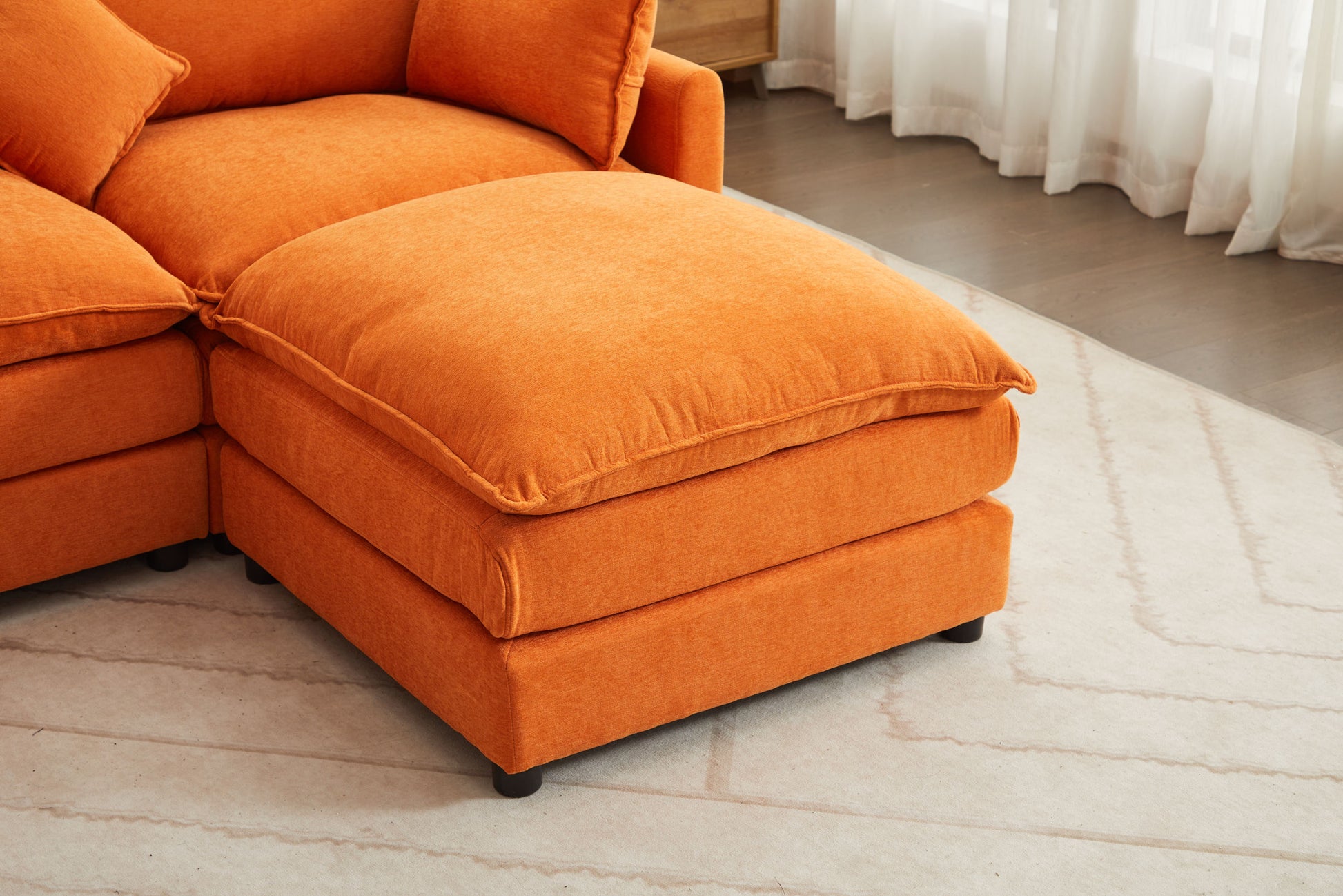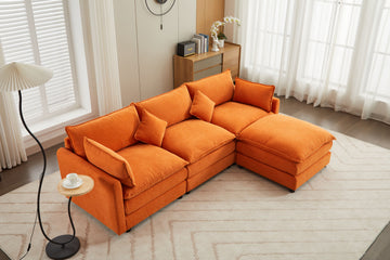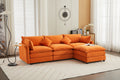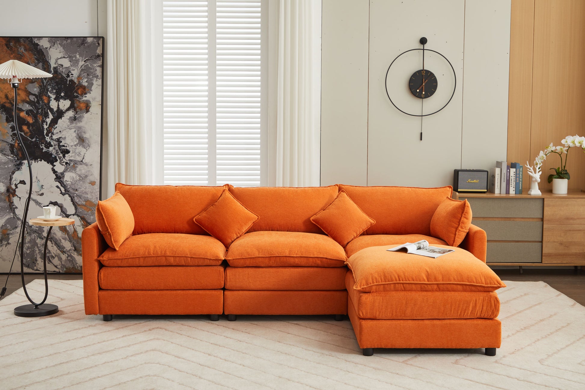 Modular Sectional Sofa, 3 Seater Sofa With Ottoman, Modern L Shaped Sofa For Living Room Bedroom Apartment Orange Wood Fabric 4 Seat