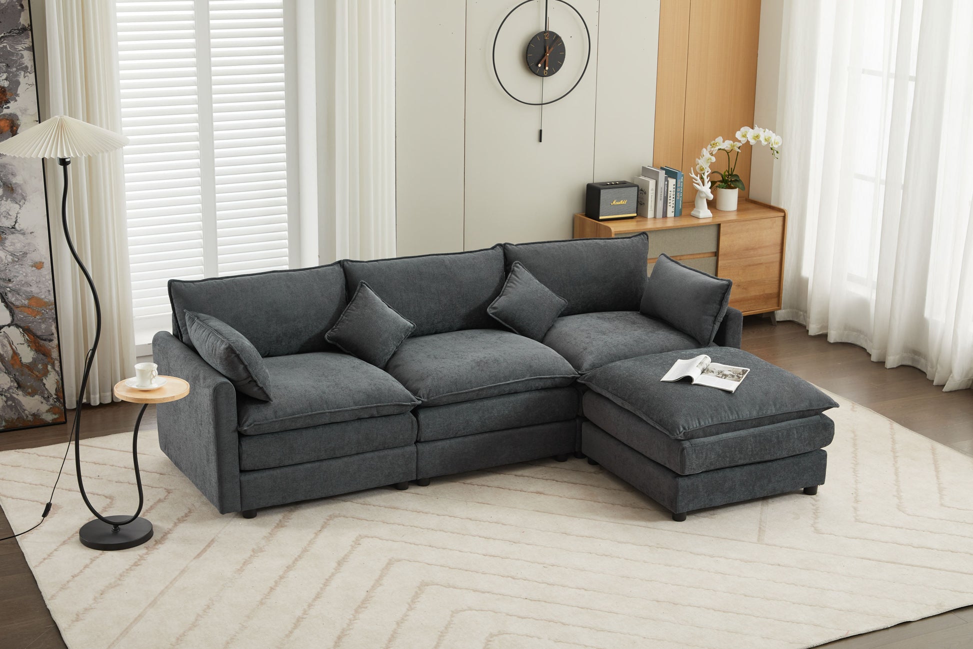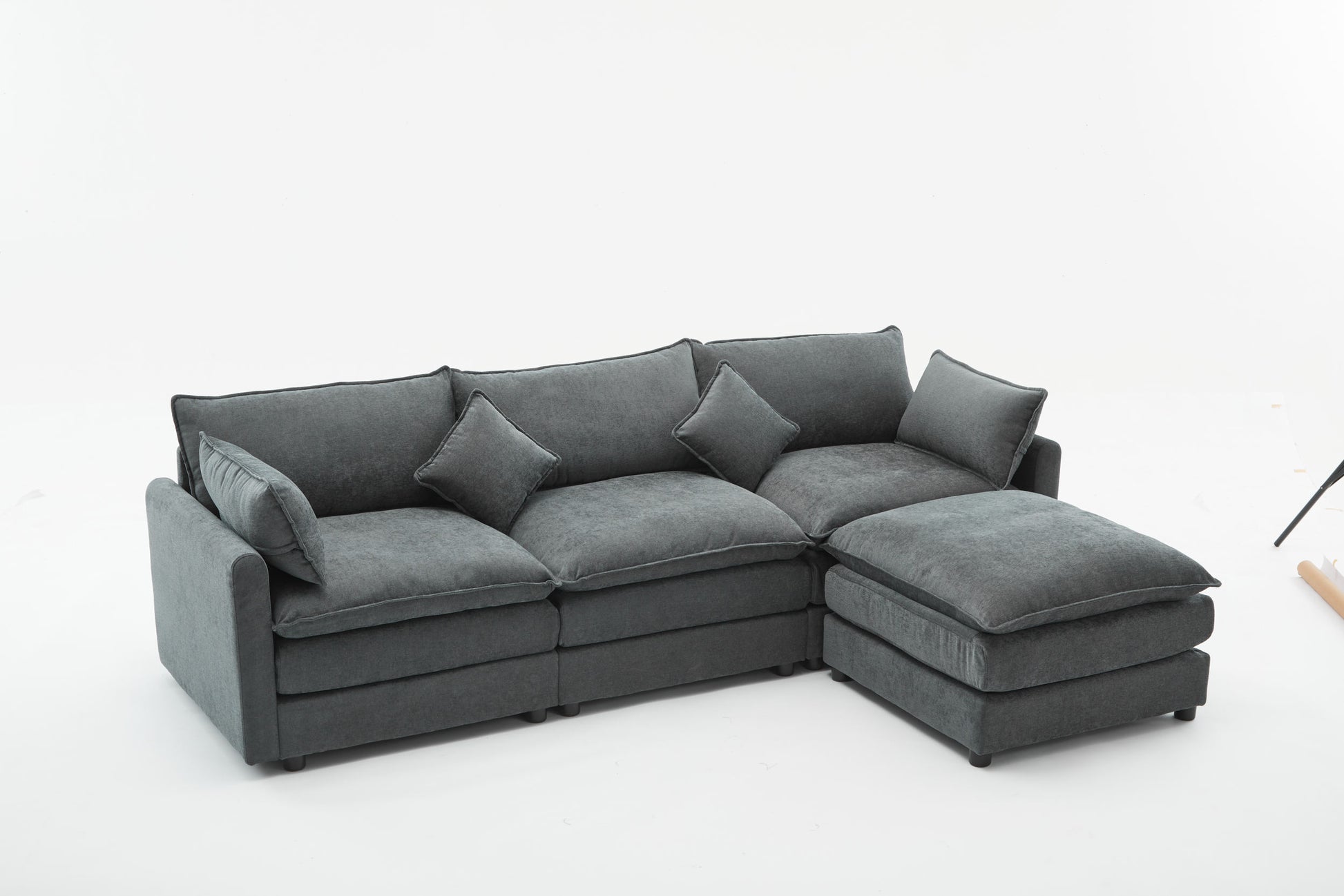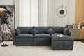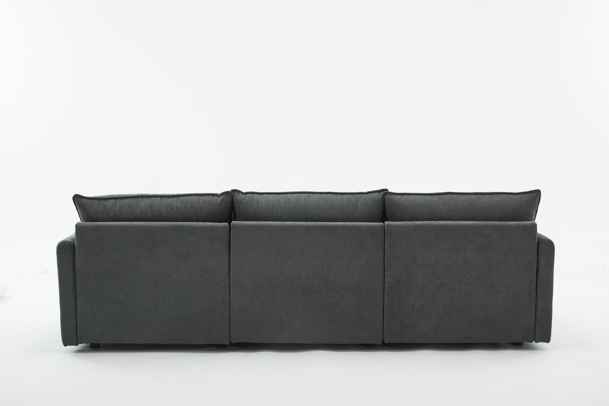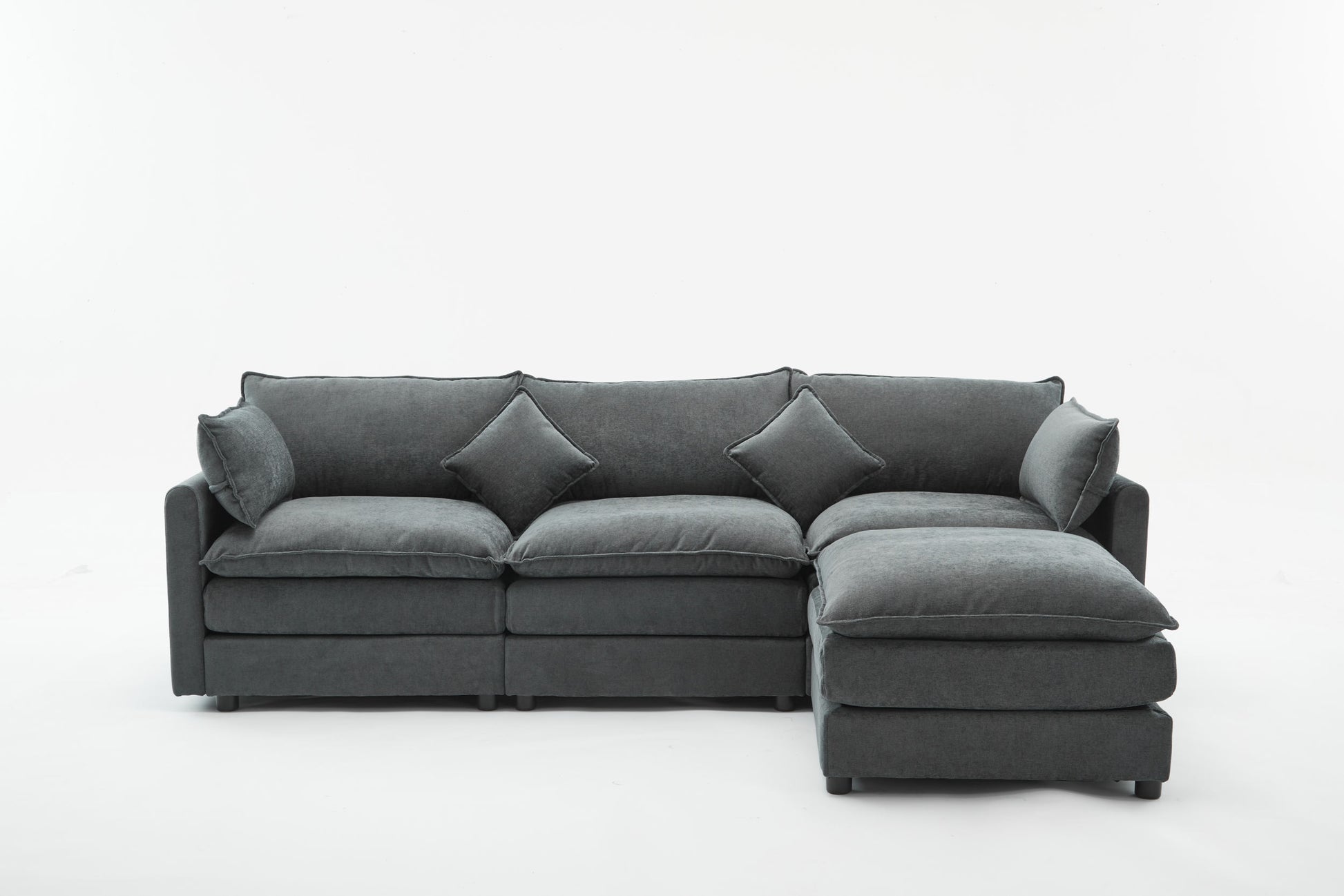 Modular Sectional Sofa, 3 Seater Sofa With Ottoman, Modern L Shaped Sofa For Living Room Bedroom Apartment Dark Gray Wood Fabric 4 Seat