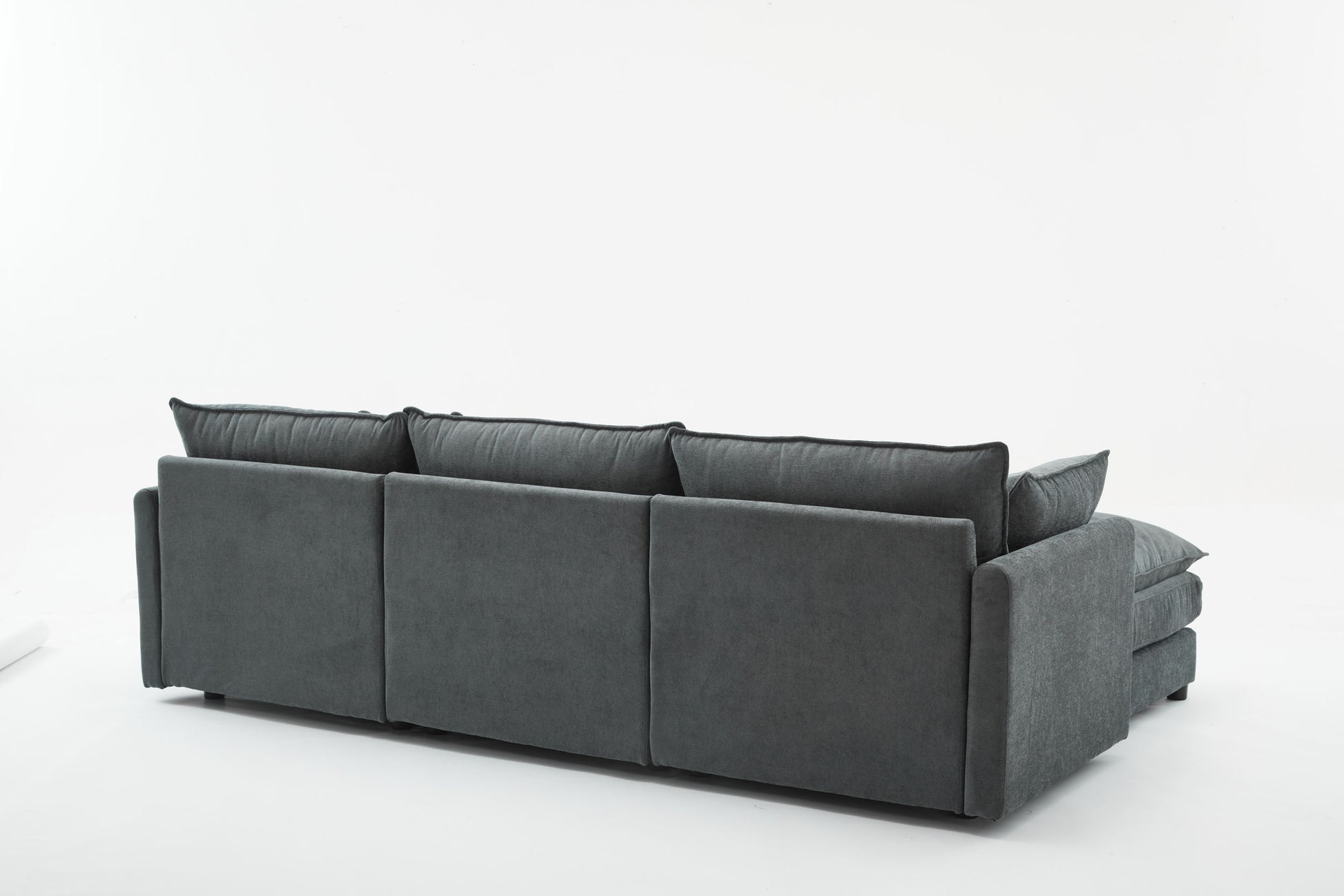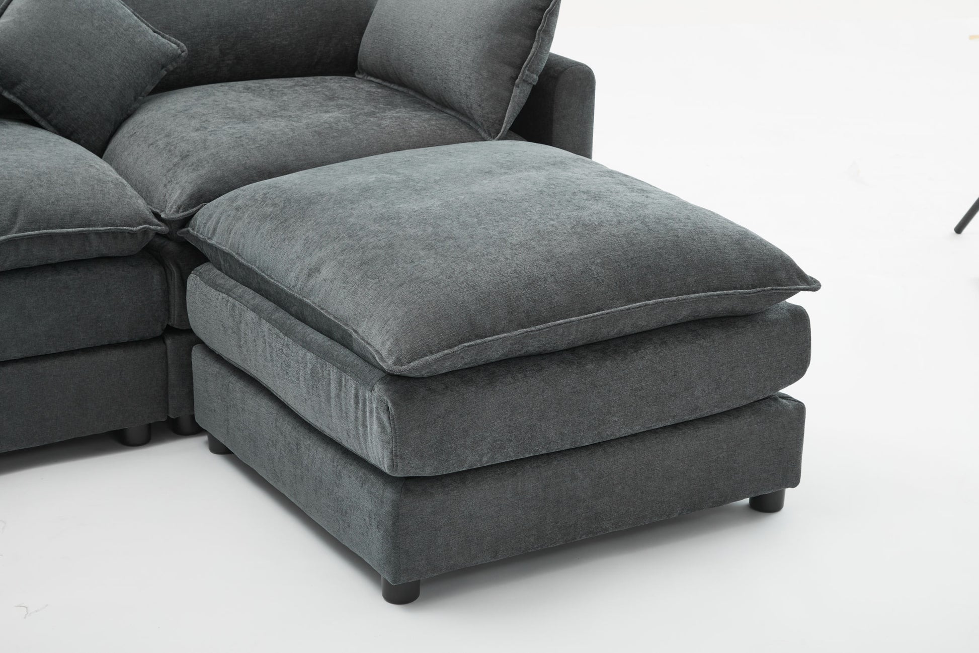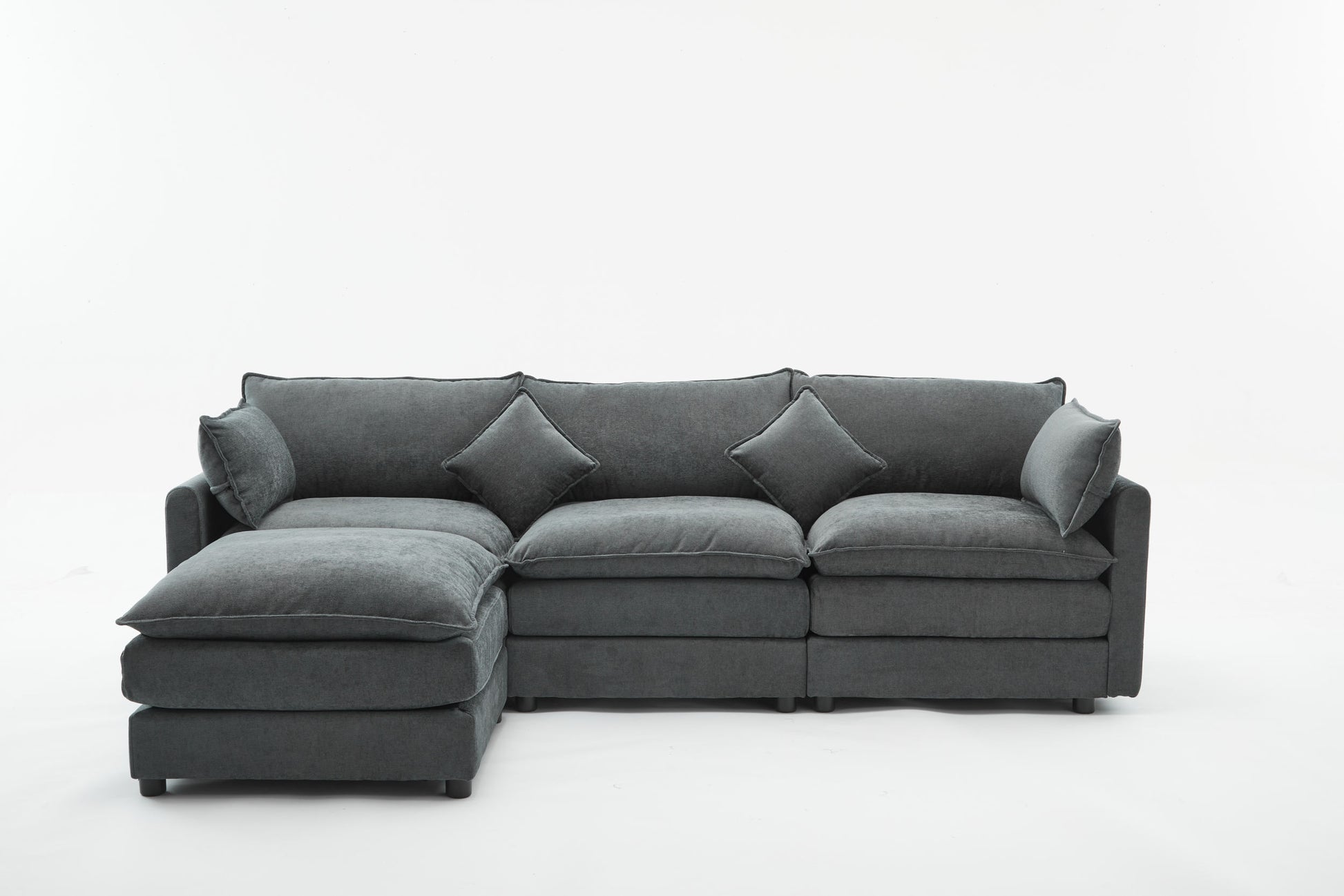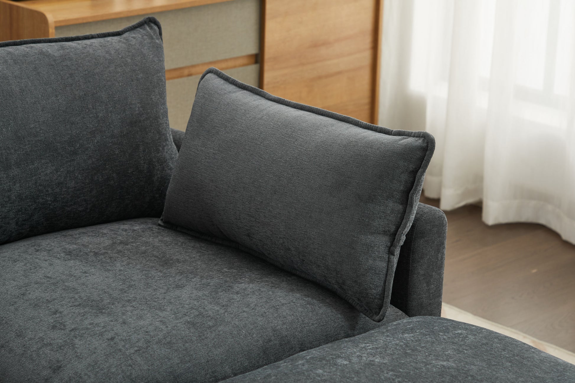 Modular Sectional Sofa, 3 Seater Sofa With Ottoman, Modern L Shaped Sofa For Living Room Bedroom Apartment Dark Gray Wood Fabric 4 Seat