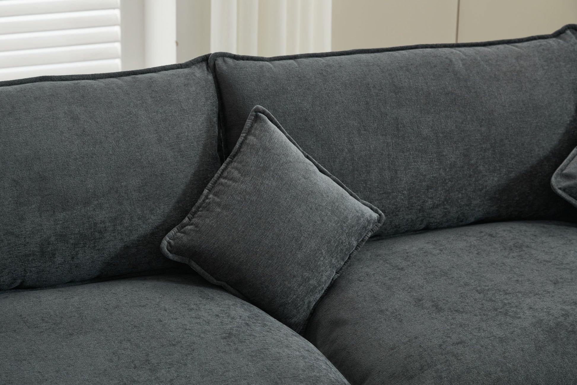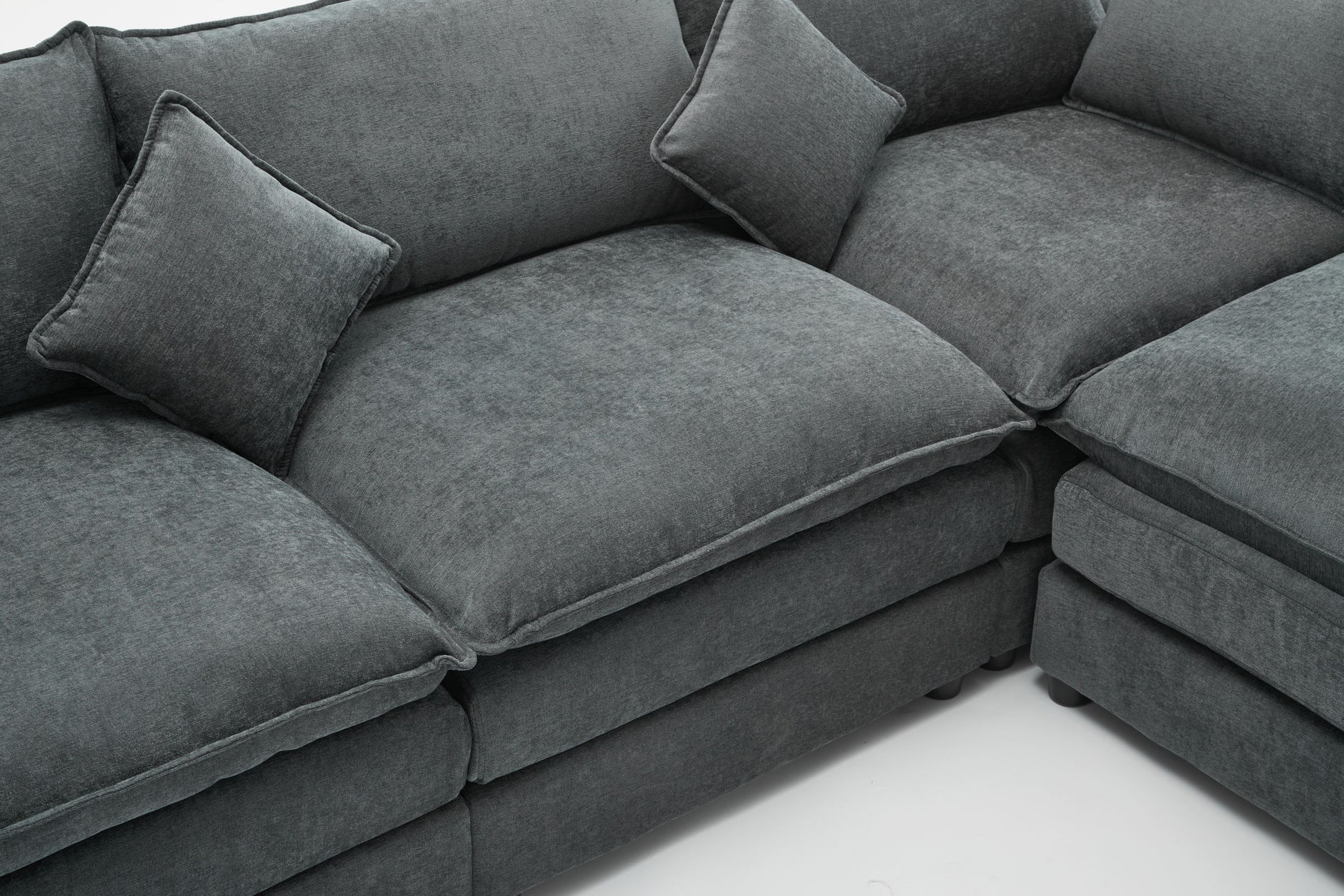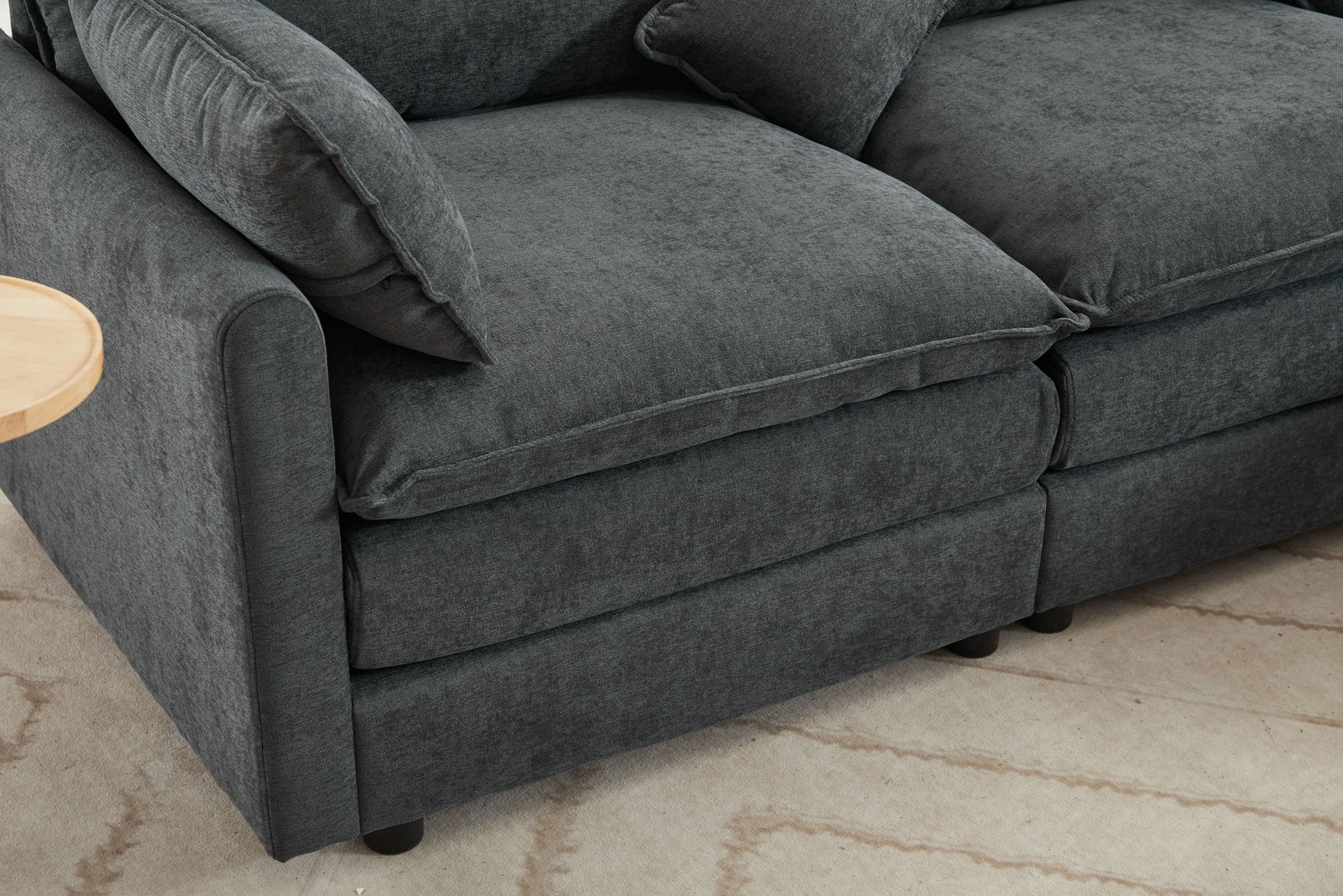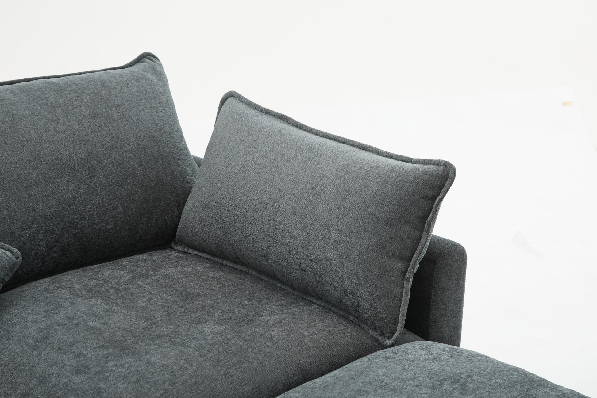 Modular Sectional Sofa, 3 Seater Sofa With Ottoman, Modern L Shaped Sofa For Living Room Bedroom Apartment Dark Gray Wood Fabric 4 Seat