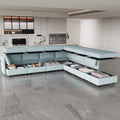 Modular Sectional Sofa, Convertible Sofa Seat With Storage, Sleeper Sectional Sofa Set, Fabric Flexible Modular Combinations For Living Room Antique Blue Fabric 8 Seat