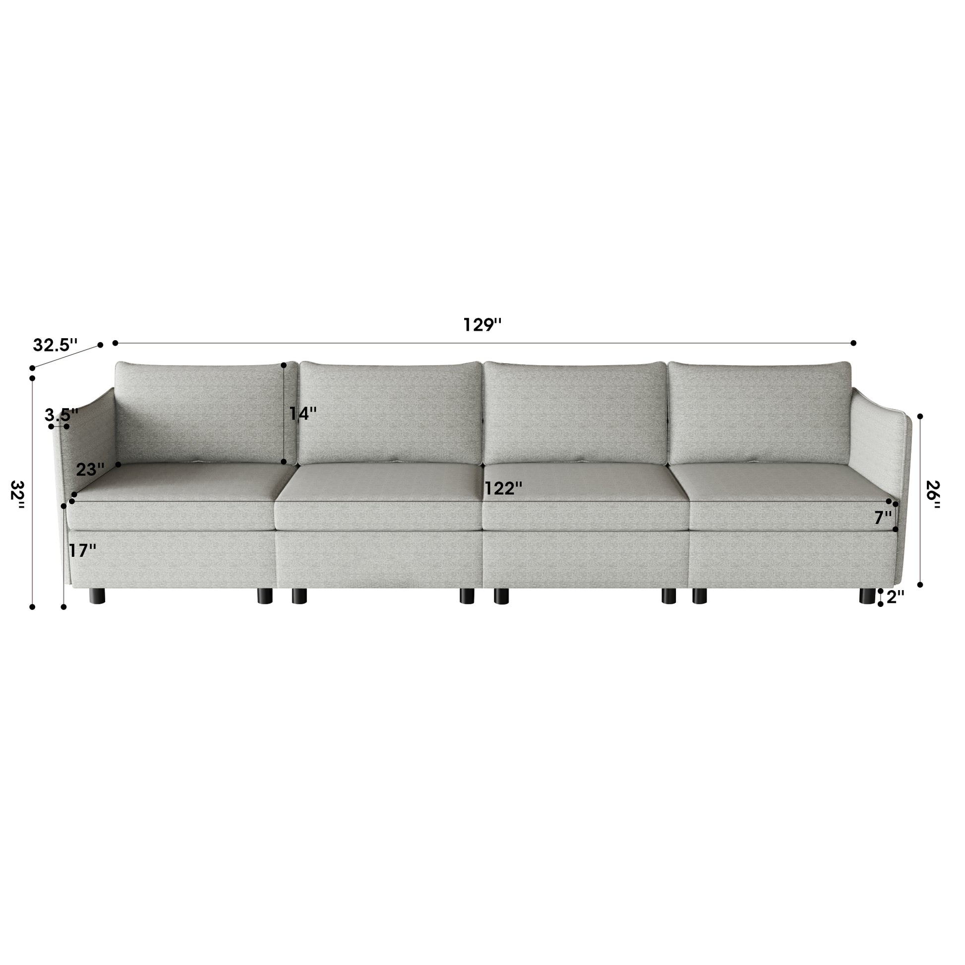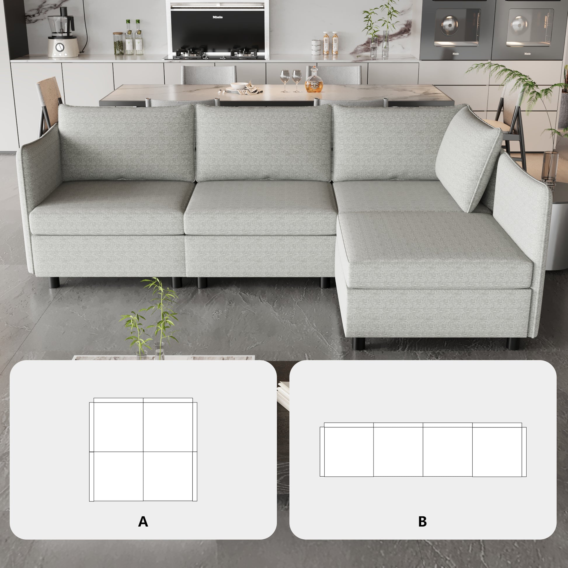 Modular Sectional Sofa, Convertible Sofa Seat With Storage, Sleeper Sectional Sofa Set, Fabric Flexible Modular Combinations For Living Room Grey Fabric 4 Seat