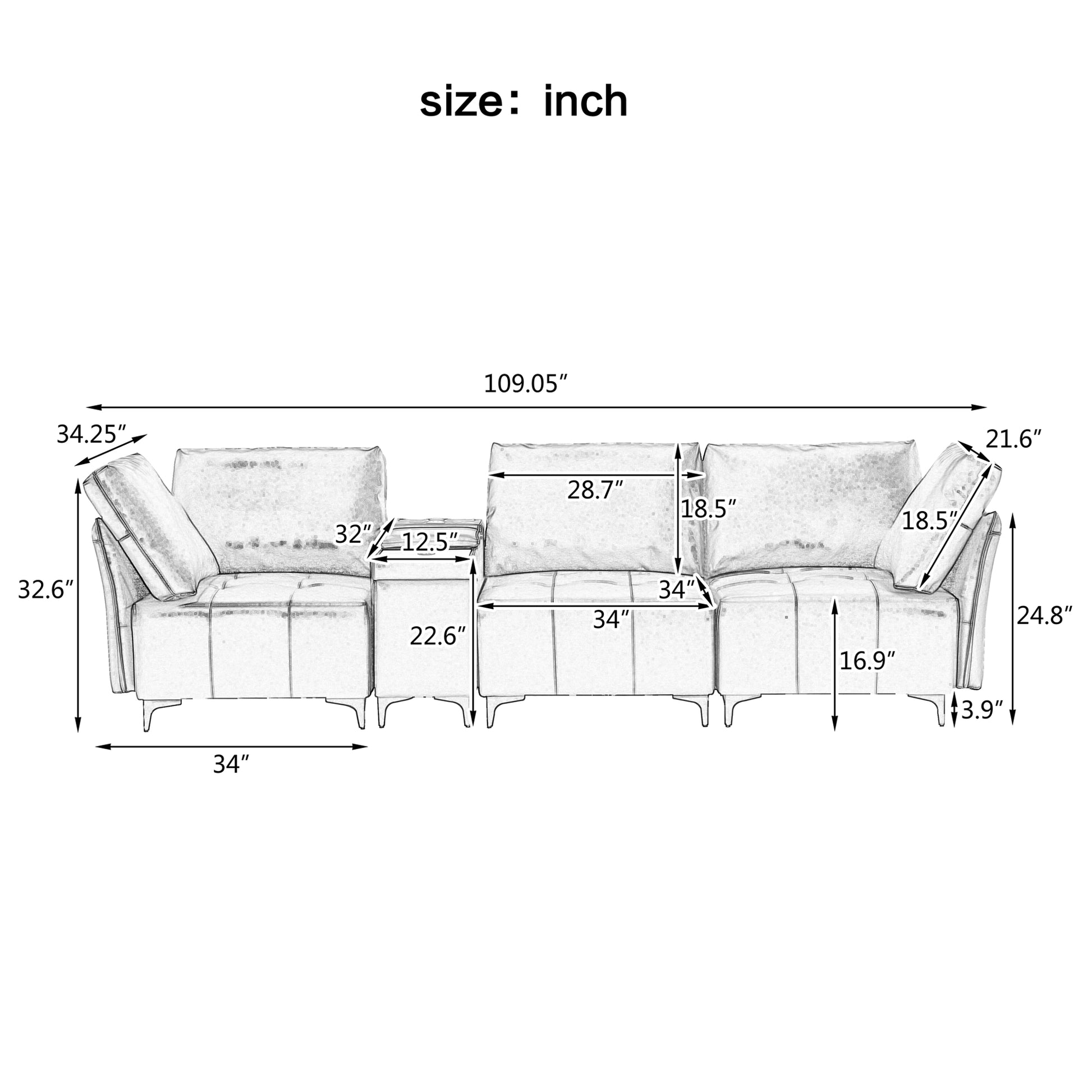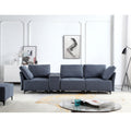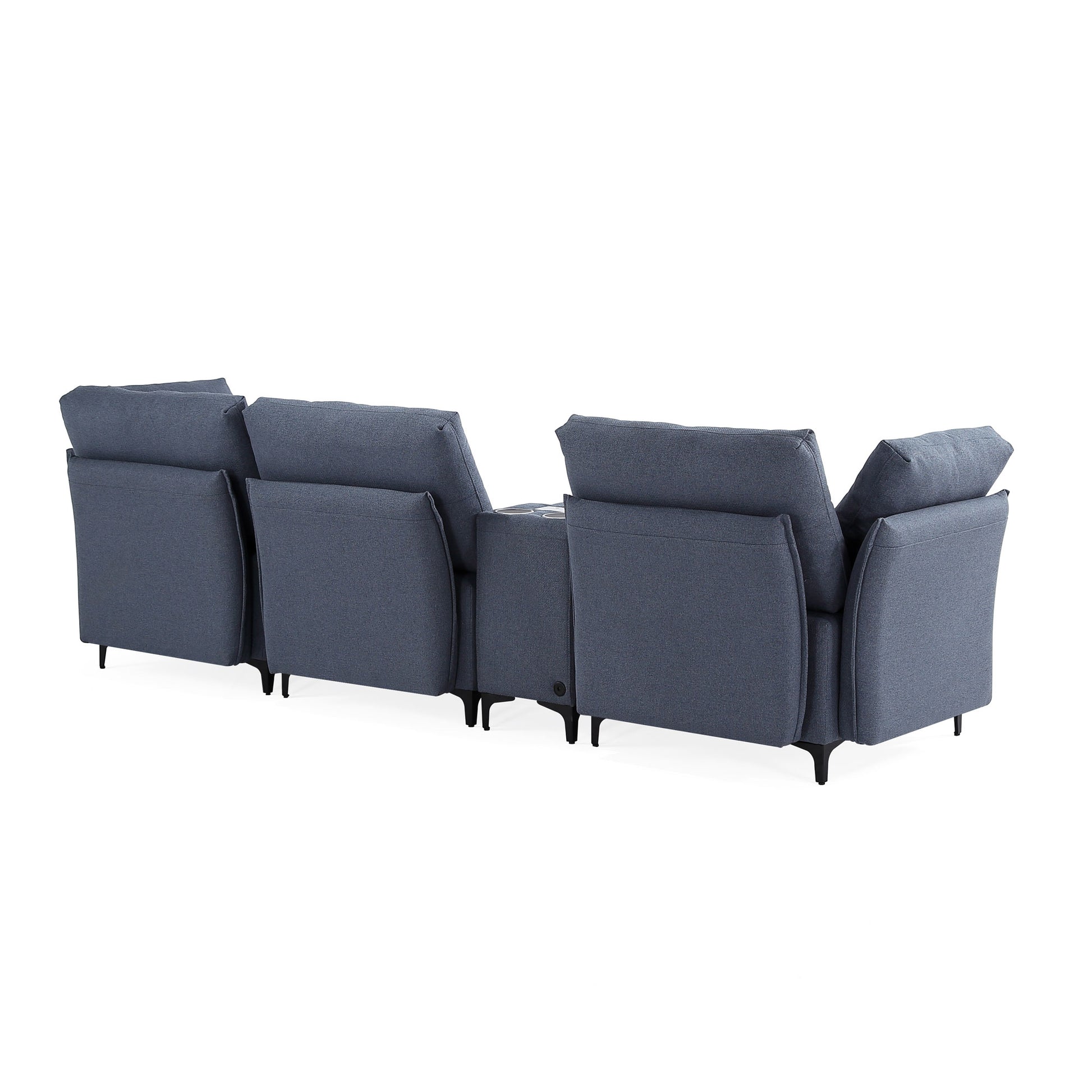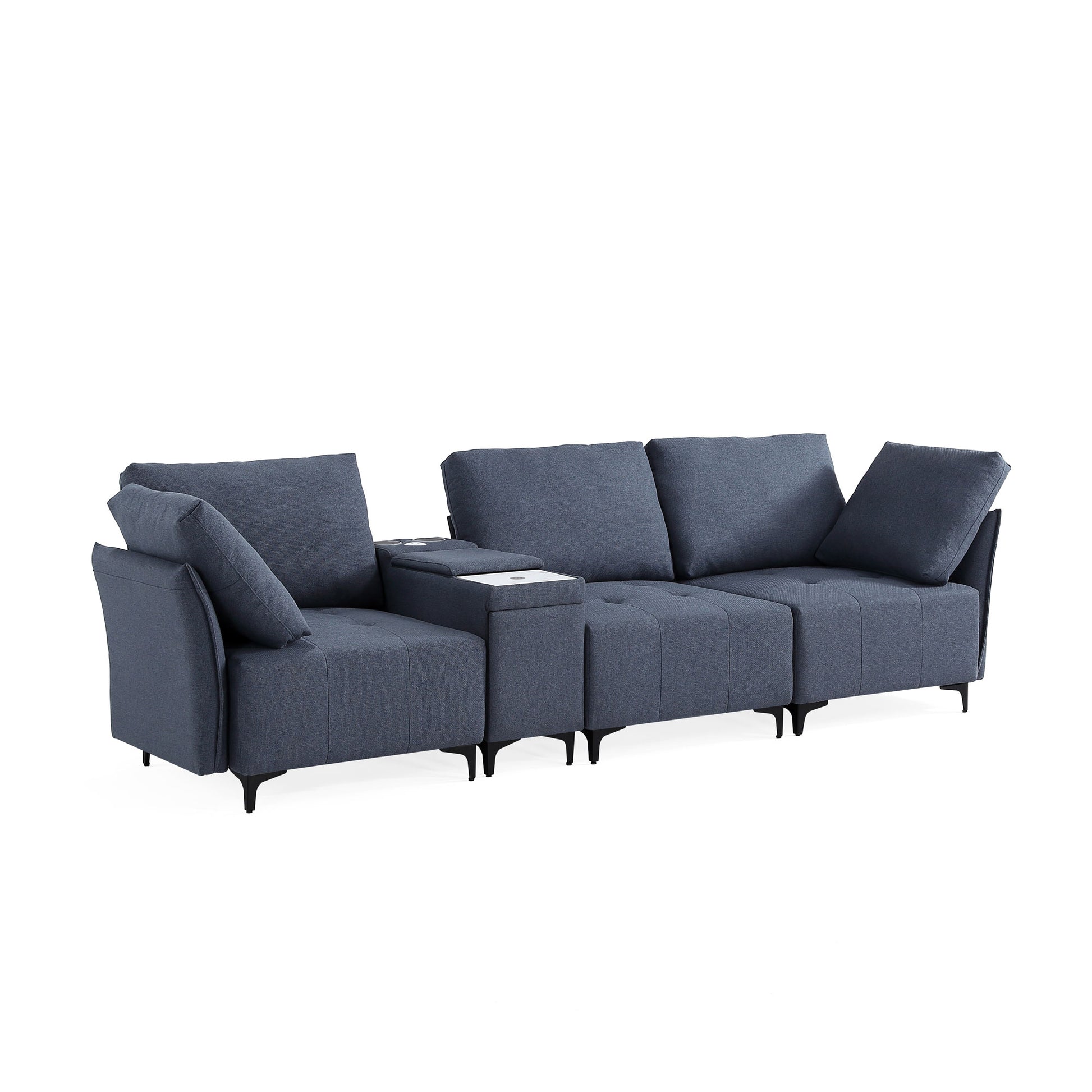 Modular Sectional Sofa,Multifunctional Couches For Living Room With Storage, Mid Console With Speaker And Storage,2 Usb Port And 1 Type C ,Wireless Charging Ceramic Top,Aluminum Cup Holder. Blue Linen Wood Primary Living Space Medium Soft Loose Back