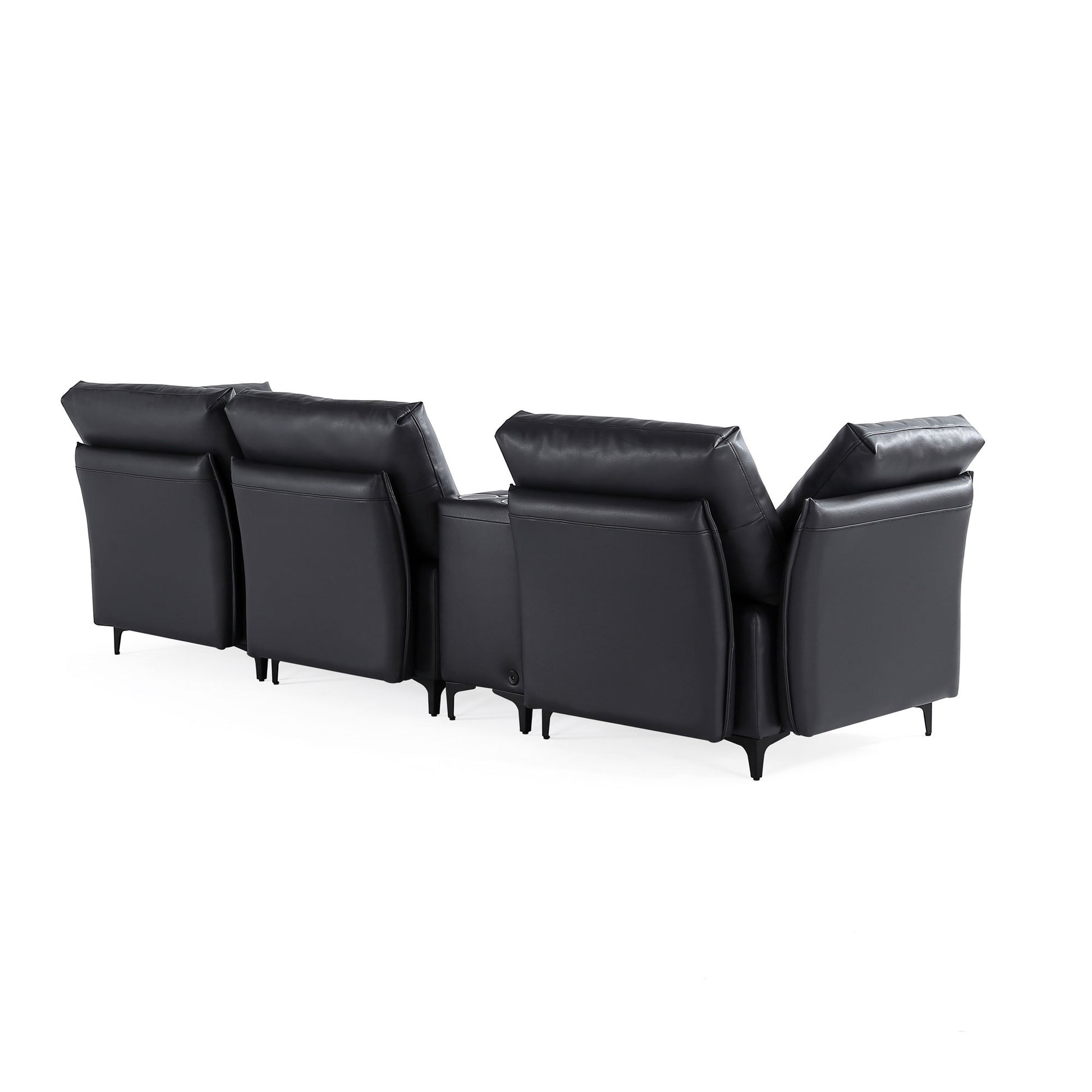 Modular Sectional Sofa,Multifunctional Couches For Living Room With Storage, Mid Console With Speaker And Storage,2 Usb Port And 1 Type C ,Wireless Charging Ceramic Top,Aluminum Cup Holder. Black Faux Leather Wood Primary Living Space Medium Soft Loose