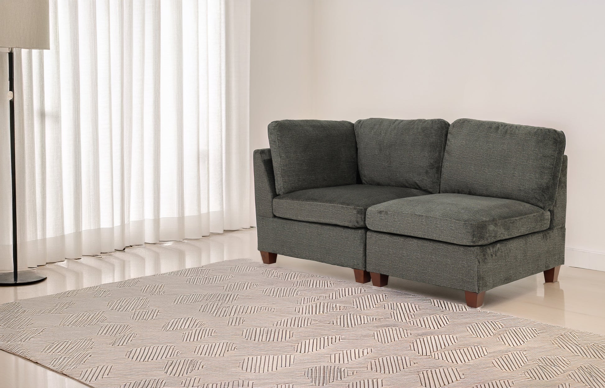 Modular Set 2Pc In Gray Gray Chenille Primary Living Space Firm Cushion Back Armless Chenille 2 Seat