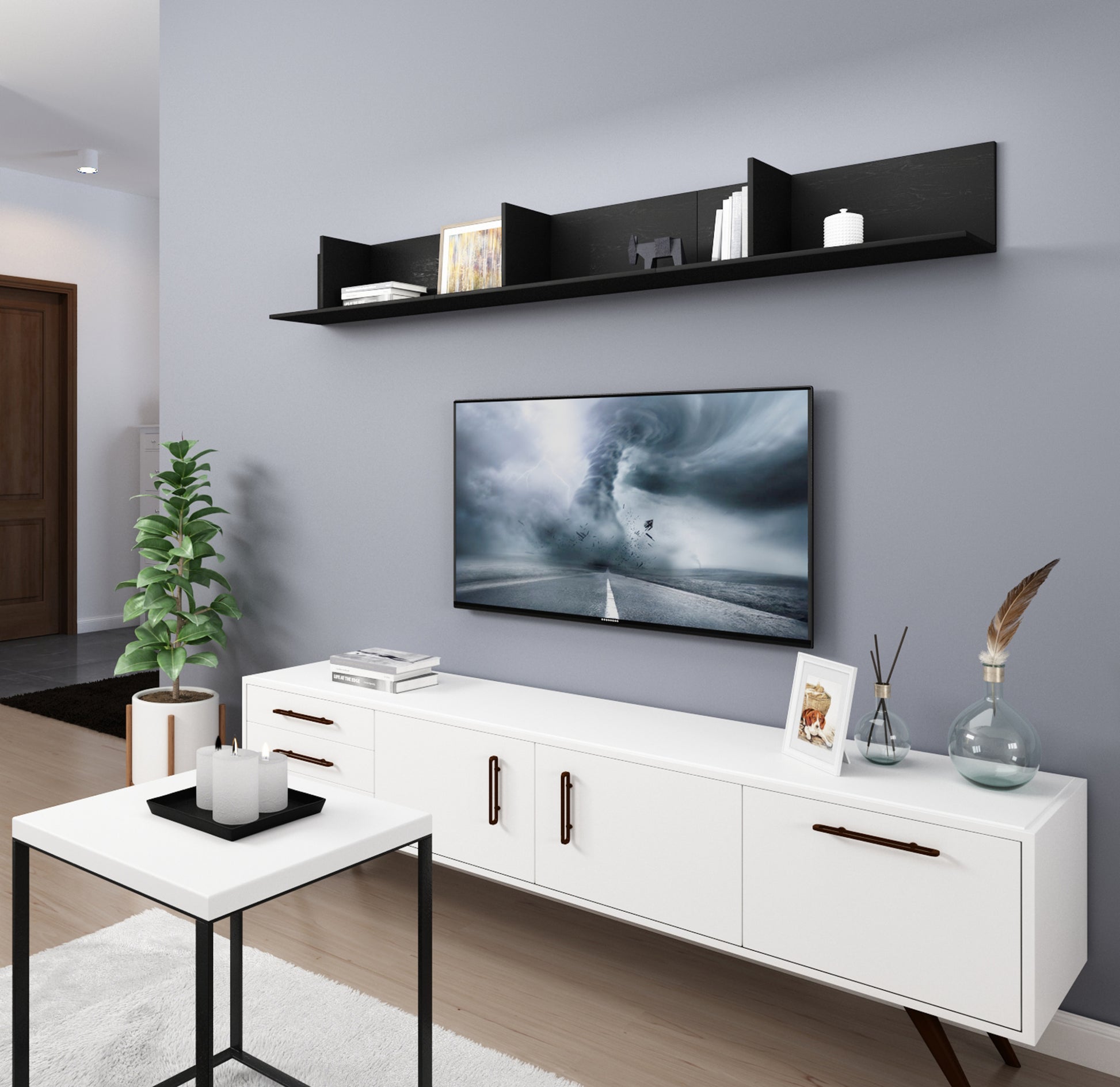 Modular Shelving, Comes With A Wide Base, Made From Mdf, Set Of 2 Black Metal