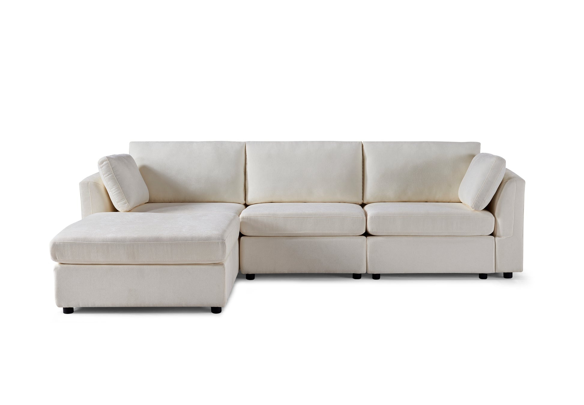 Modular Sofa Whitechenille Fabric, Simple And Grand, The Seat And Back Is Very Soft. This Is Also A Knock Down Sofa Creamy White White Chenille Wood Primary Living Space Medium Firm Light Duty Victorian Rectangle Acacia Rolled Arms Chenille 4 Seat