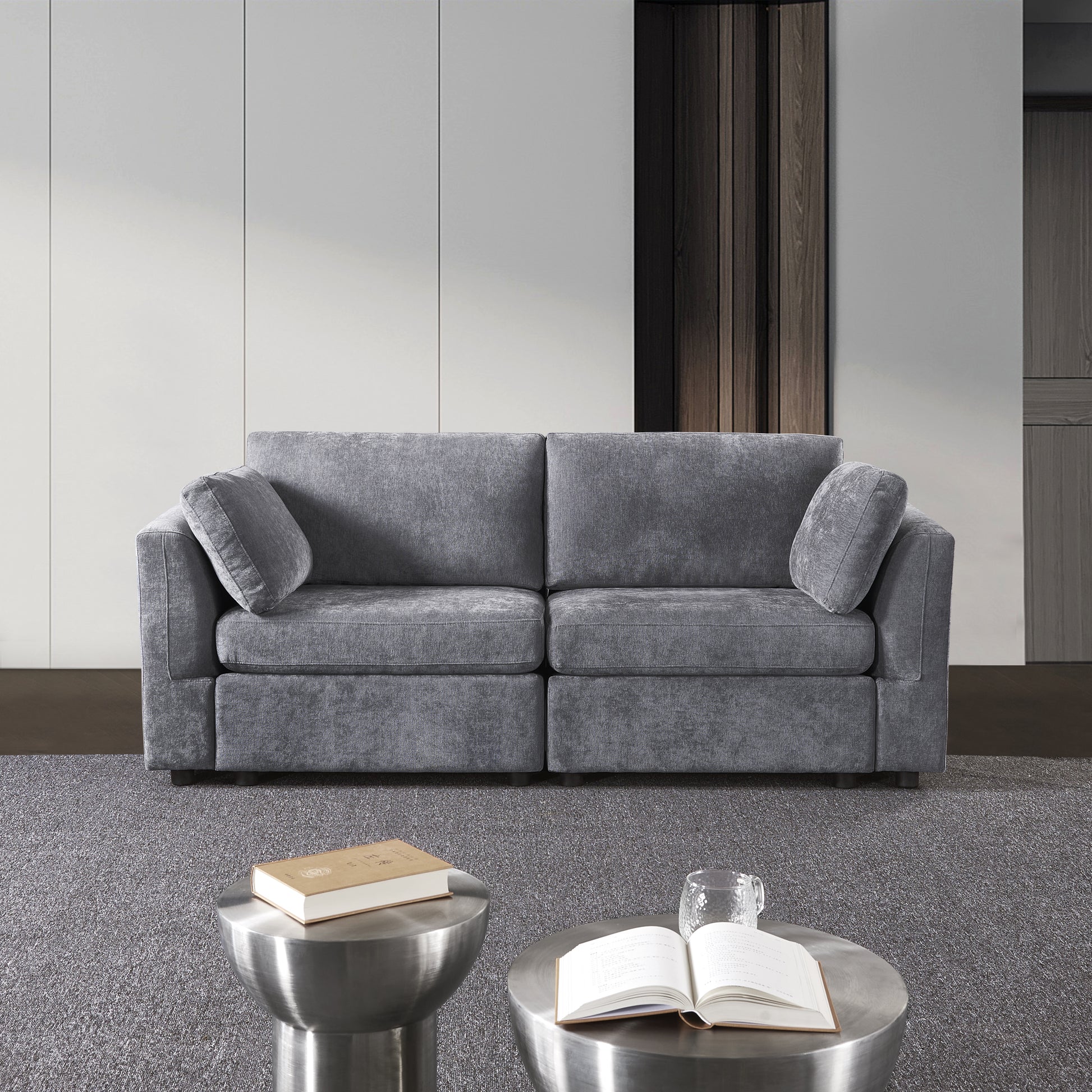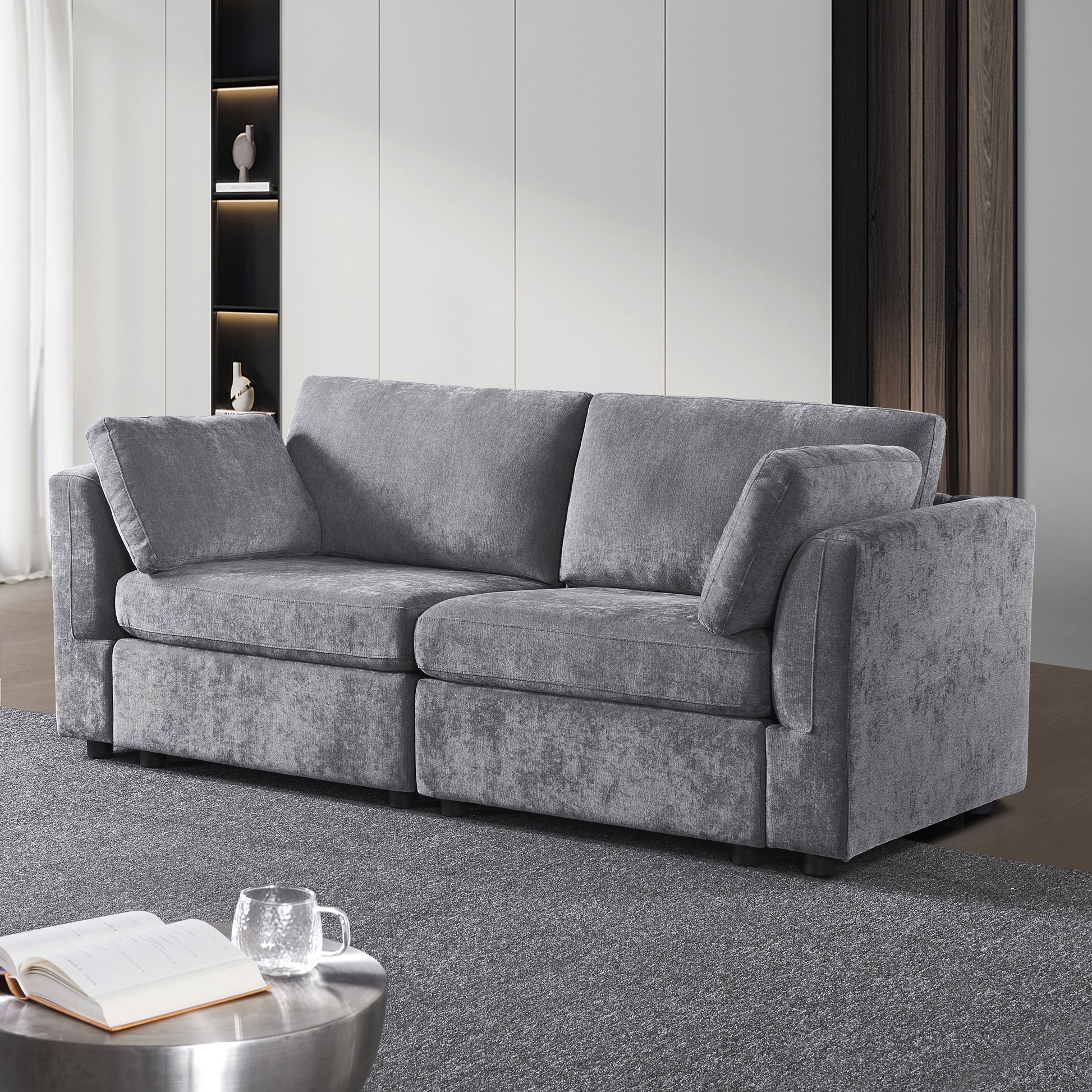 Modular Sofa Whitechenille Fabric, Simple And Grand, The Seat And Back Is Very Soft. This Is Also A Knock Down Sofa Grey Brown Chenille Wood Primary Living Space Medium Firm Light Duty Victorian Rectangle Acacia Rolled Arms Chenille 4 Seat