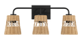 Moonlit Three Lights Wall Sconce With Rattan Shade, Bathroom Lighting Fixtures Over Mirror Black,Rattan Metal,Rattan