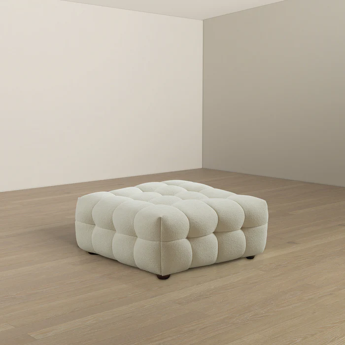 Morrison Ottoman Cream Boucle White Wood Solid White Mid Century Modern Square Foam Tufted Boucle,Solid Wood