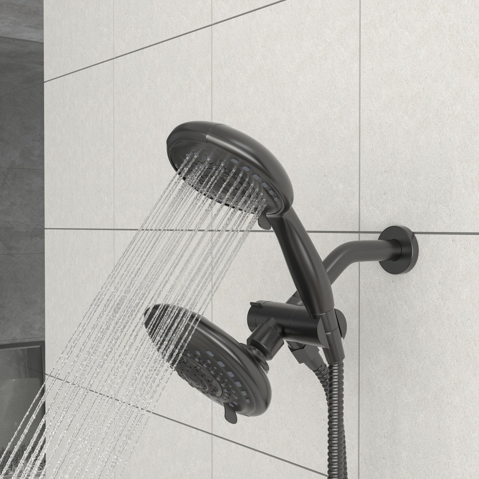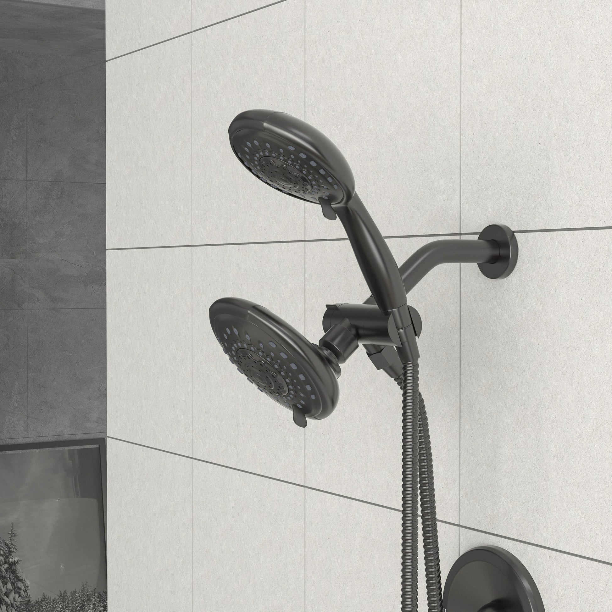 Multi Function Dual Shower Head Shower System With 5" Rain Showerhead, 5 Function Hand Shower, Matte Black Matte Black Stainless Steel