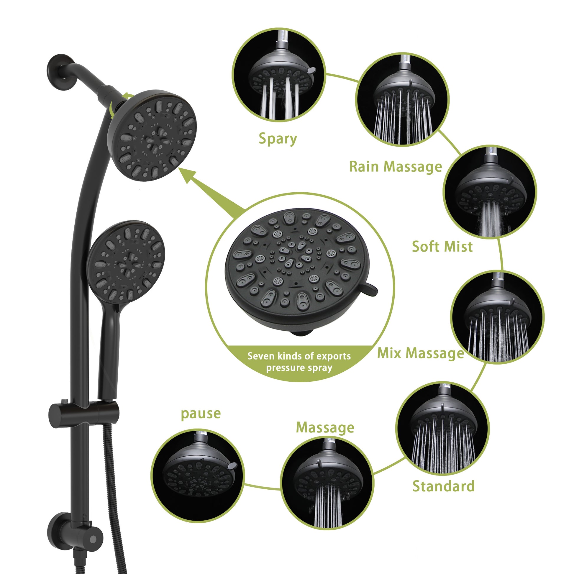 Multi Function Dual Shower Head Shower System With 4.7" Rain Showerhead, 7 Function Hand Shower, Adjustable Slide Bar,Matte Black Matte Black Plastic