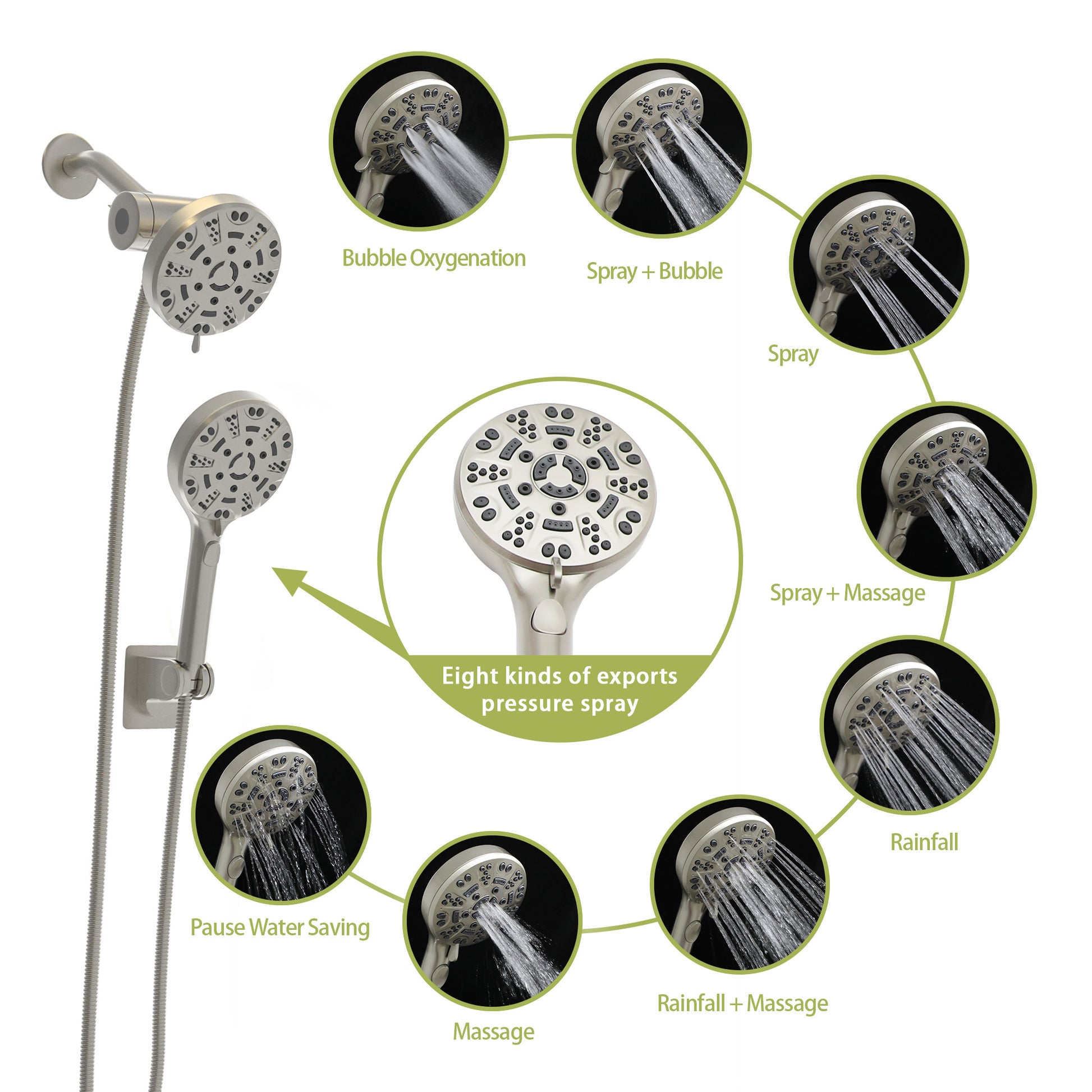 Multi Function Dual Shower Head Shower System With 4.7" Rain Showerhead, 8 Function Hand Shower, Brushed Nickel Brushed Nickel Plastic