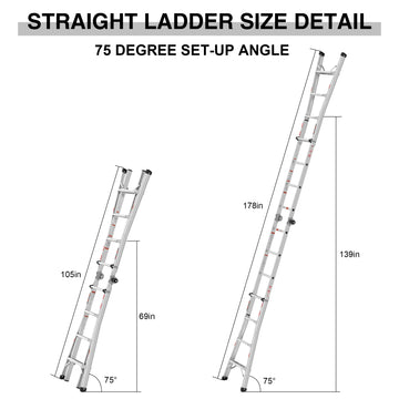 Multi Position Foldable Engineering Multifunctional Aluminum Alloy Ladder A Type Ladder Straight Ladder 17Ft For Home Silver Pc Aluminium