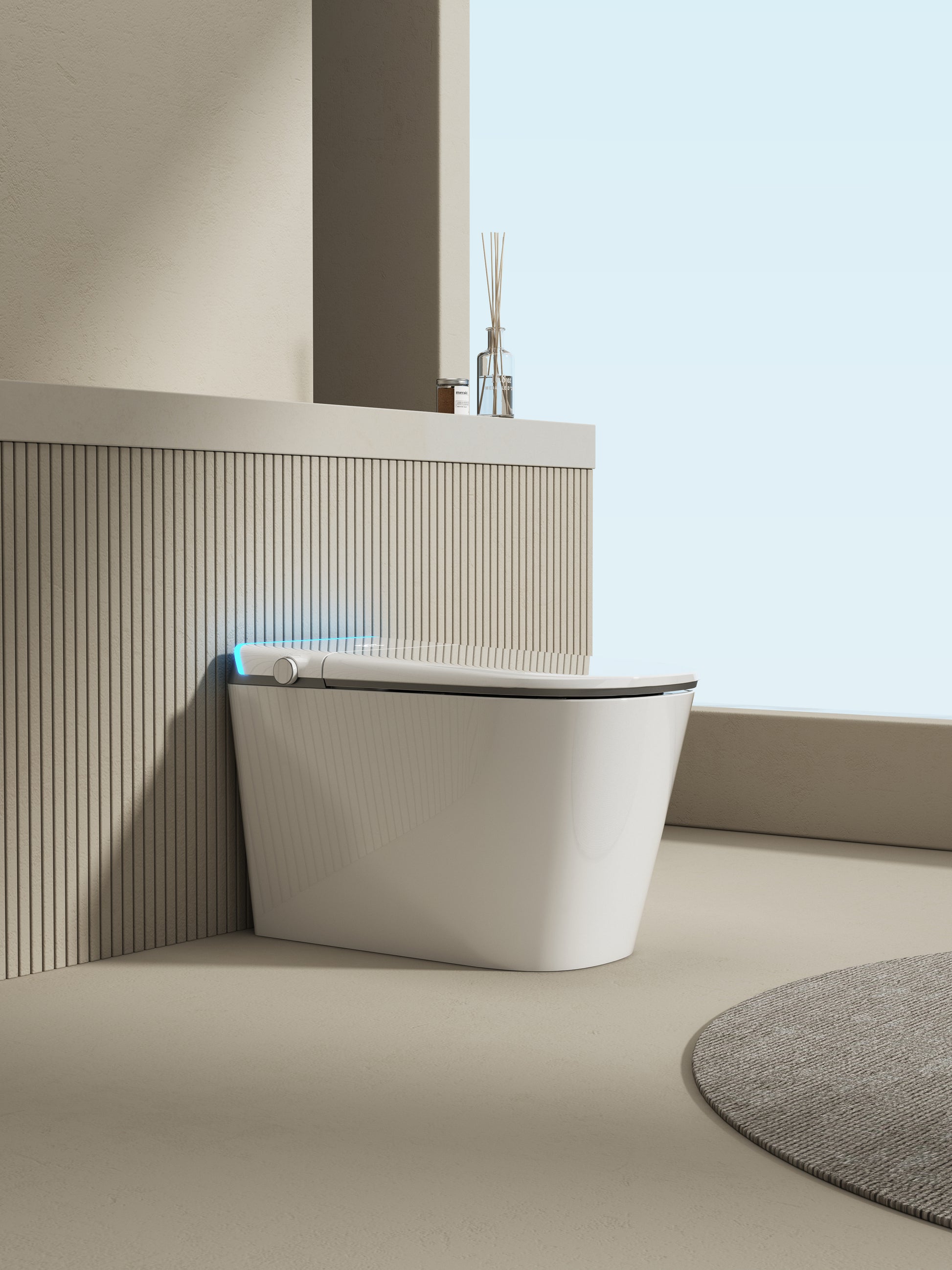 Multifunctional Flat Square Smart Toilet With Automatic Flush With Remote Control Foot Sensor Night Light White Ceramic