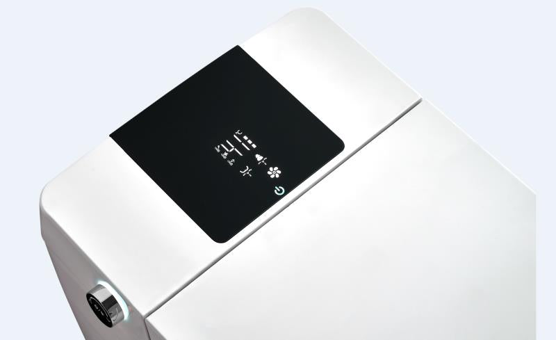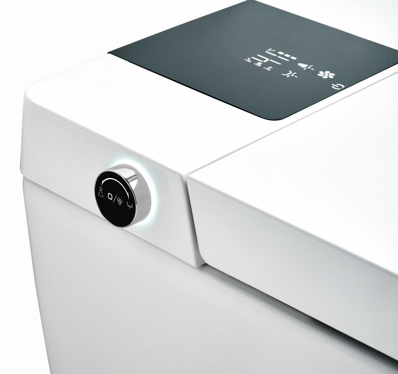 Multifunctional Flat Square Smart Toilet With Automatic Flush With Remote Control Foot Sensor Night Light Glass Display White White Ceramic