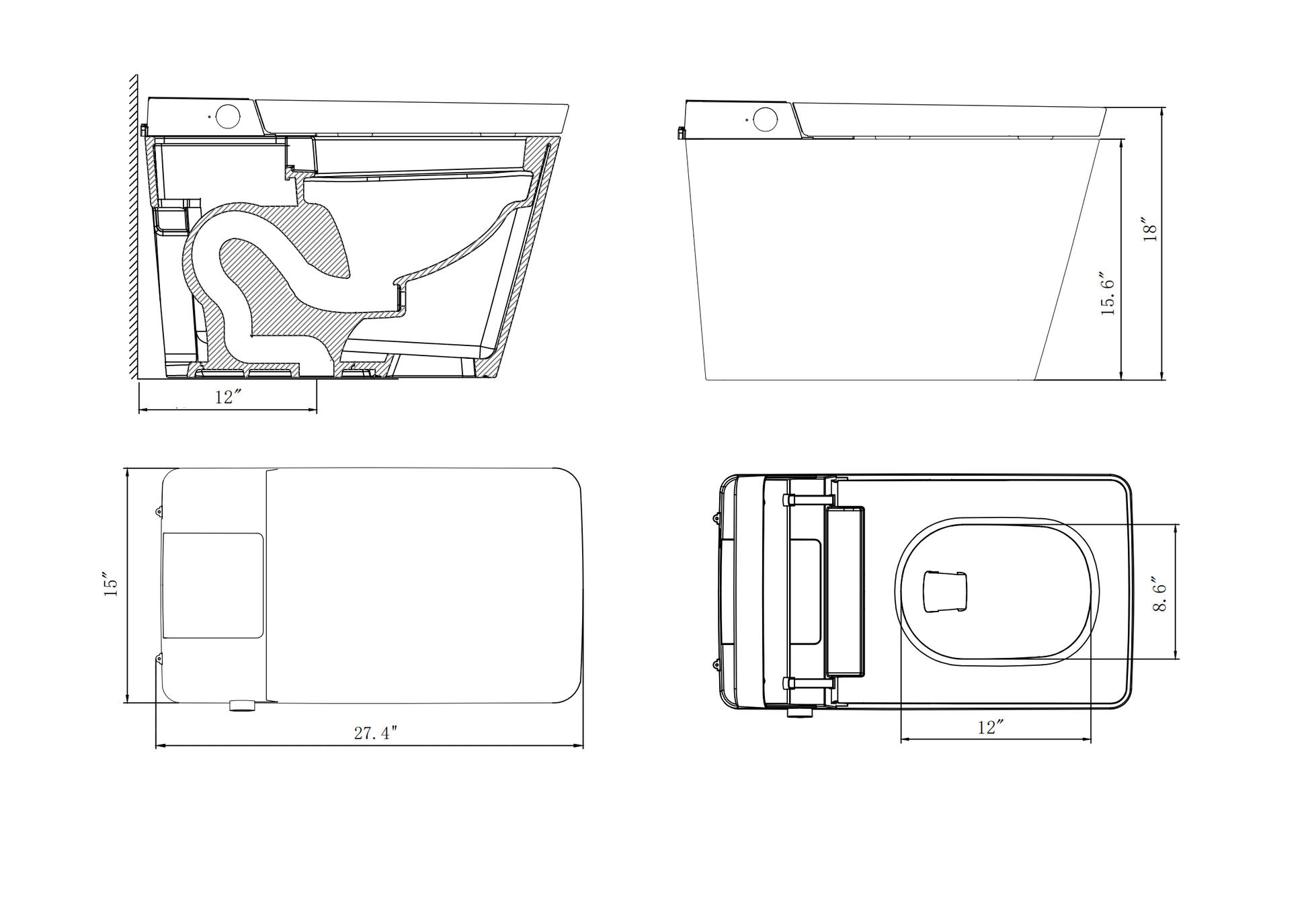 Name: Multifunctional flat square smart toilet with automatic flush with remote control/foot sensor/night light/glass display White