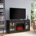 Multipurpose Sliding Door Tv Stand Large Storage Cabinet With 2 Sliding Fluted Glass Doors, Tv Up To 65'', Tv Desk Storage Rack With 23" Fireplace Tv Stand, Charcoal Grey, 59.13"W*15.94"D*27.8"H Charcoal Grey 60 69 Inches Mdf
